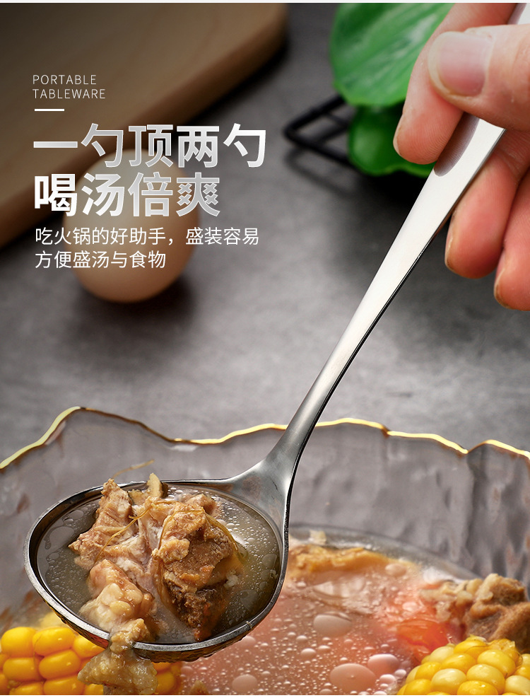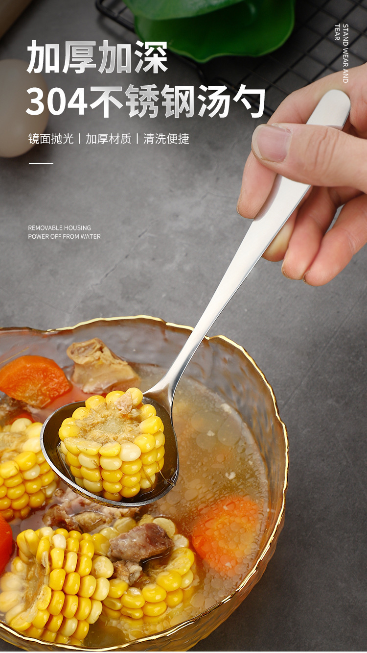 304 스테인레스 스틸 스푼 성인 마시는 수프 스푼 두꺼운 긴 손잡이 가정용 주방 조미료 죽 숟가락 큰 숟가락