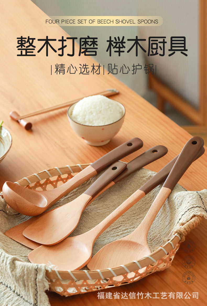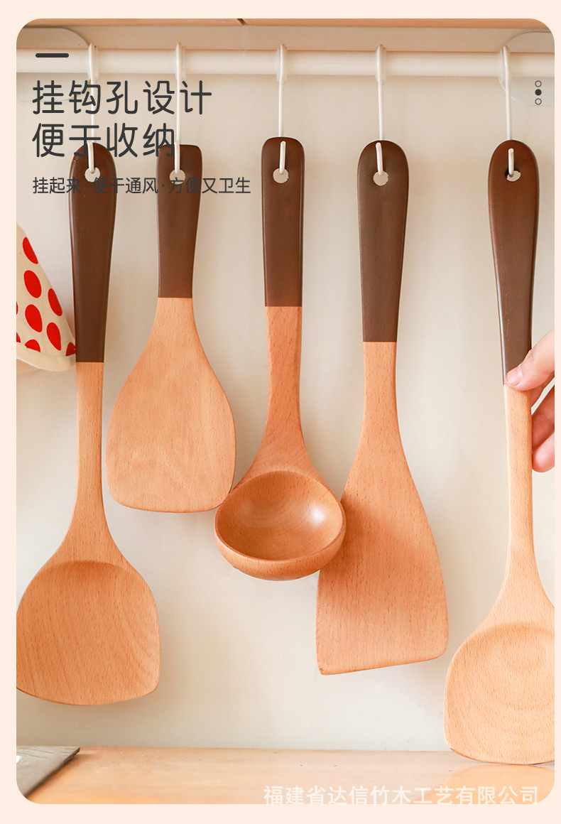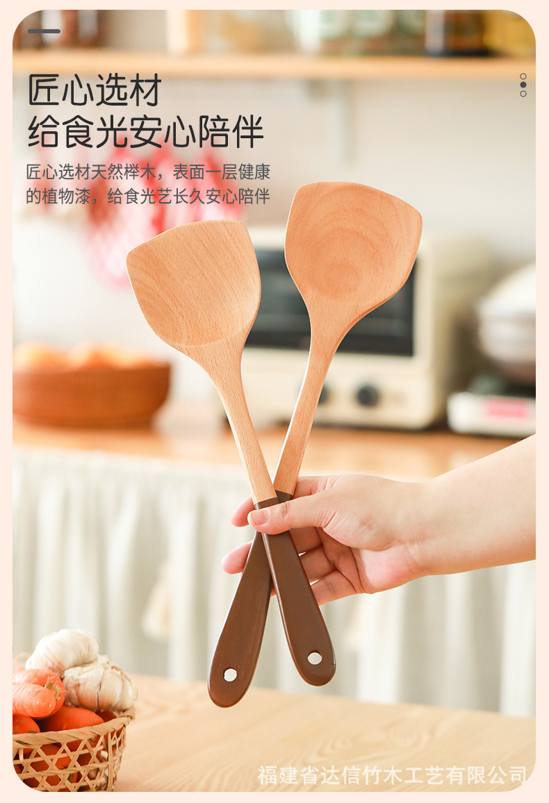 손잡이 페인트 너도밤 나무 가정 요리 주방용품 세트 붙지 않는 나무 삽 긴 손잡이 볶음 나무 삽 수프 스푼