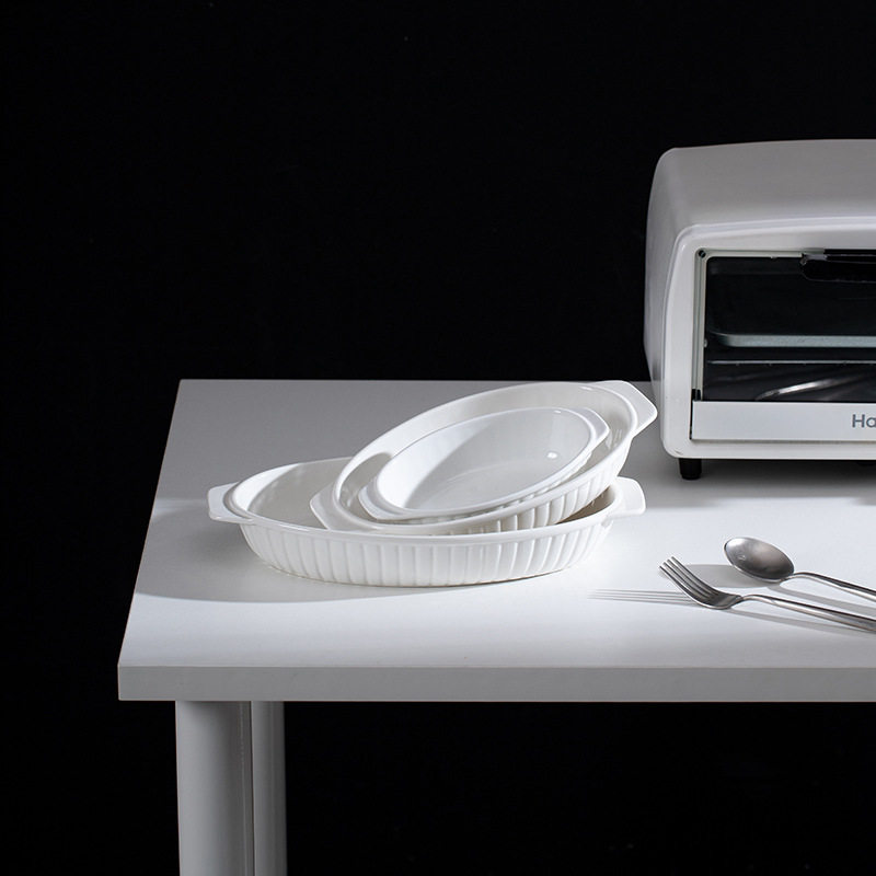 세라믹 타원형 베이킹 팬은 고온 오븐, 전자레인지, 식기세척기, 강화 도자기, 백자로 사용 가능하며 제조업체에서 맞춤형으로 수출 가능합니다.스토어 가기