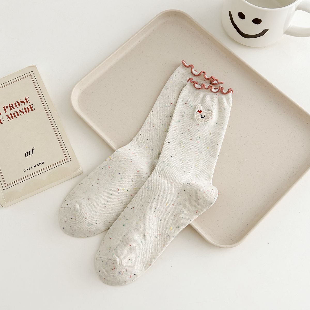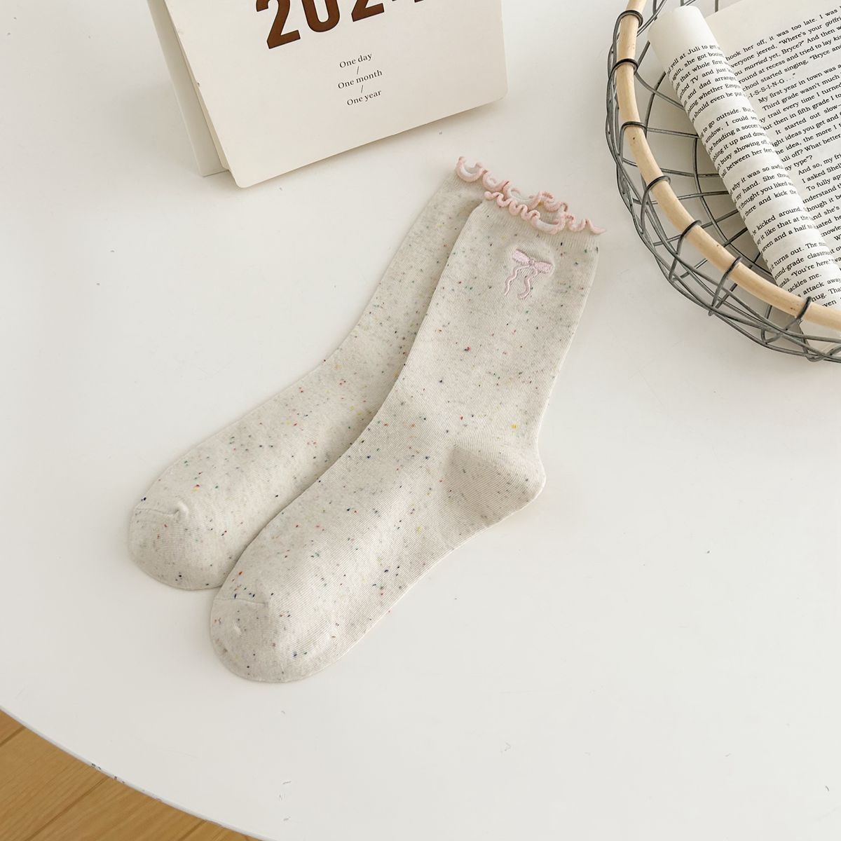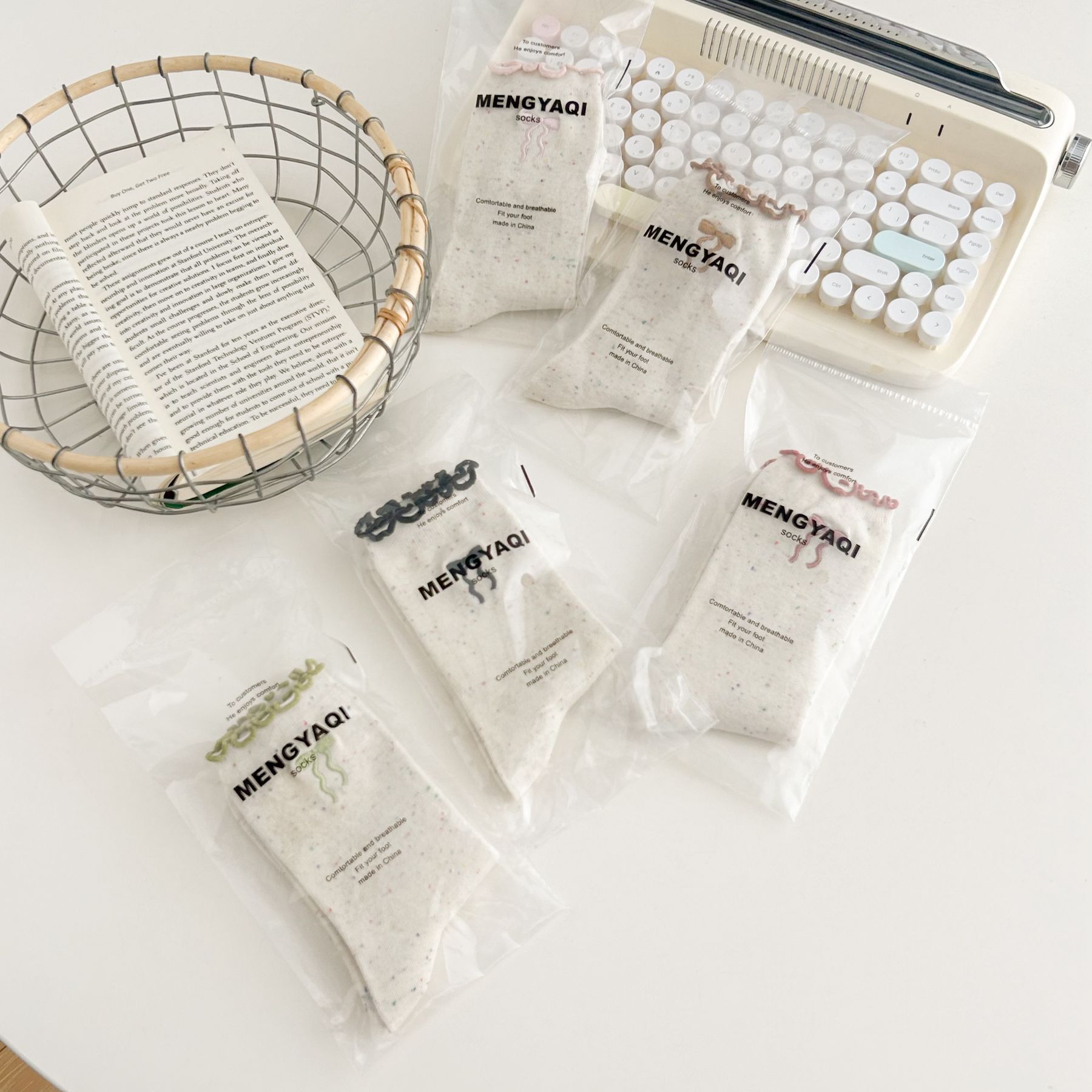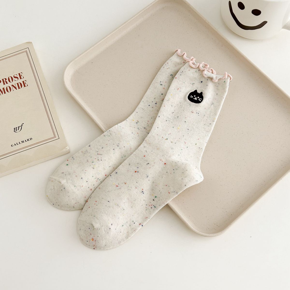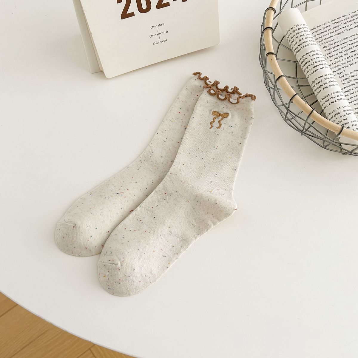 양말 여자의 봄과 가을 중간 길이 양말 활 자수 포인트 원사 컬링 일본식 귀여운 올 매치 여성면 양말스토어 가기