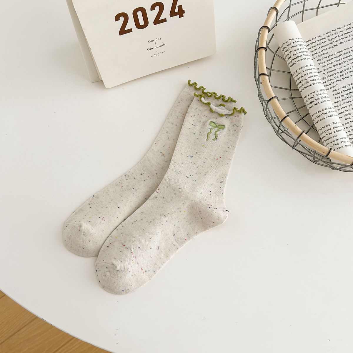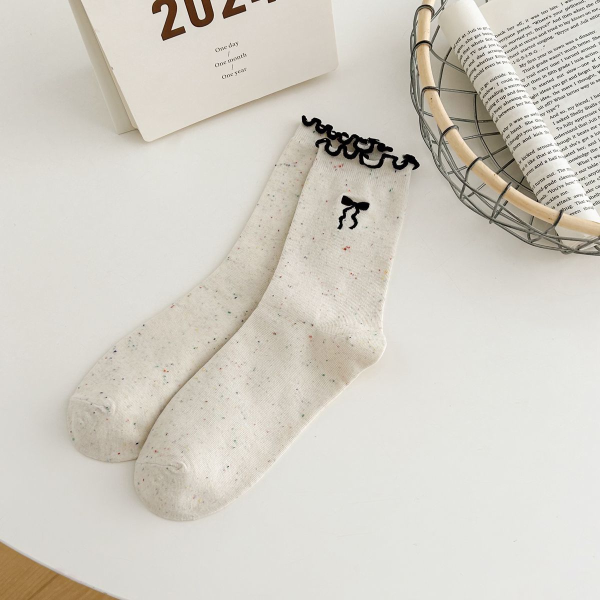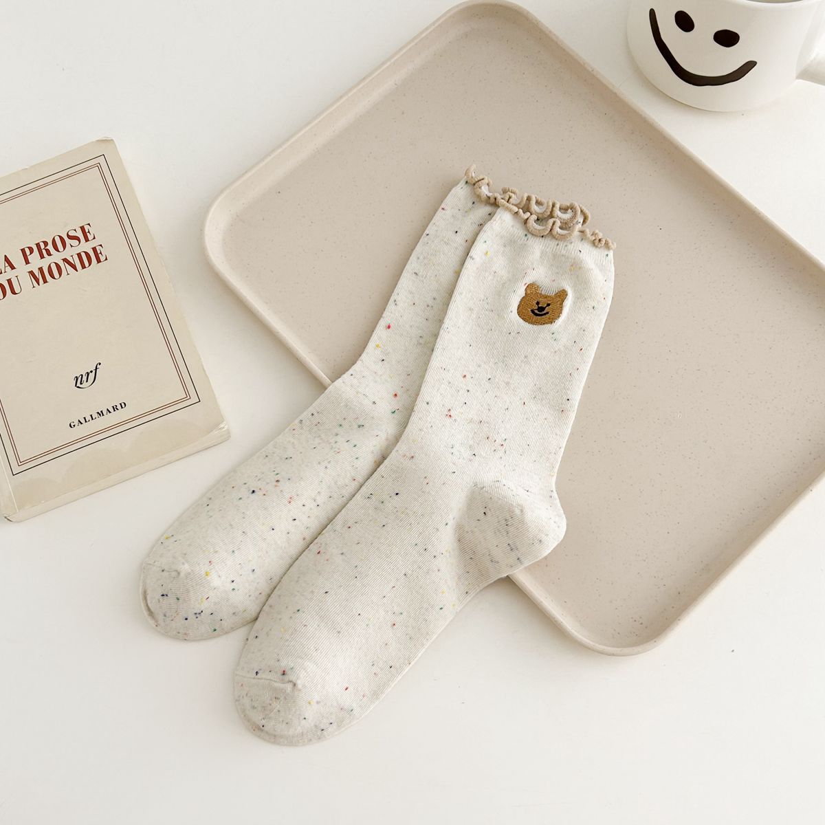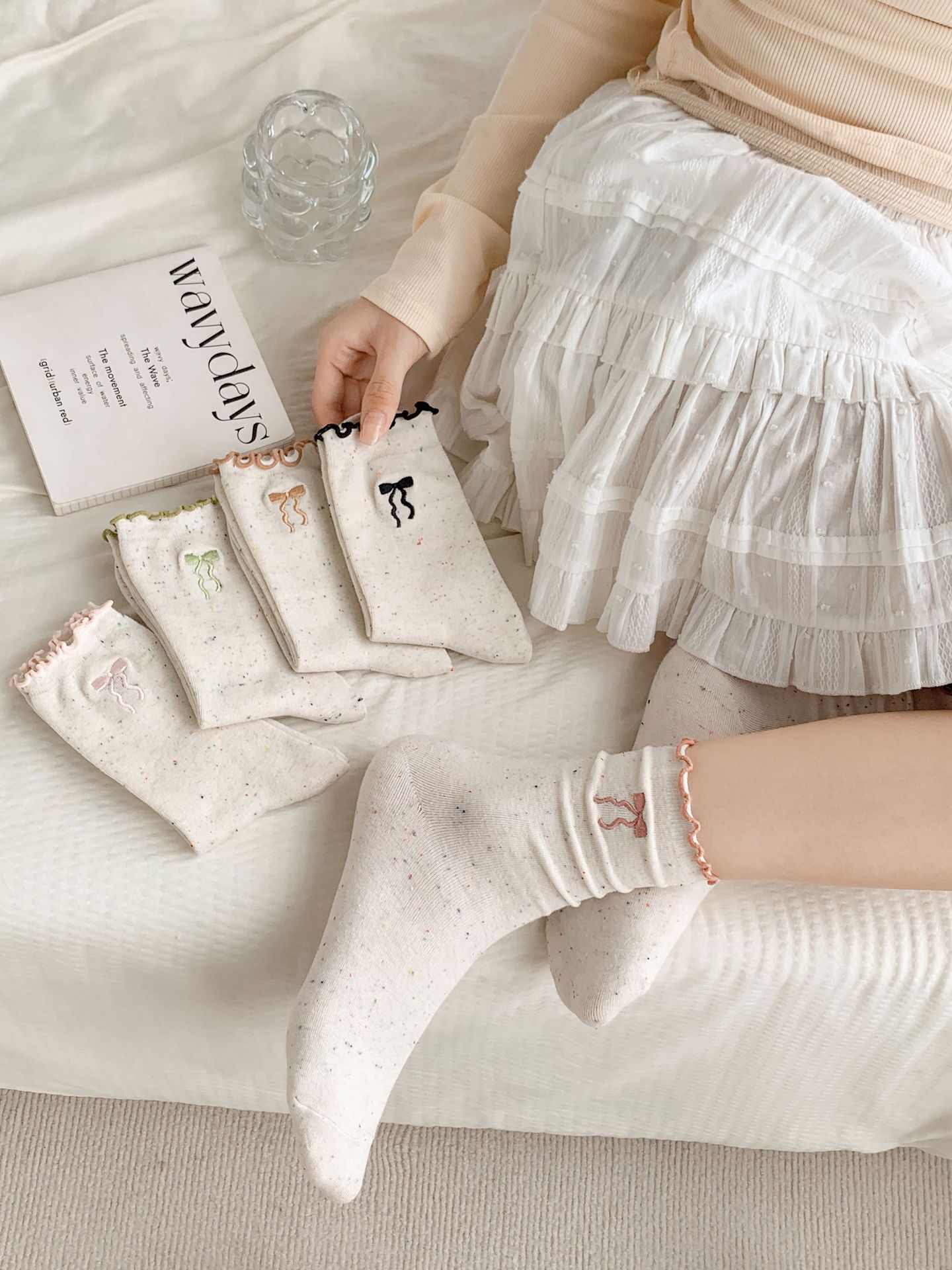 양말 여자의 봄과 가을 중간 길이 양말 활 자수 포인트 원사 컬링 일본식 귀여운 올 매치 여성면 양말스토어 가기