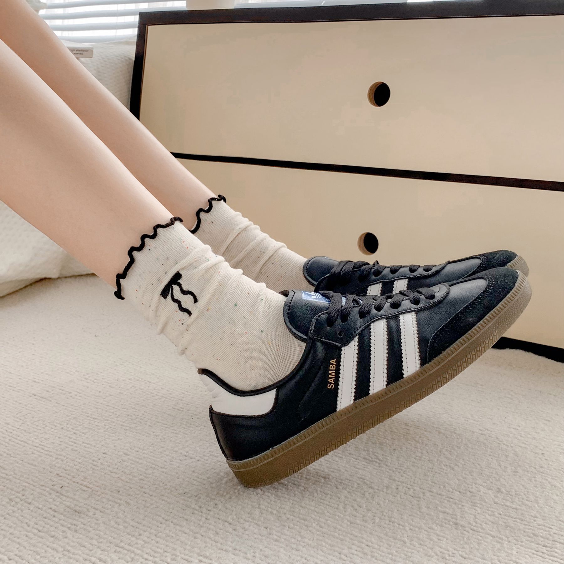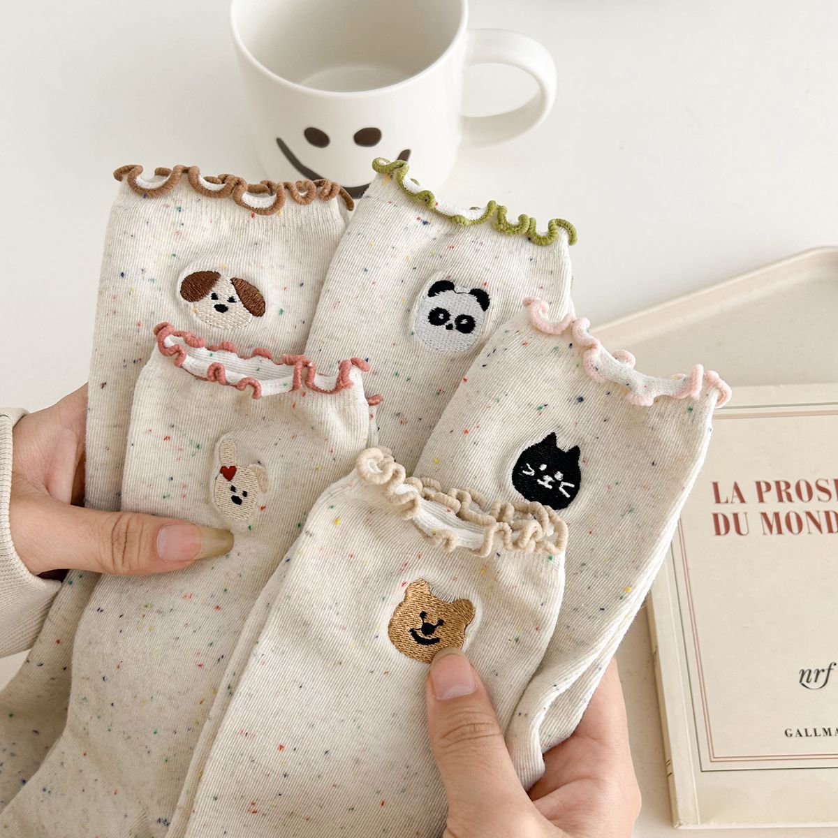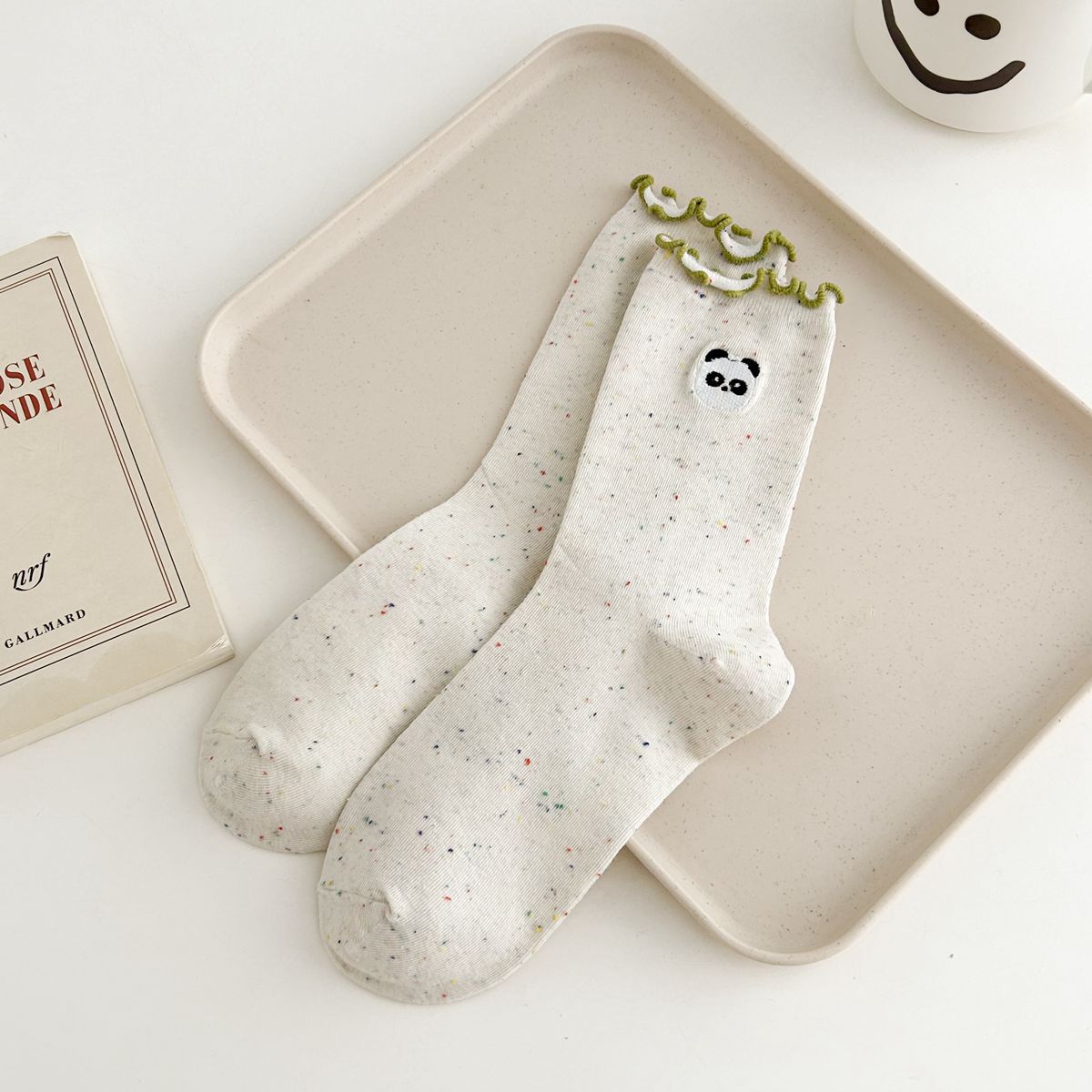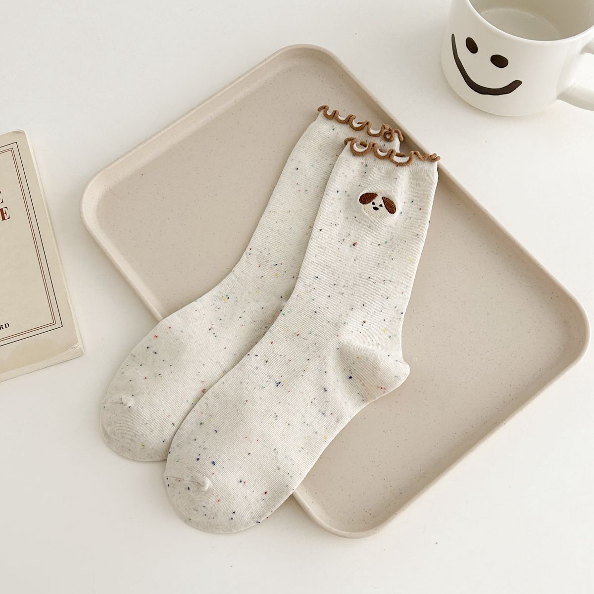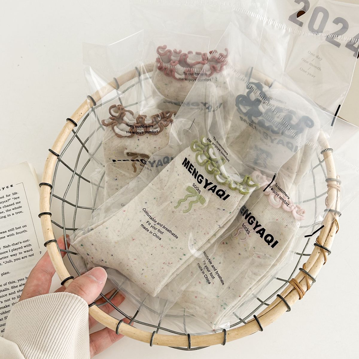 양말 여자의 봄과 가을 중간 길이 양말 활 자수 포인트 원사 컬링 일본식 귀여운 올 매치 여성면 양말스토어 가기