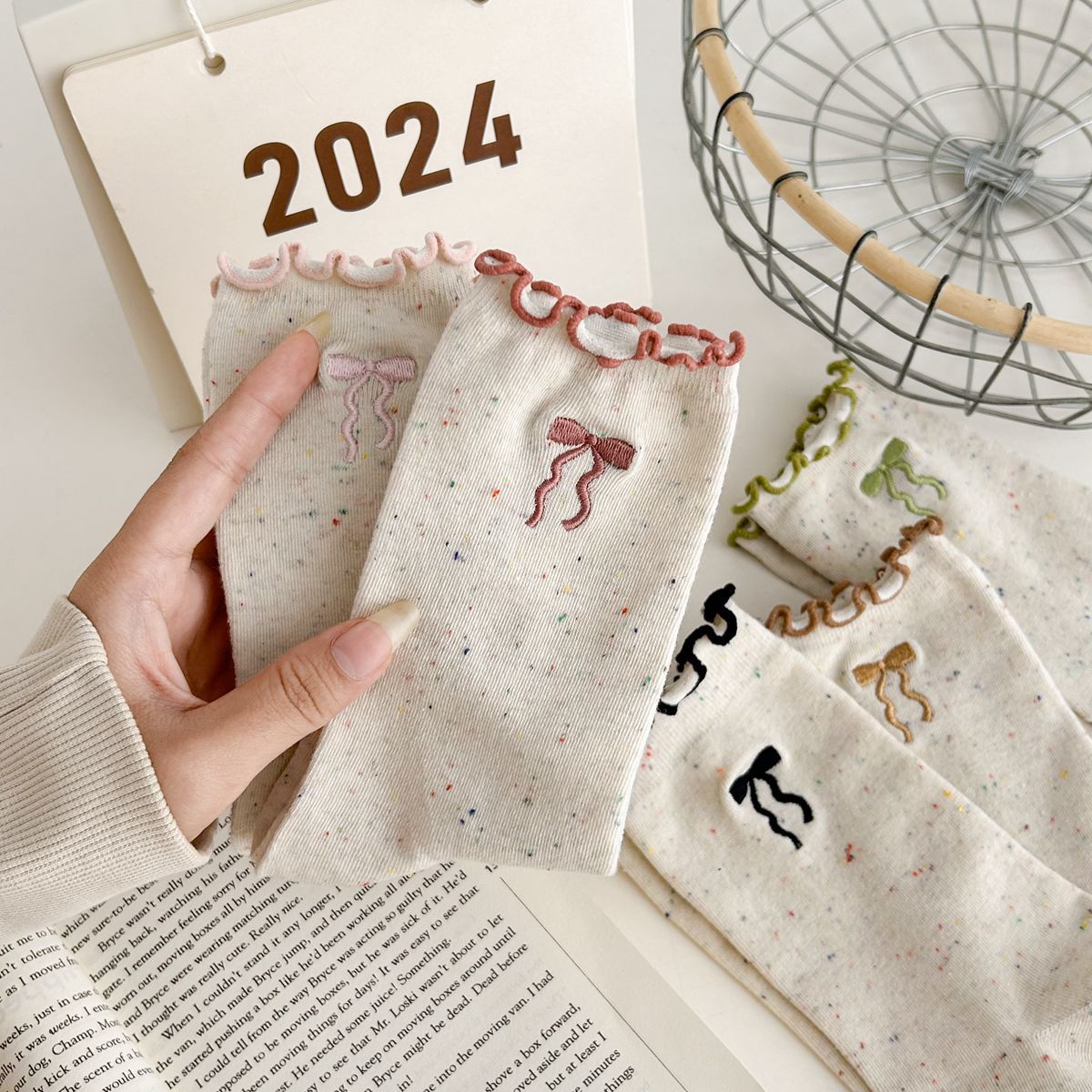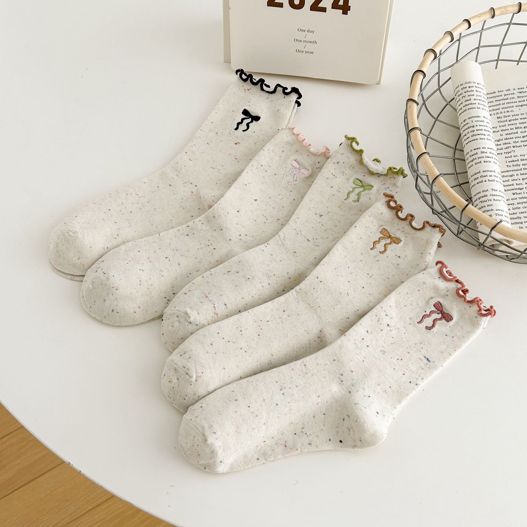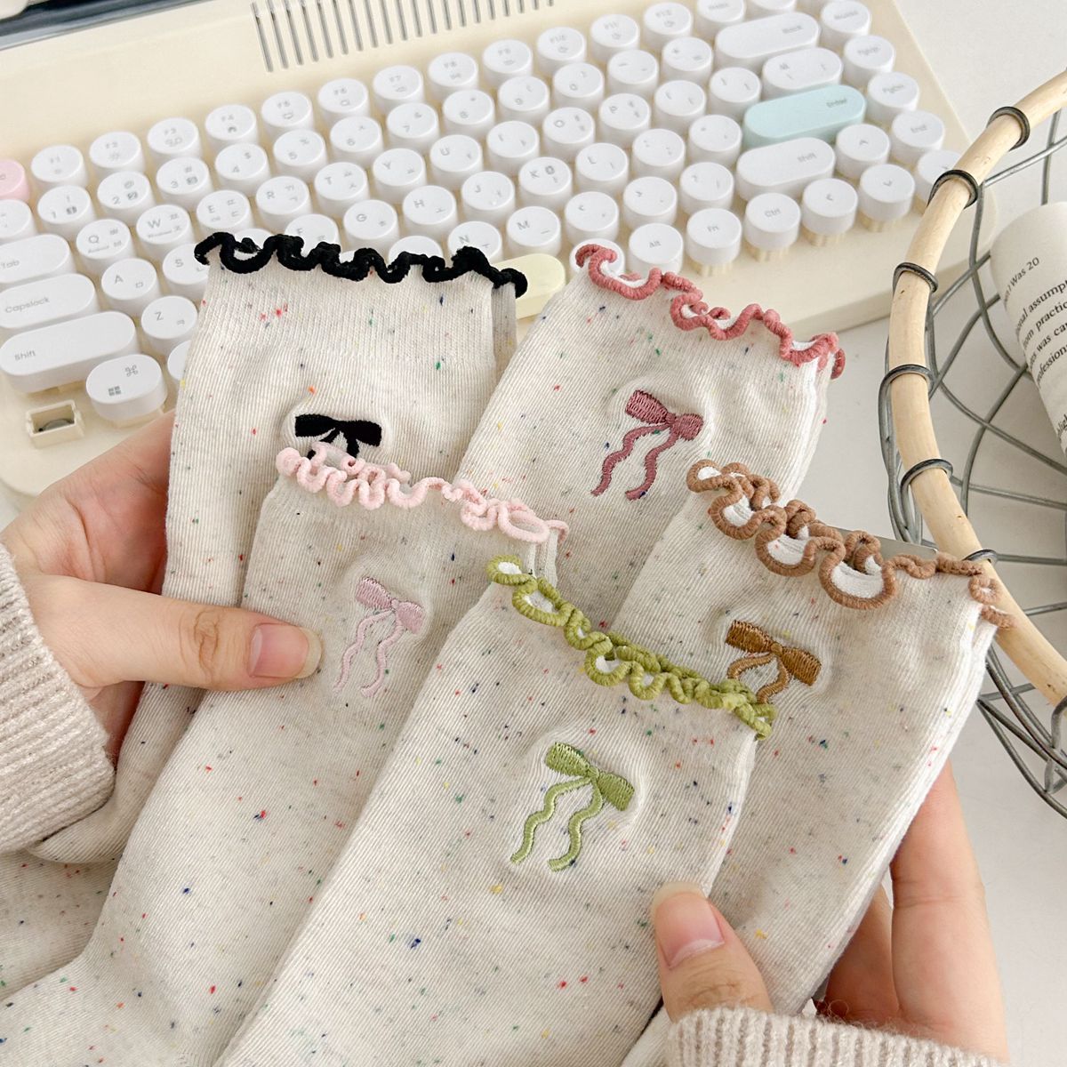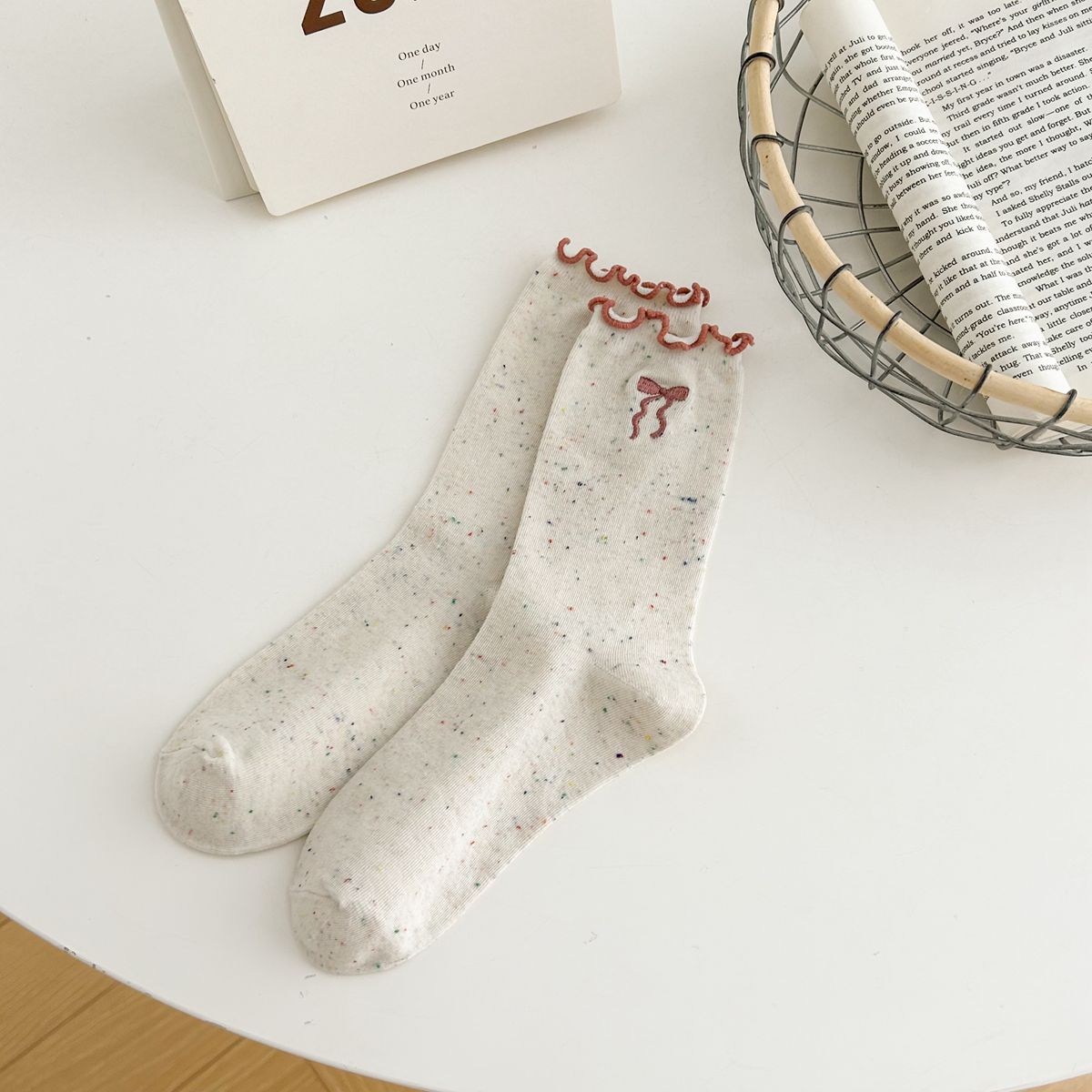 양말 여자의 봄과 가을 중간 길이 양말 활 자수 포인트 원사 컬링 일본식 귀여운 올 매치 여성면 양말