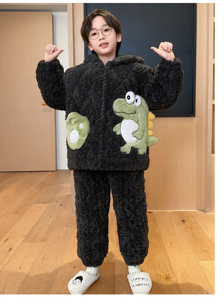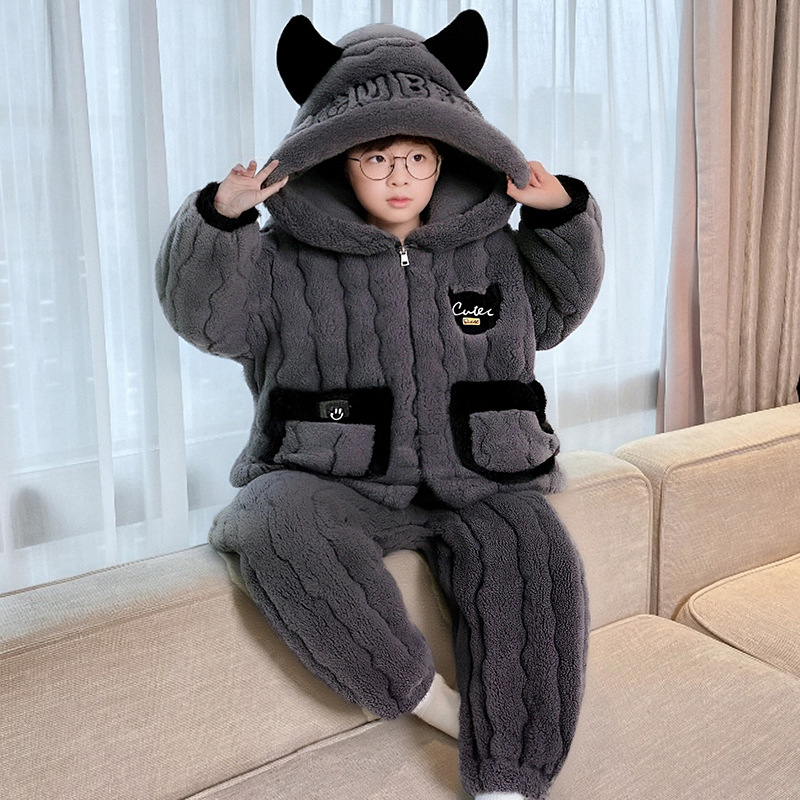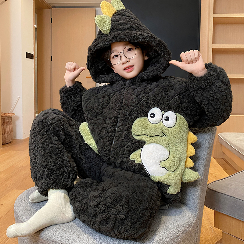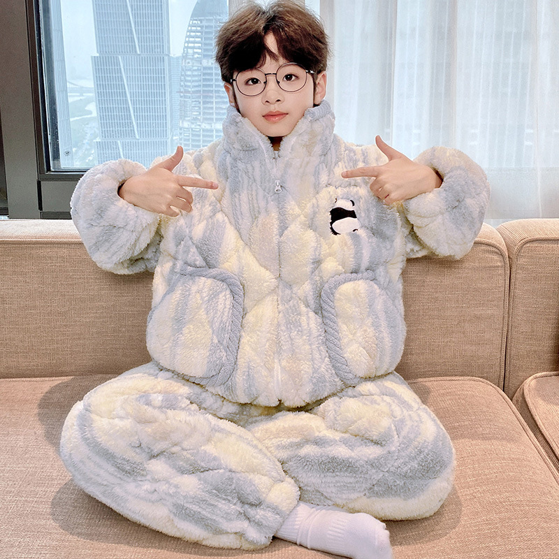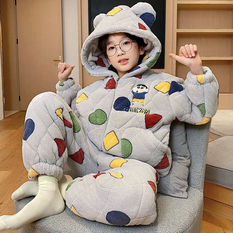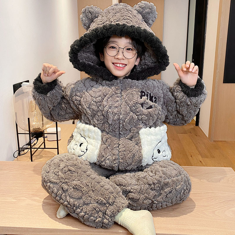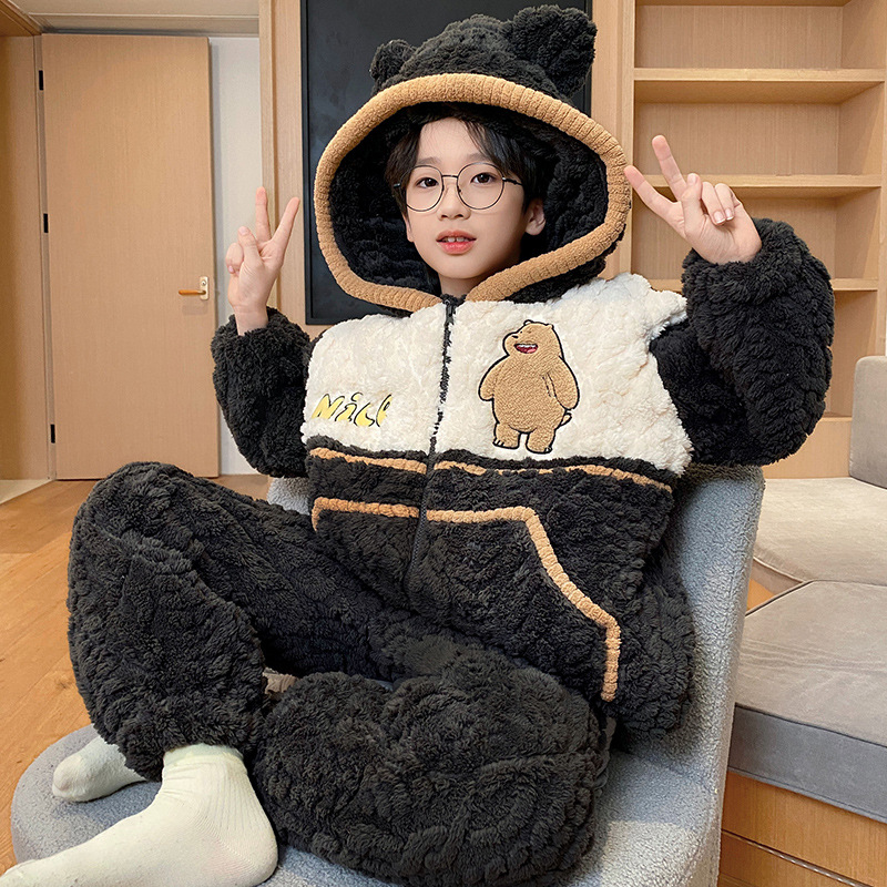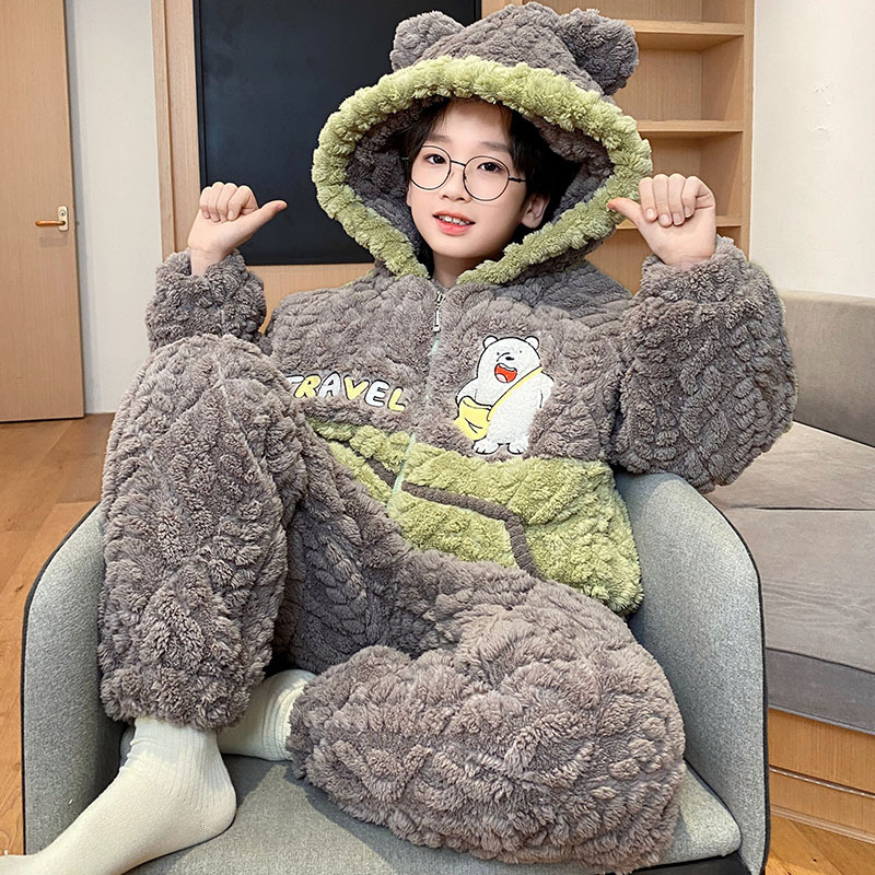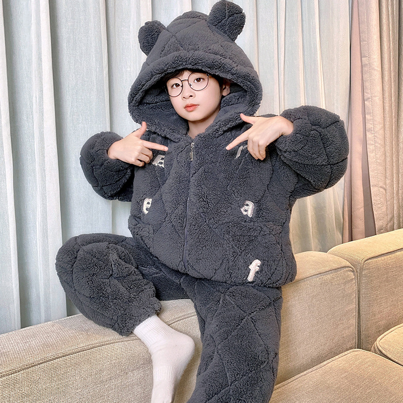 3 층 면화 기모 두꺼운 산호 양털 소년 겨울 새로운 대형 어린이 가정 옷 세트 두꺼운 후드 12스토어 가기