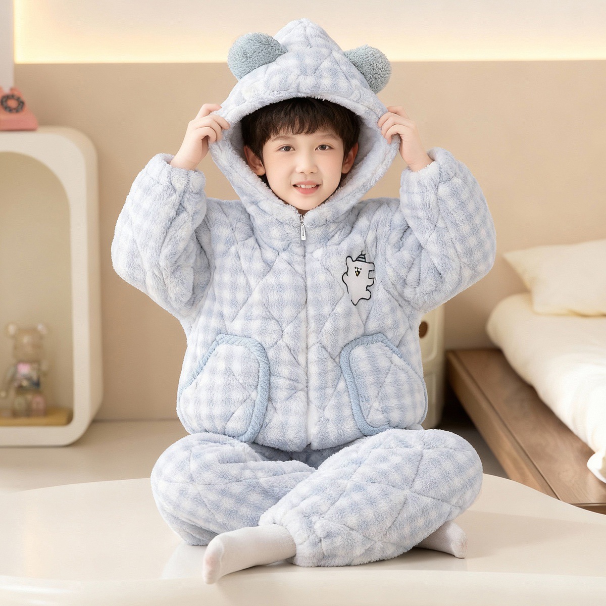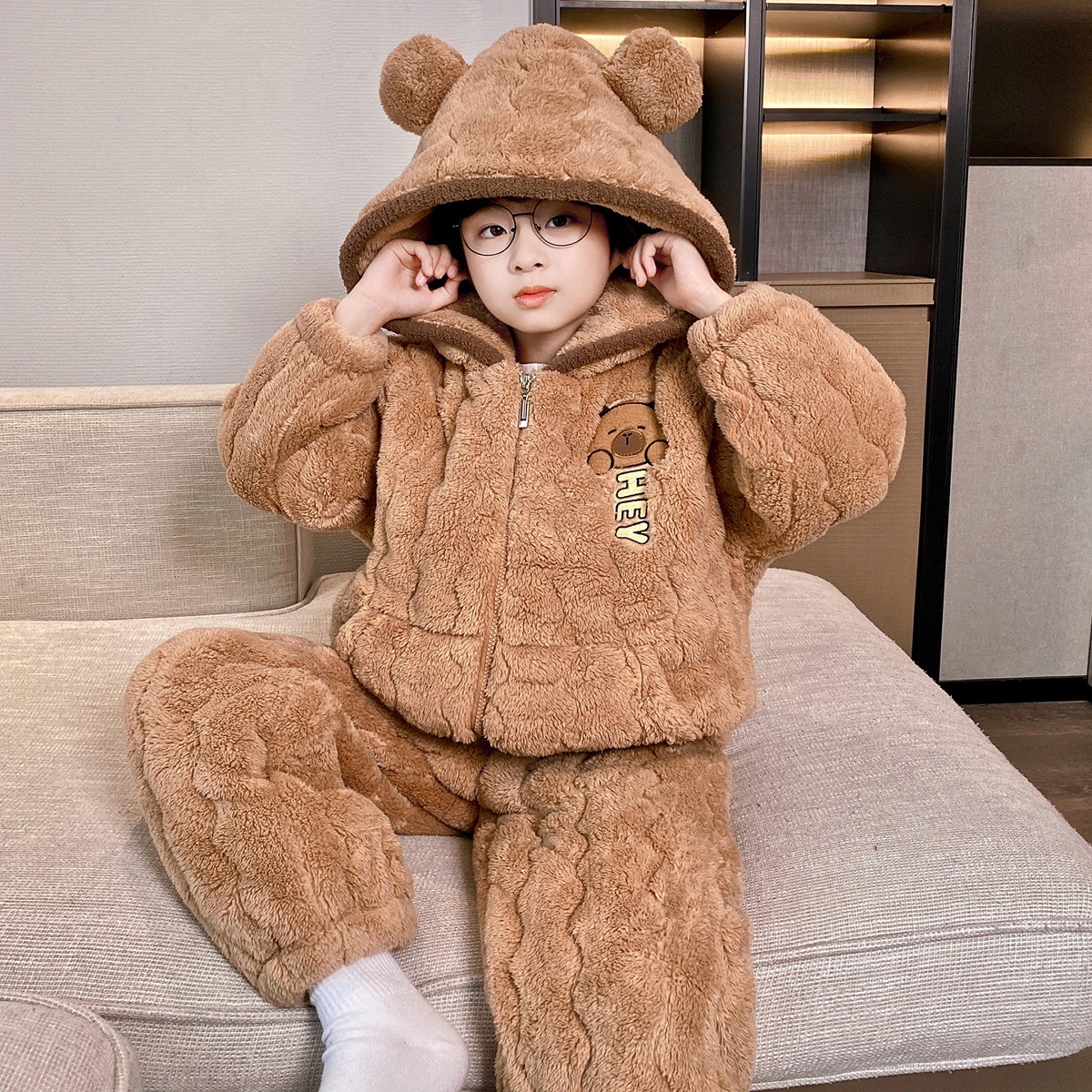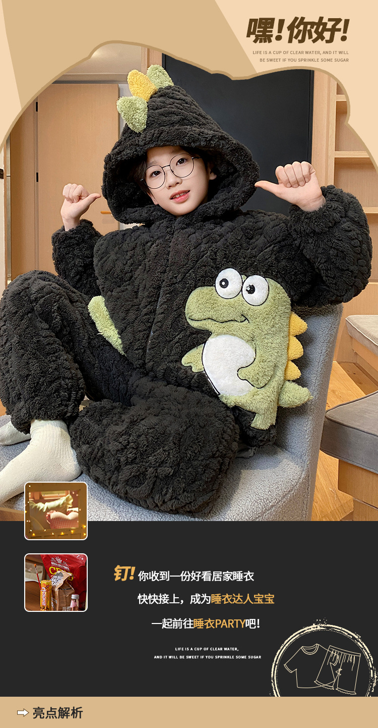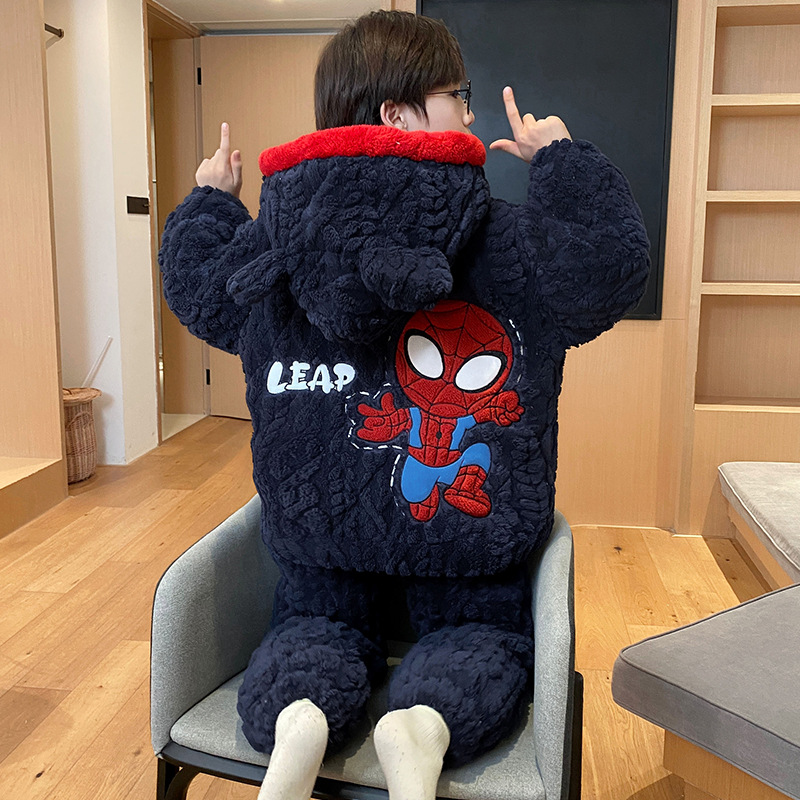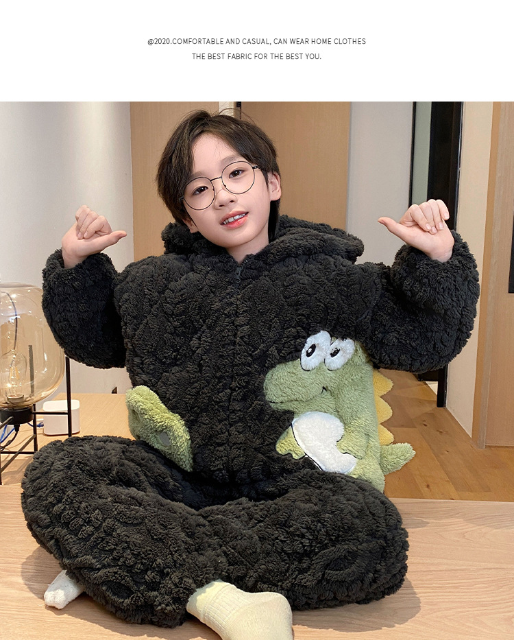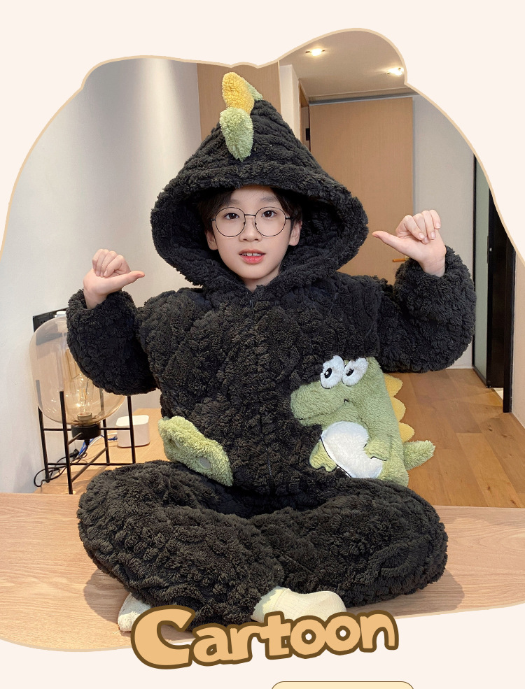 3 층 면화 기모 두꺼운 산호 양털 소년 겨울 새로운 대형 어린이 가정 옷 세트 두꺼운 후드 12스토어 가기