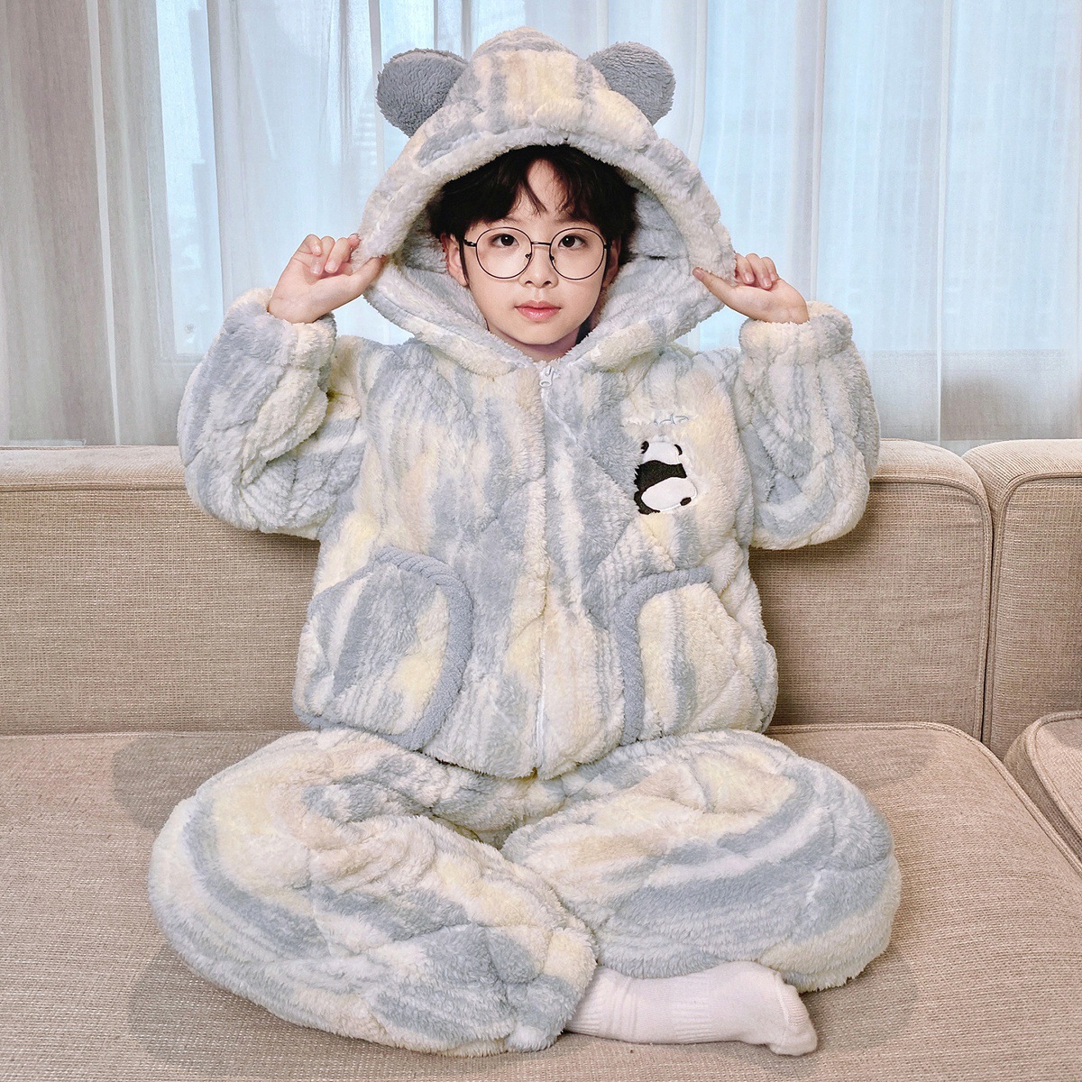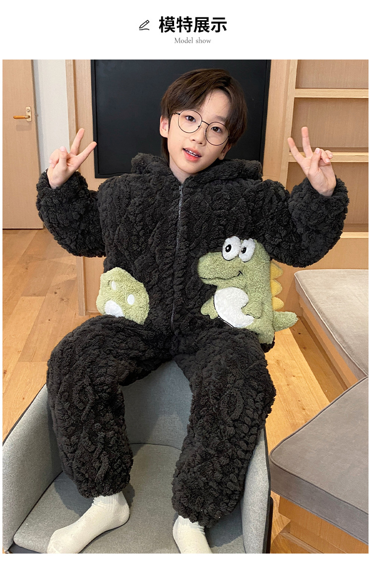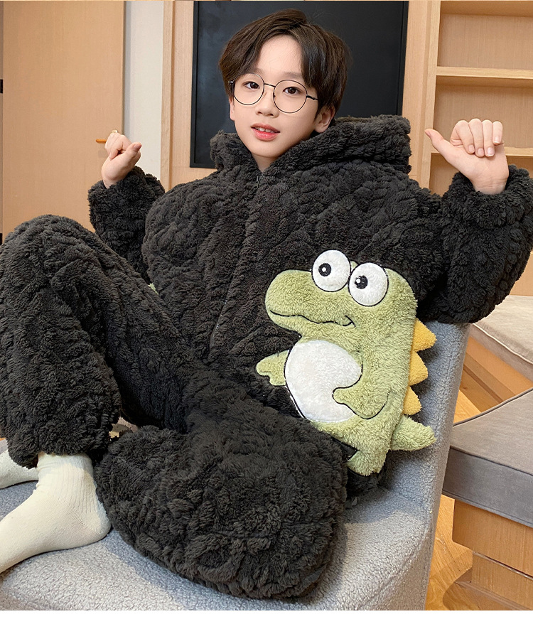 3 층 면화 기모 두꺼운 산호 양털 소년 겨울 새로운 대형 어린이 가정 옷 세트 두꺼운 후드 12
