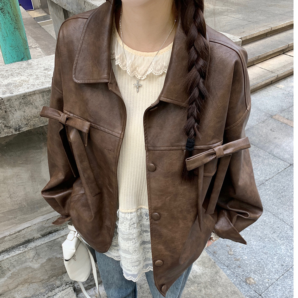 아메리칸 스타일 레트로 우아한 하이 엔드 센스 가죽 자켓 여성의 가을 새로운 쿨 핫 걸 올 매치 자전거 자켓 탑스토어 가기