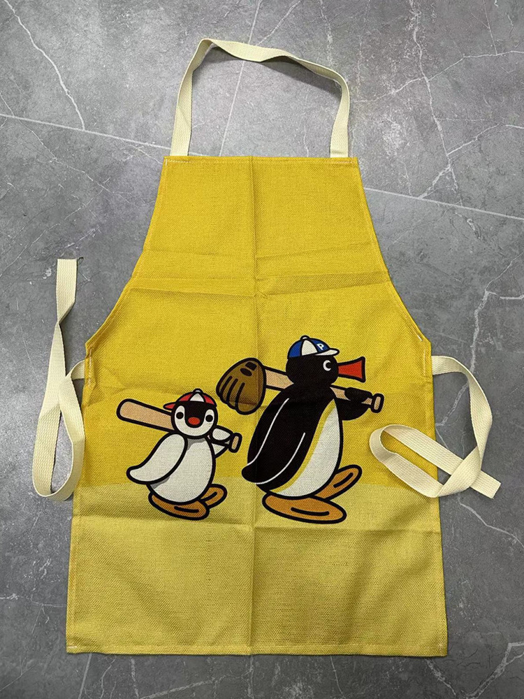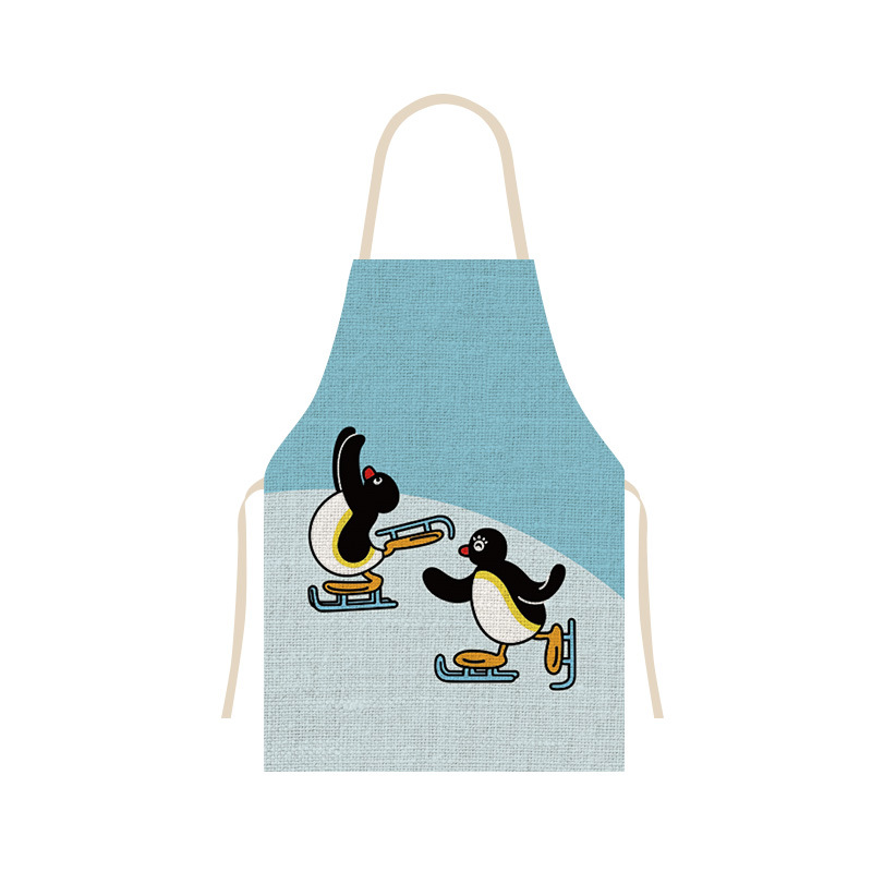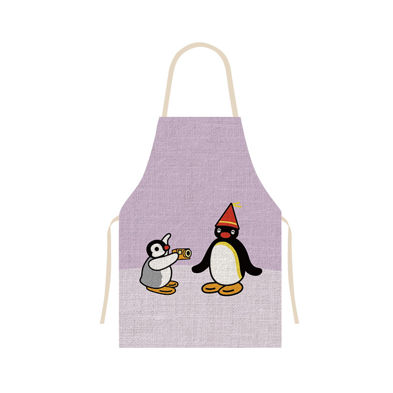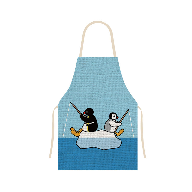 펭귄 시리즈 공동 귀여운 주방 가정 요리 앞치마 통기성 리넨 베이킹 커피 숍 작업 옷