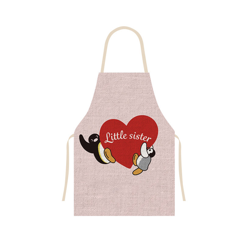 펭귄 시리즈 공동 귀여운 주방 가정 요리 앞치마 통기성 리넨 베이킹 커피 숍 작업 옷스토어 가기