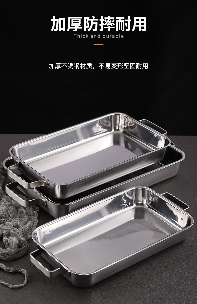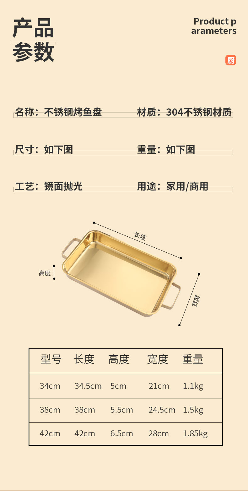 스테인레스 스틸 두꺼운 구운 생선 접시 가정용 유도 밥솥 직사각형 한국식 다기능 그릴 플레이트 황금 상업 트레이