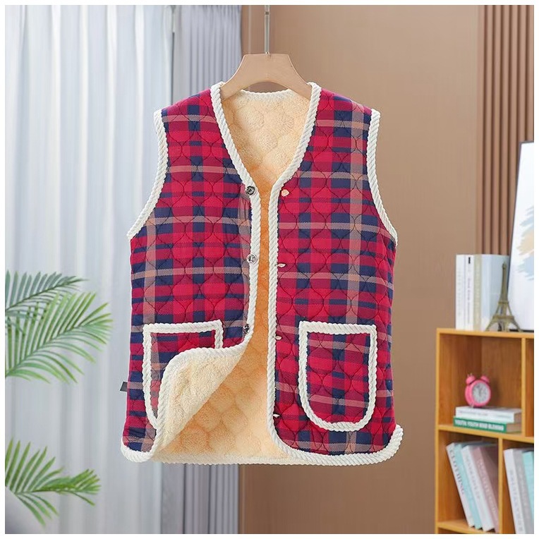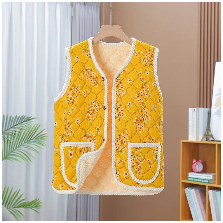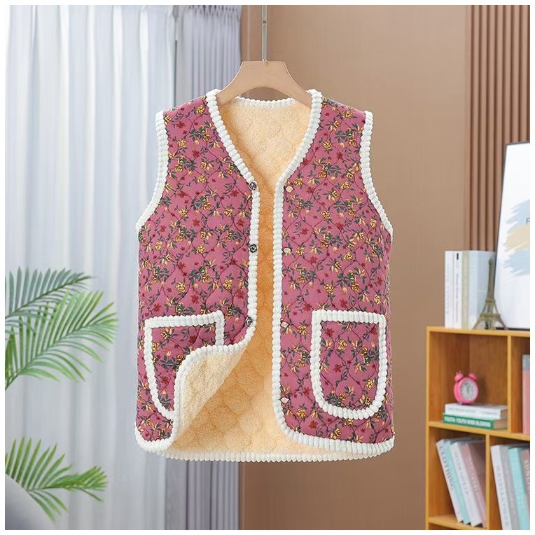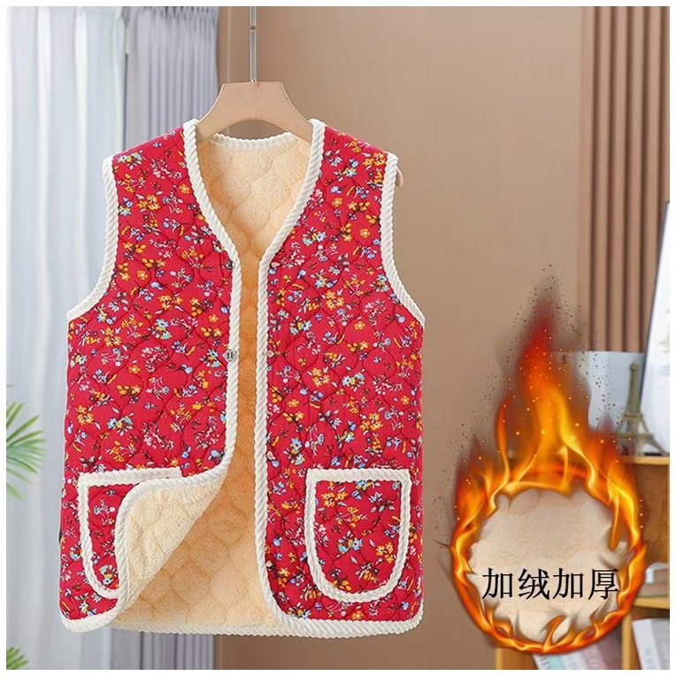 새로운 가을과 겨울 기모 중년 및 노인을위한 두꺼운 민족 스타일 조끼 느슨한 허리 코트 엄마와 여성을위한 따뜻한 조끼스토어 가기