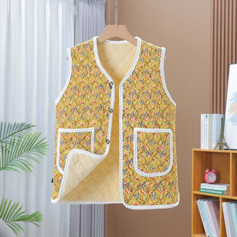 새로운 가을과 겨울 기모 중년 및 노인을위한 두꺼운 민족 스타일 조끼 느슨한 허리 코트 엄마와 여성을위한 따뜻한 조끼