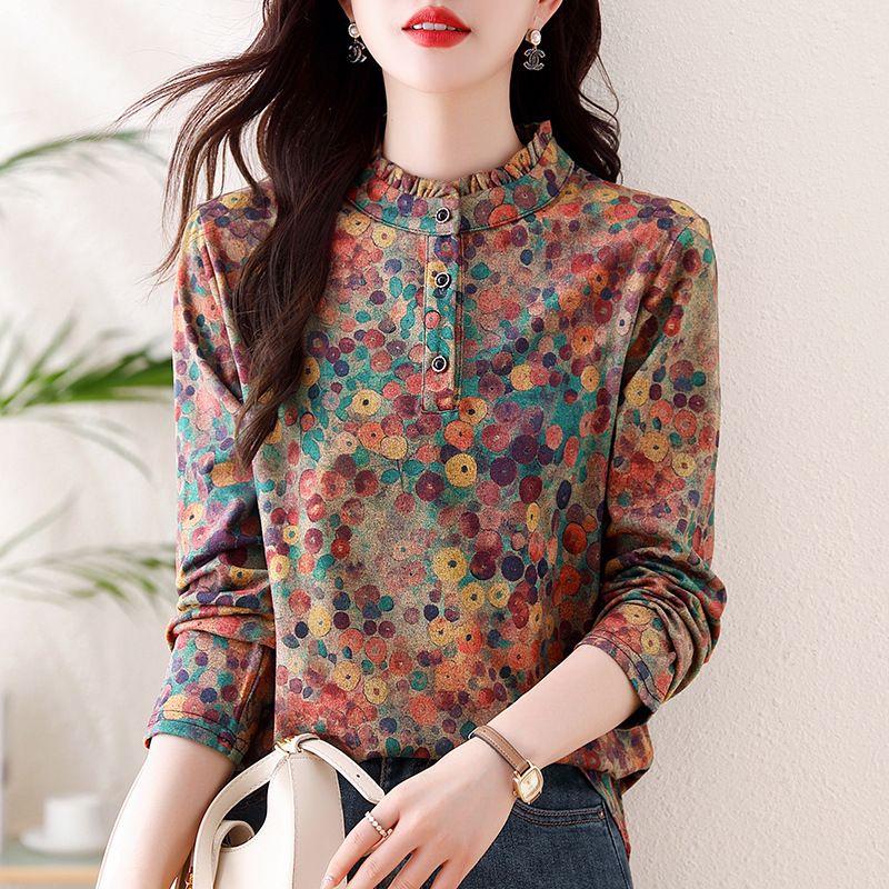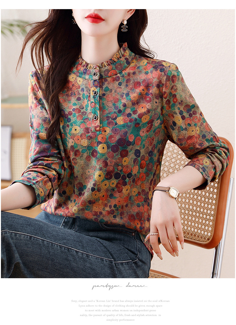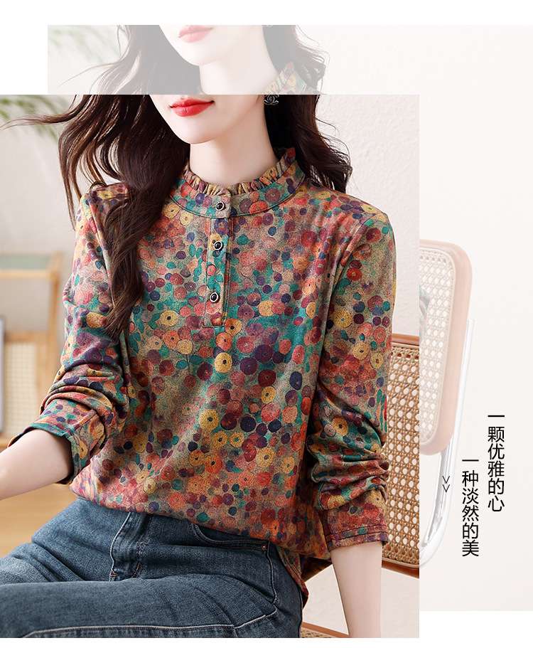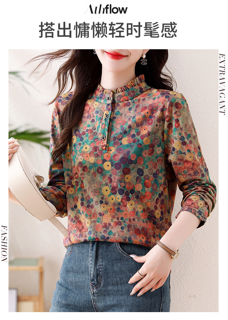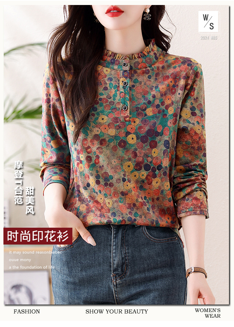 2024 가을과 겨울 새로운 긴 소매 캐시미어 따뜻한 패션 조커 프린트 칼라베이스 셔츠 재킷 여성 도매스토어 가기