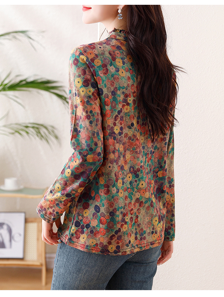 2024 가을과 겨울 새로운 긴 소매 캐시미어 따뜻한 패션 조커 프린트 칼라베이스 셔츠 재킷 여성 도매