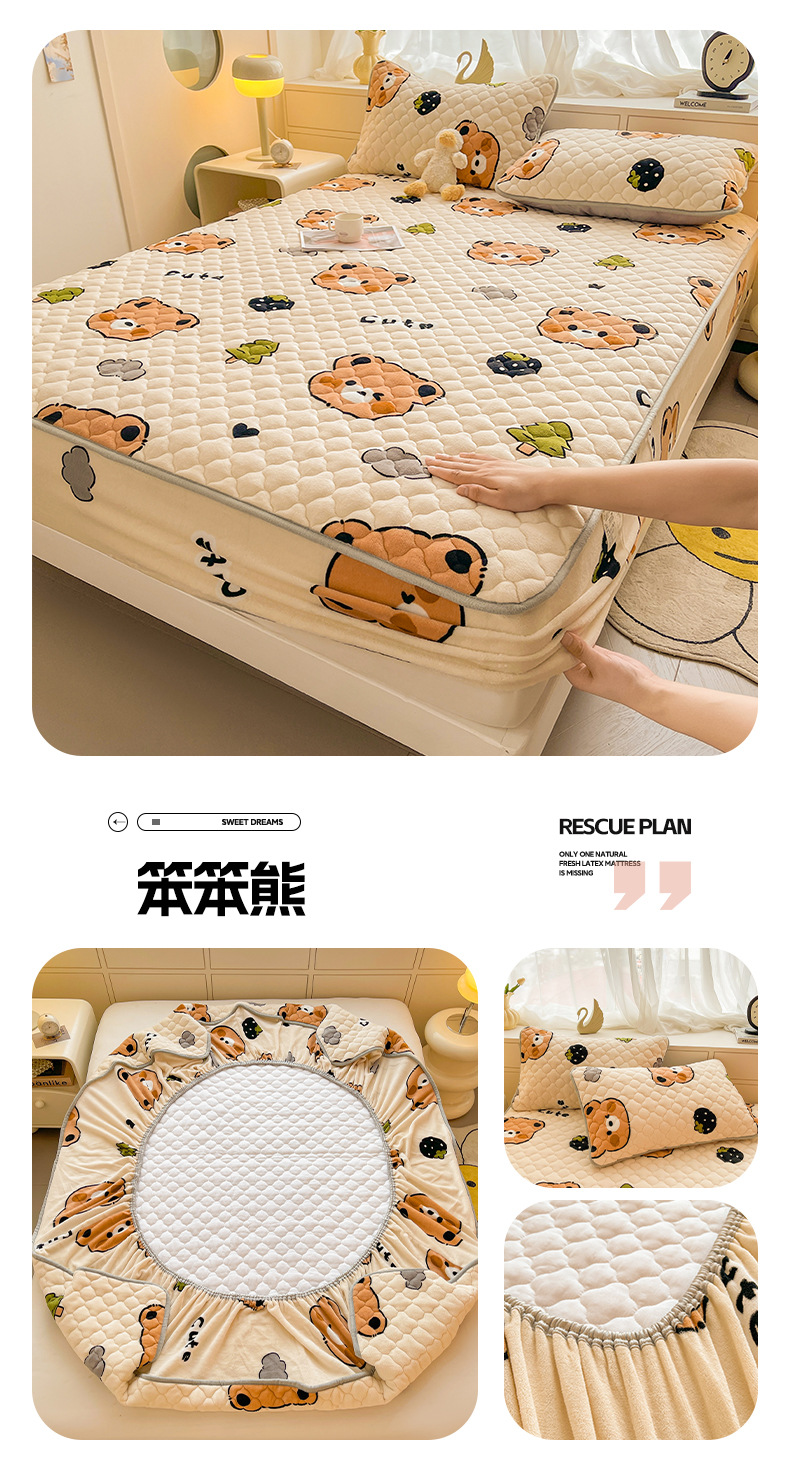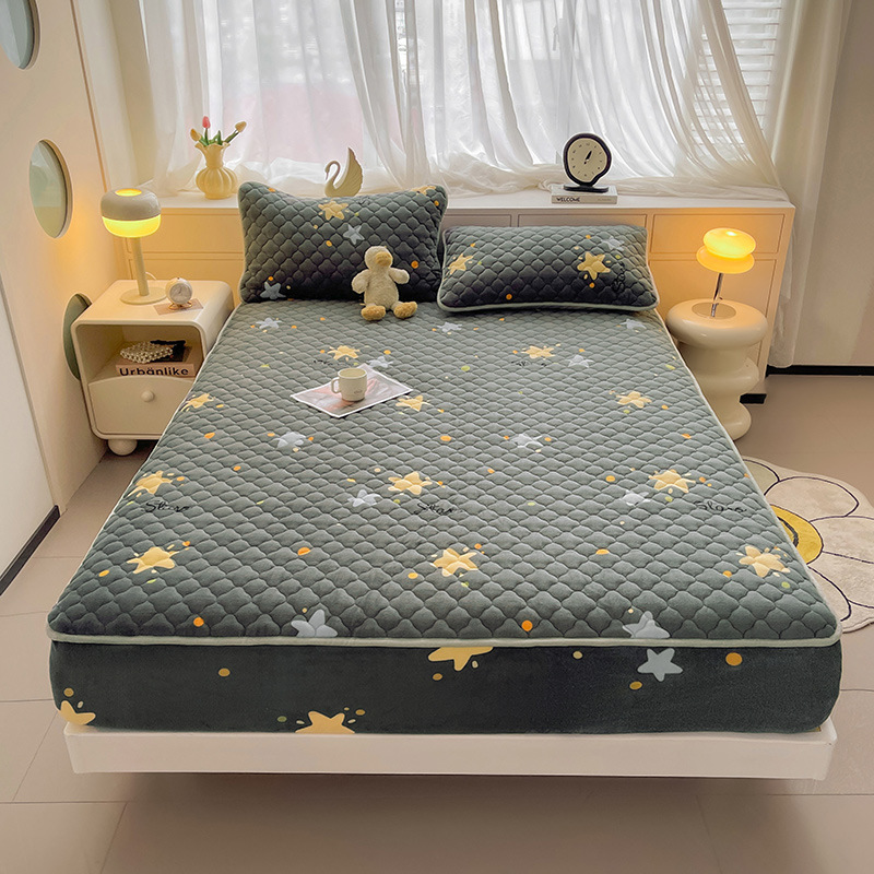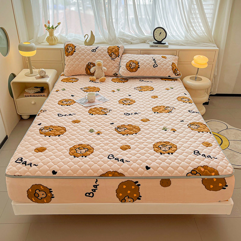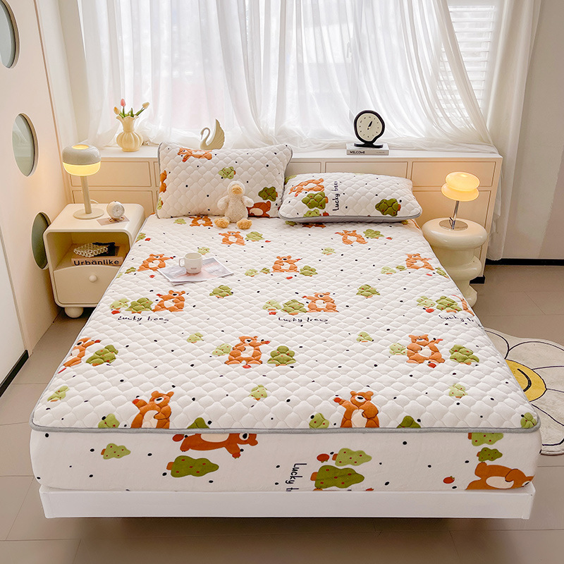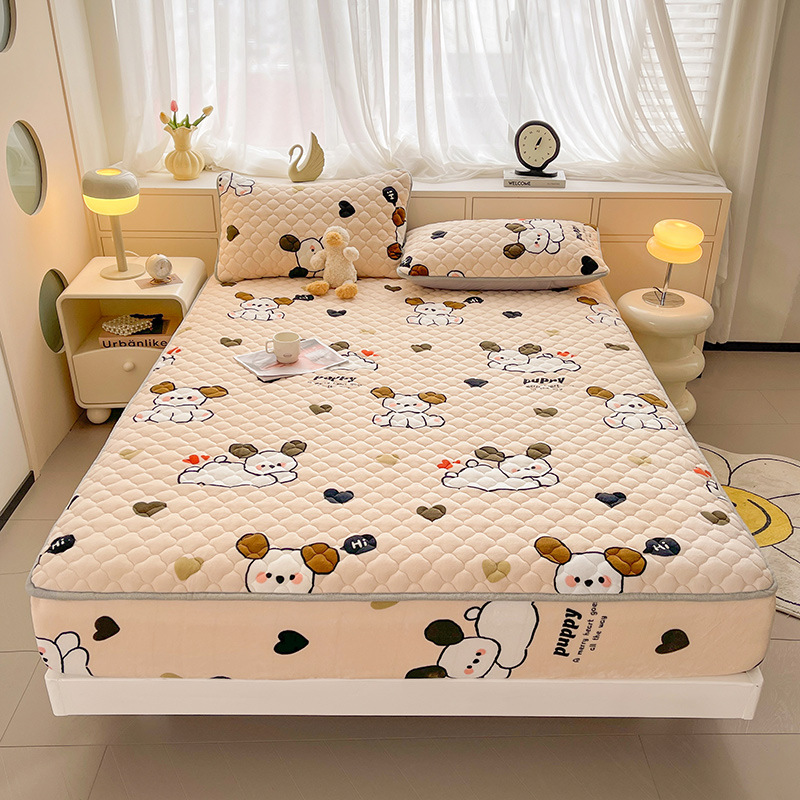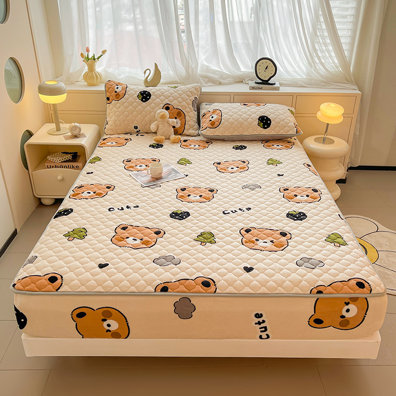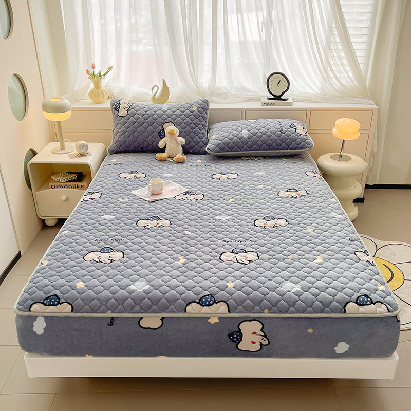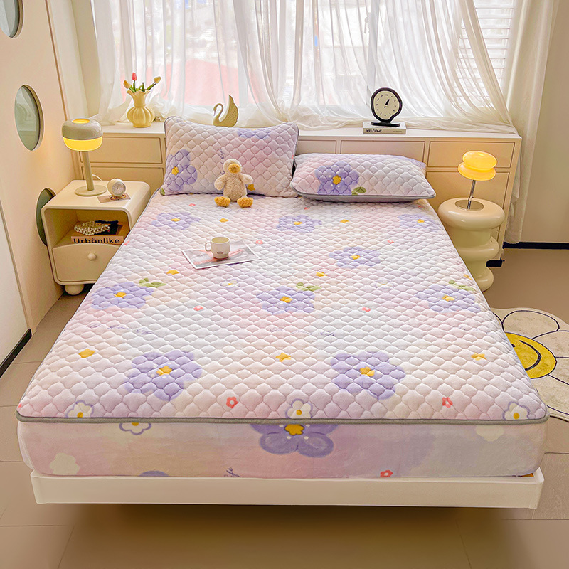 밀크 벨벳 침대 커버 2024 새로운 겨울 두꺼운 퀼트 침대 커버 시몬스 매트리스 보호 커버 코랄 벨벳 침대 시트스토어 가기