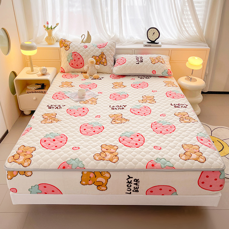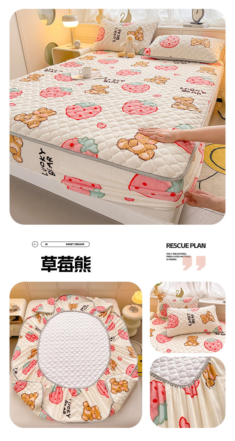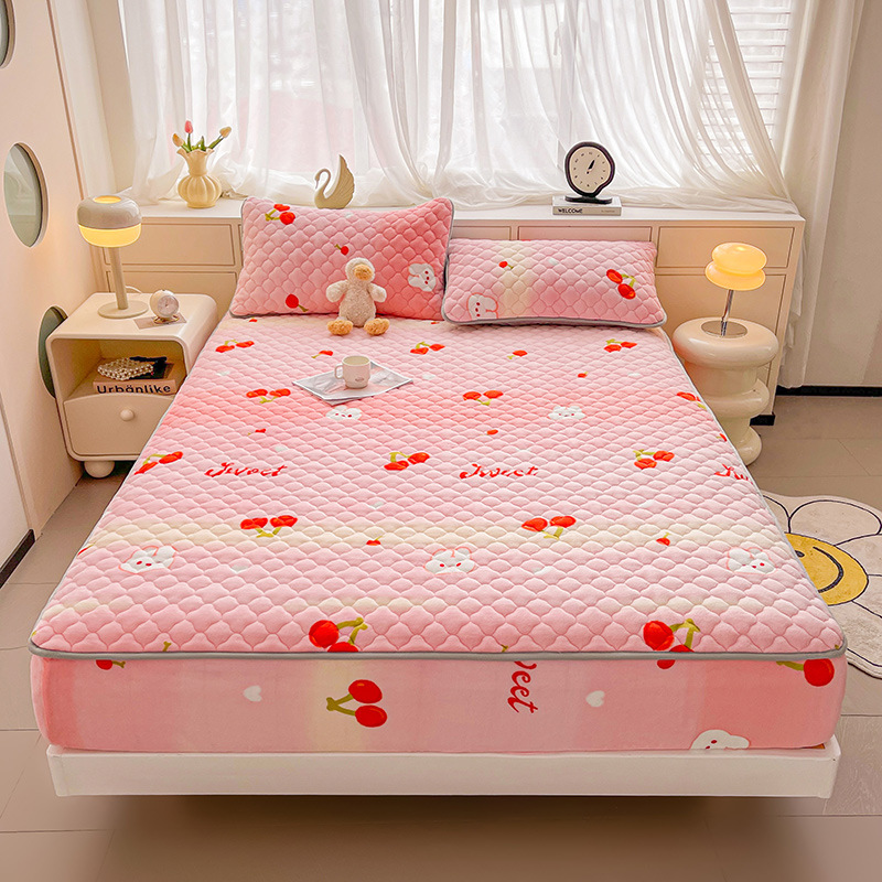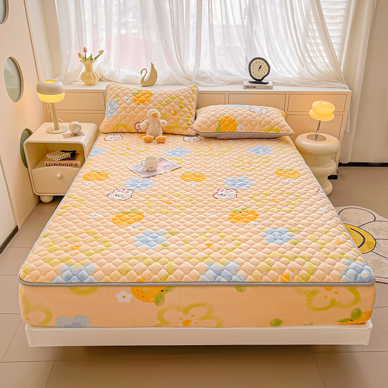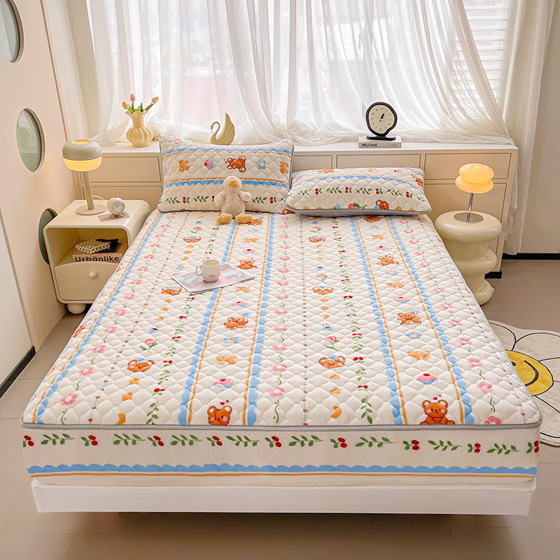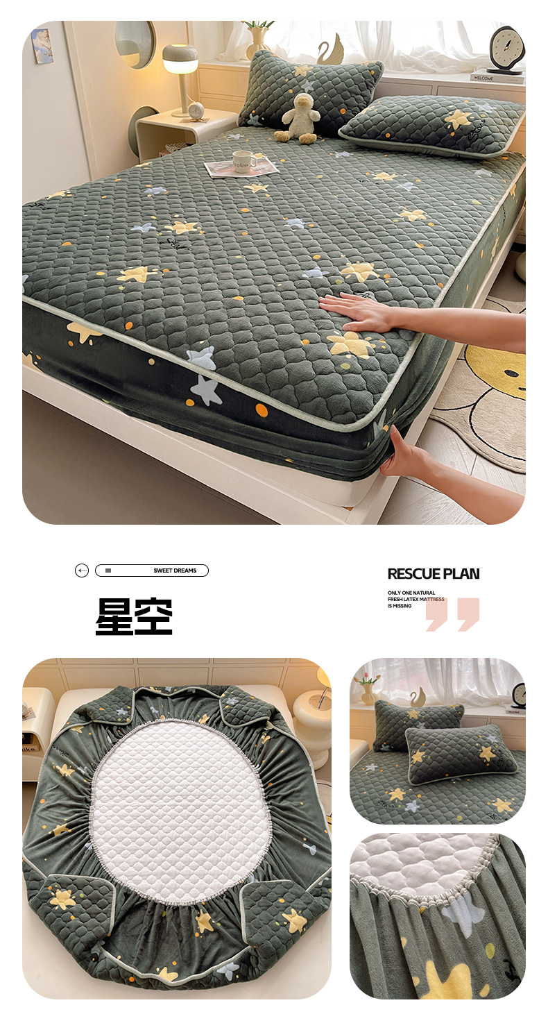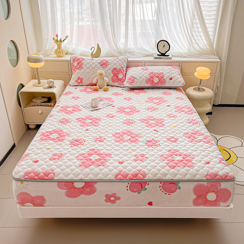 밀크 벨벳 침대 커버 2024 새로운 겨울 두꺼운 퀼트 침대 커버 시몬스 매트리스 보호 커버 코랄 벨벳 침대 시트스토어 가기