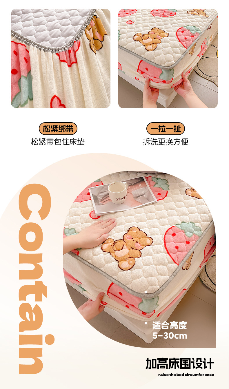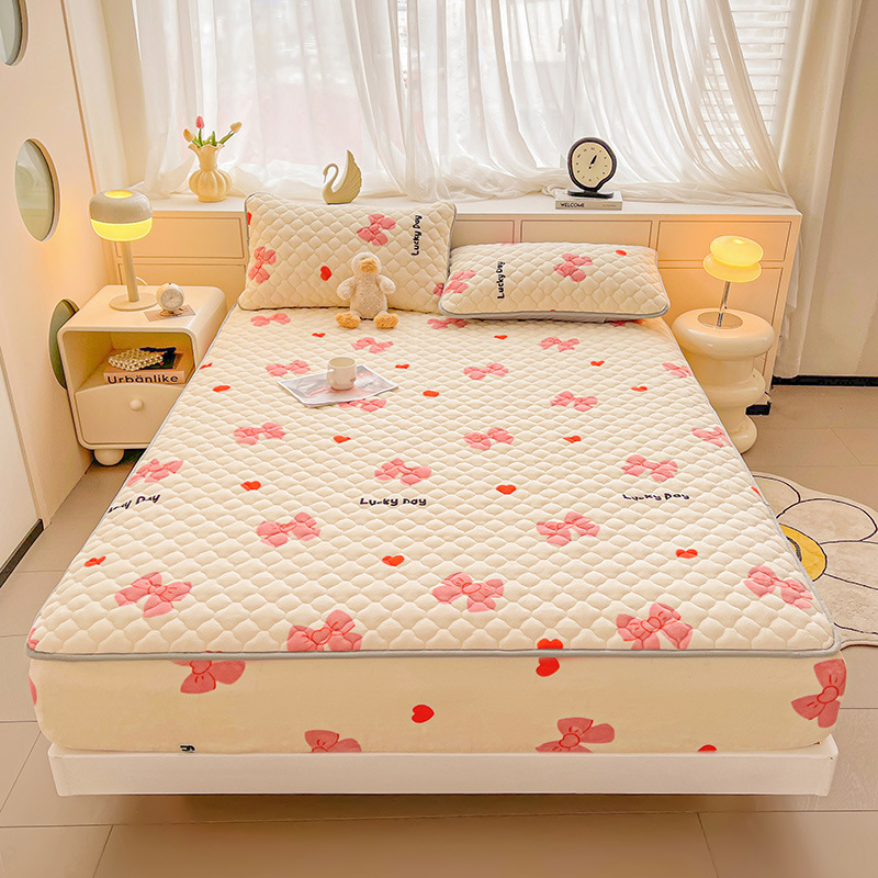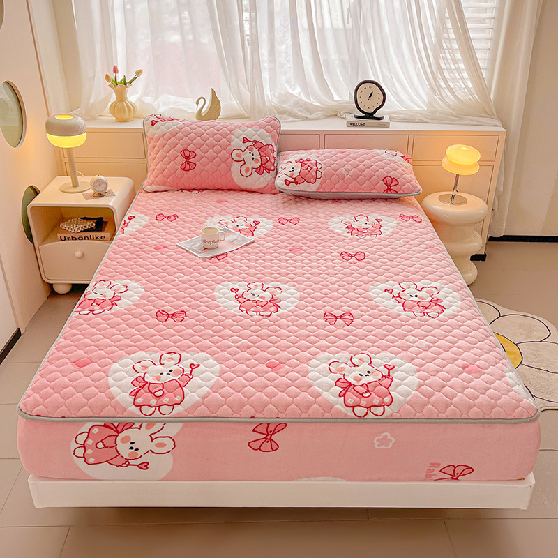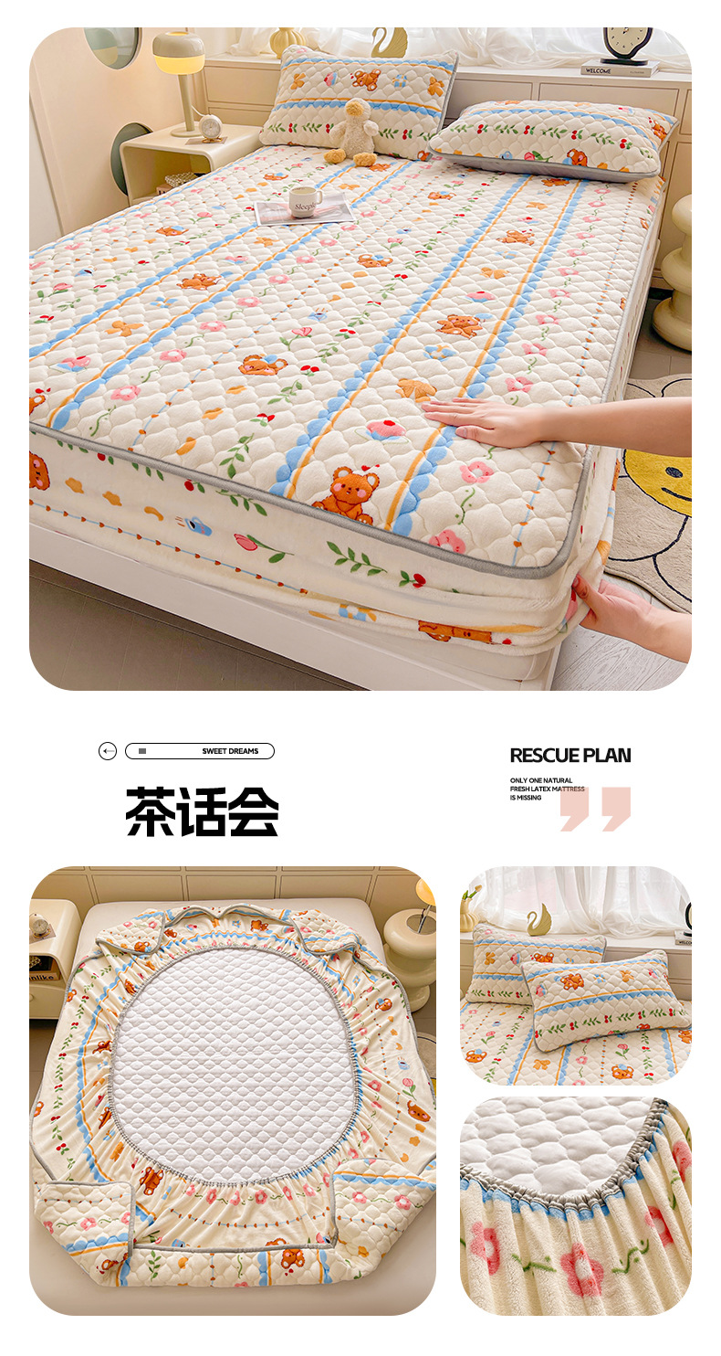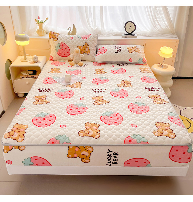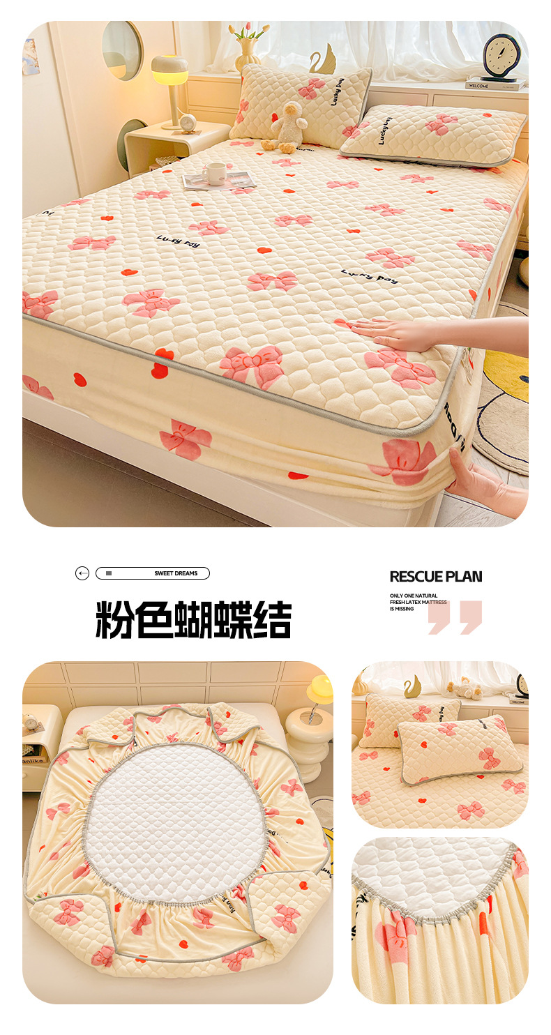 밀크 벨벳 침대 커버 2024 새로운 겨울 두꺼운 퀼트 침대 커버 시몬스 매트리스 보호 커버 코랄 벨벳 침대 시트스토어 가기