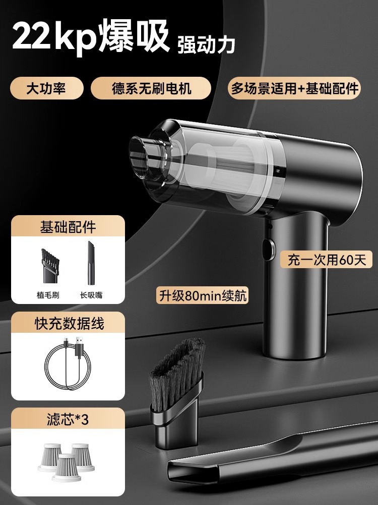 • 전용 상위 모델 [28Kpa 폭발 흡입 + 7000mAh 배터리 수명 + 흡입/블로우/충전/3-in-1] + 무료 필터 요소 3개