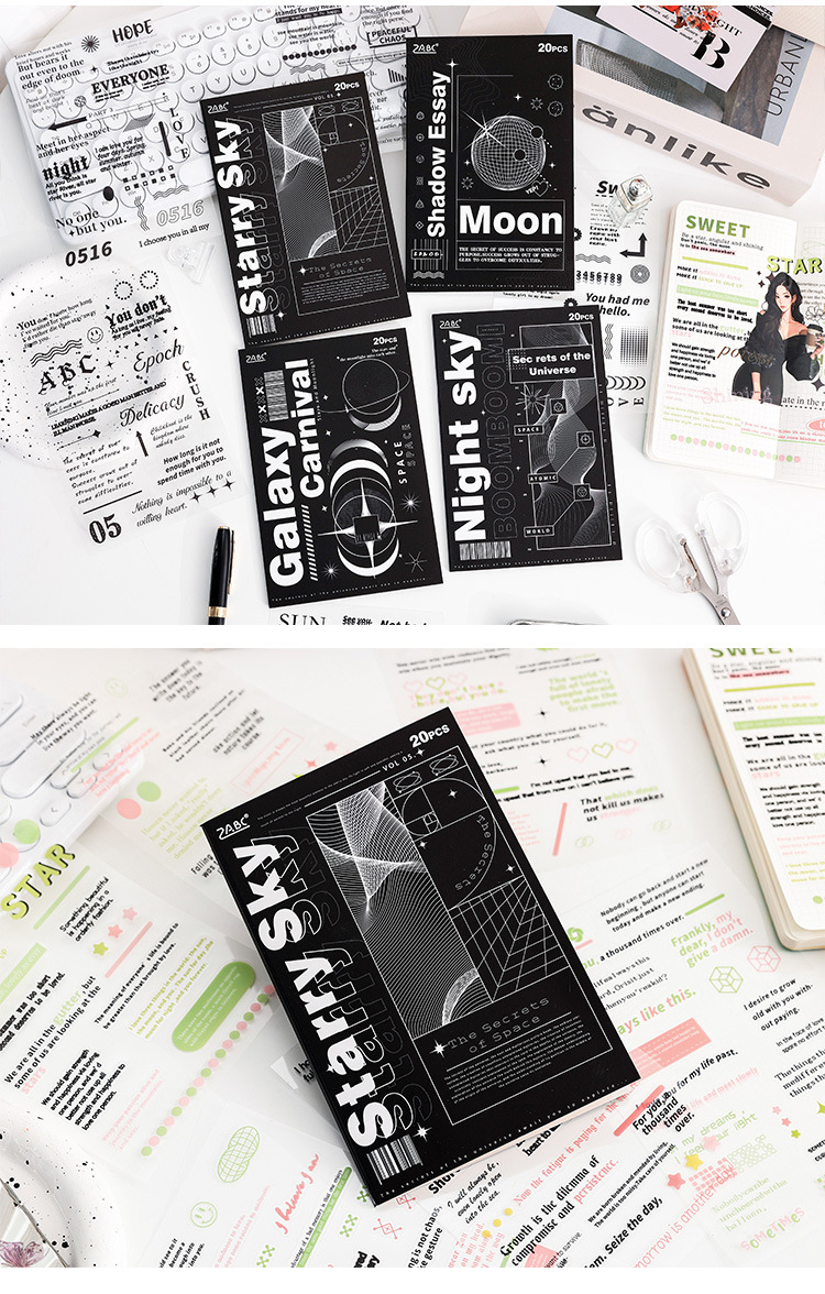 스타 노트 투명 방수 애완 동물 스티커 일기 스티커 국경 간 복고풍 부서 영어 소재 스티커스토어 가기