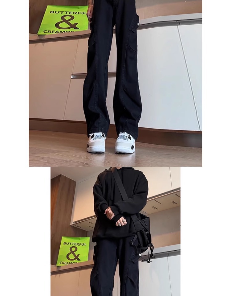 블랙 툴링 청바지 남자의 봄과 가을 강아지 잘 생긴 고급 마체테 바지 디자인 바느질 스트레이트 바지스토어 가기