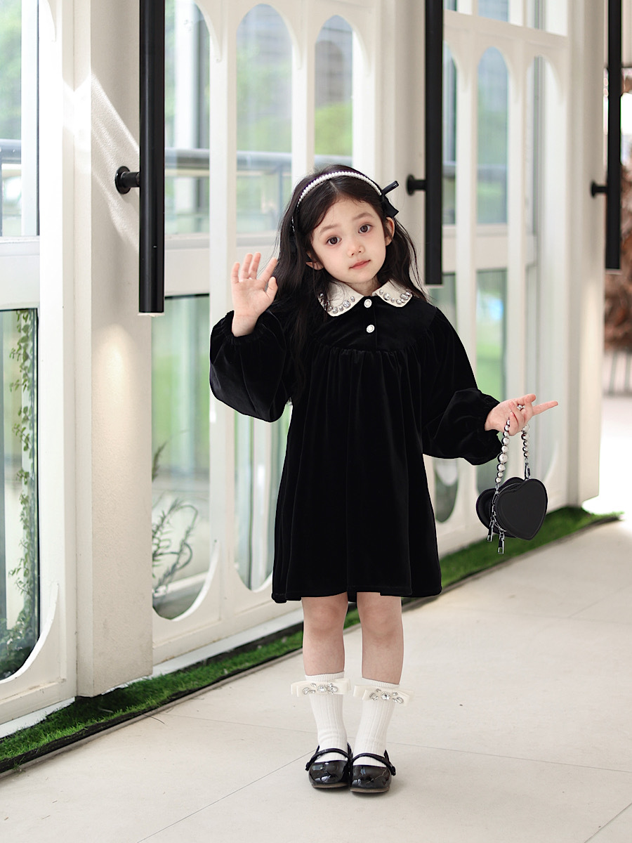 어린이 원피스 원피스 높은 세트 수제! 가을 겨울 소녀 벨벳 원피스 우아한 다이아몬드 칼라 긴 소매 공주 원피스