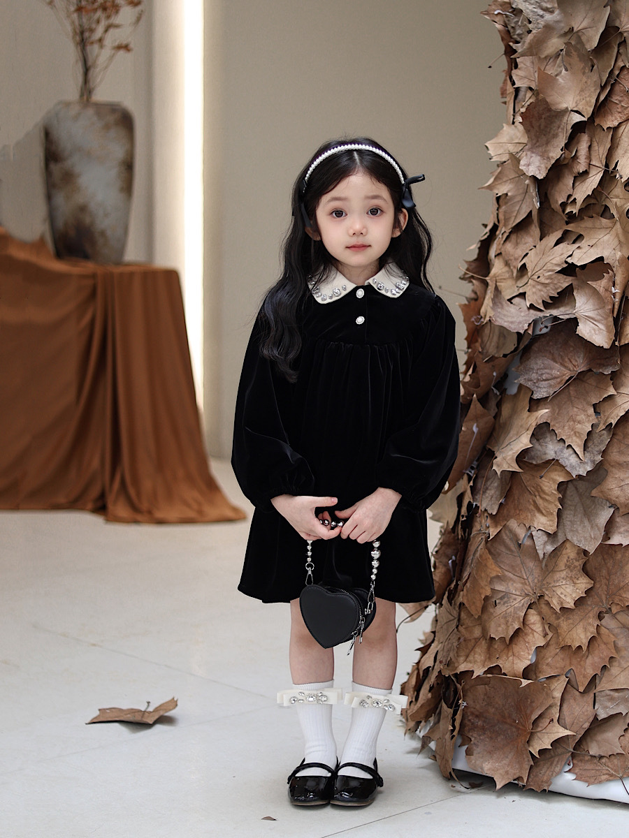 어린이 원피스 원피스 높은 세트 수제! 가을 겨울 소녀 벨벳 원피스 우아한 다이아몬드 칼라 긴 소매 공주 원피스스토어 가기