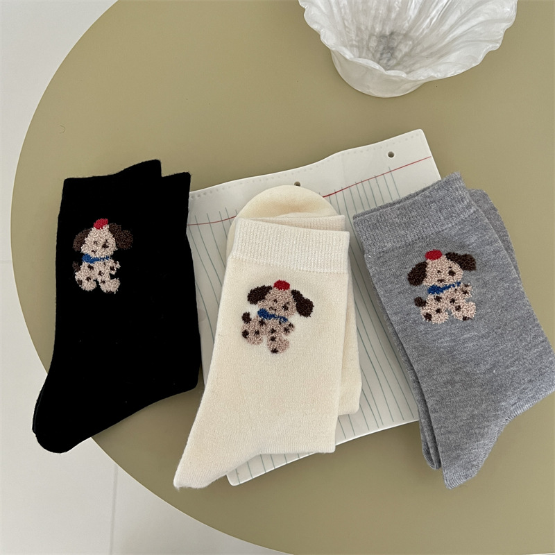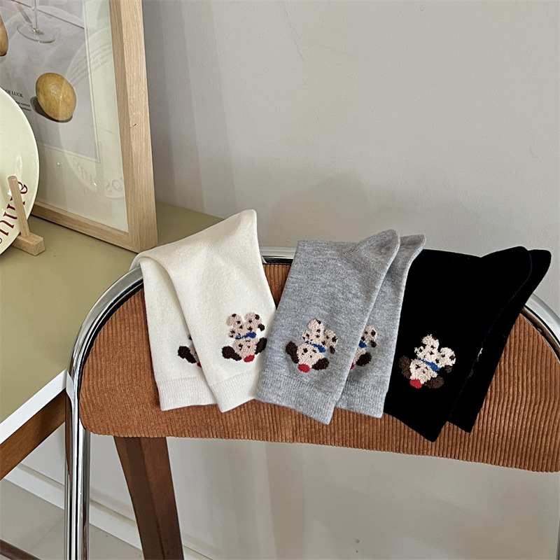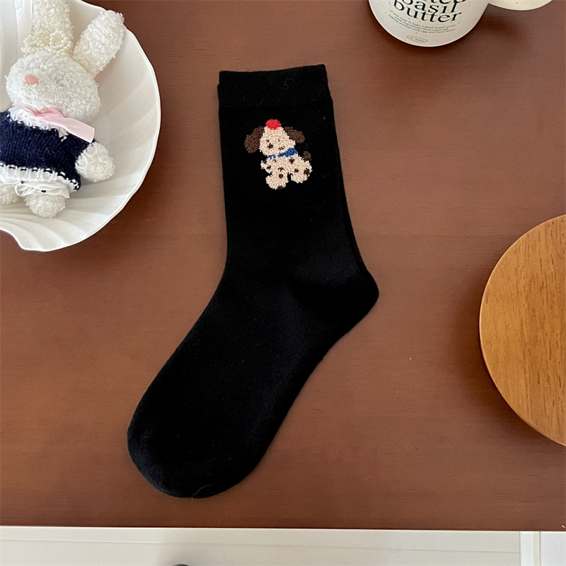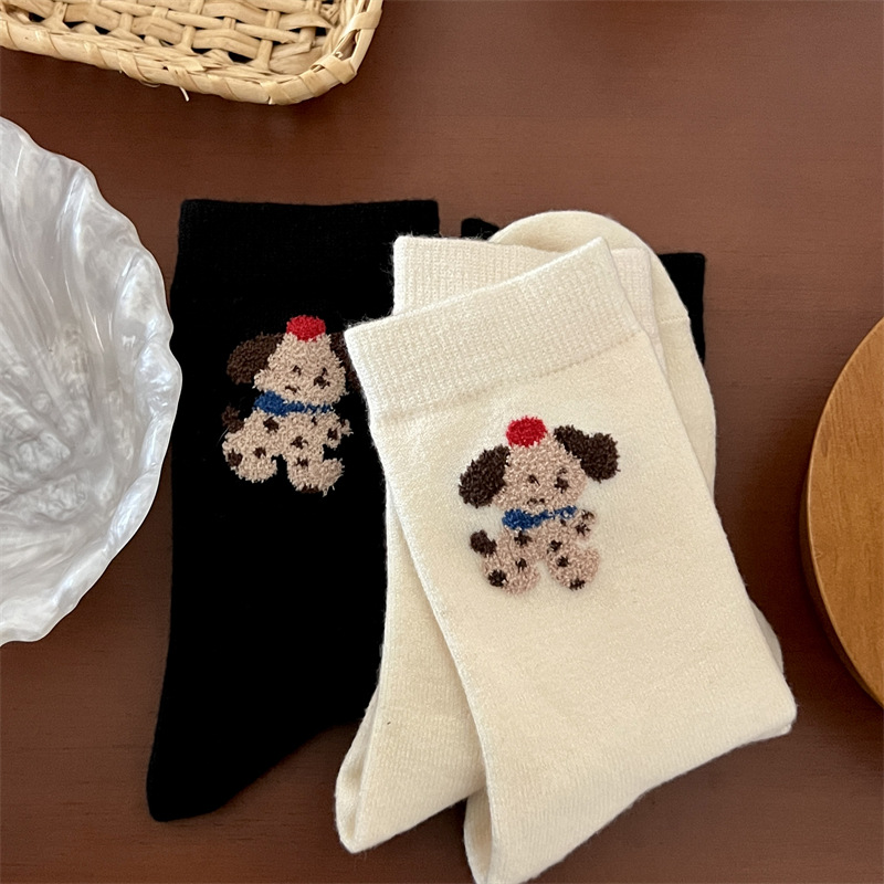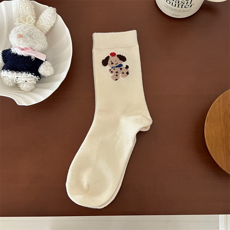 해피 퍼피 개성 만화 토끼 양털 양말 여성용 중간 길이 양말 가을 겨울 얇은 스타일 심플하고 다재다능한 독특한 스타일의 양말 여성용