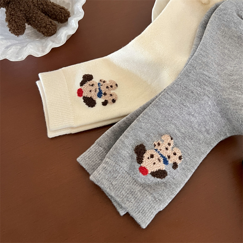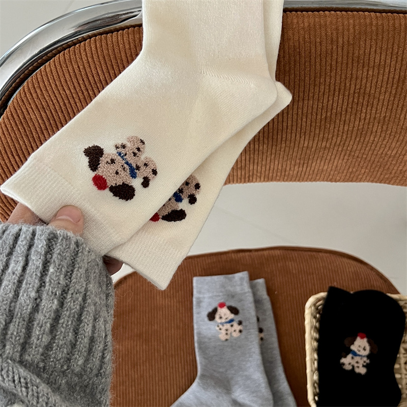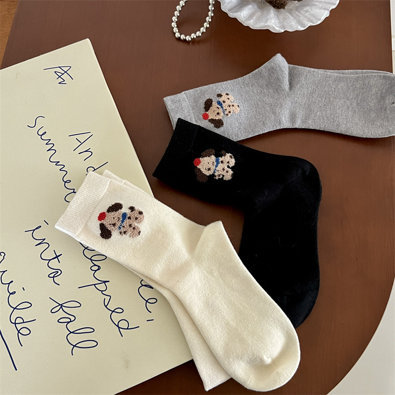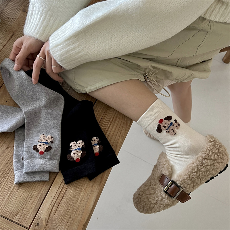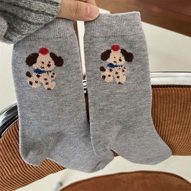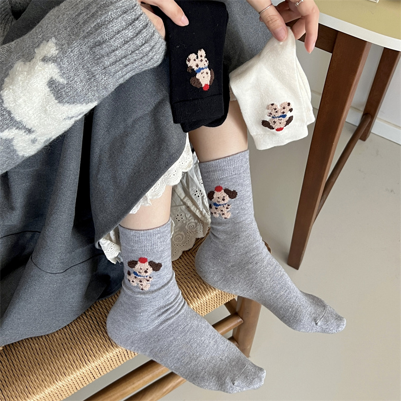 해피 퍼피 개성 만화 토끼 양털 양말 여성용 중간 길이 양말 가을 겨울 얇은 스타일 심플하고 다재다능한 독특한 스타일의 양말 여성용