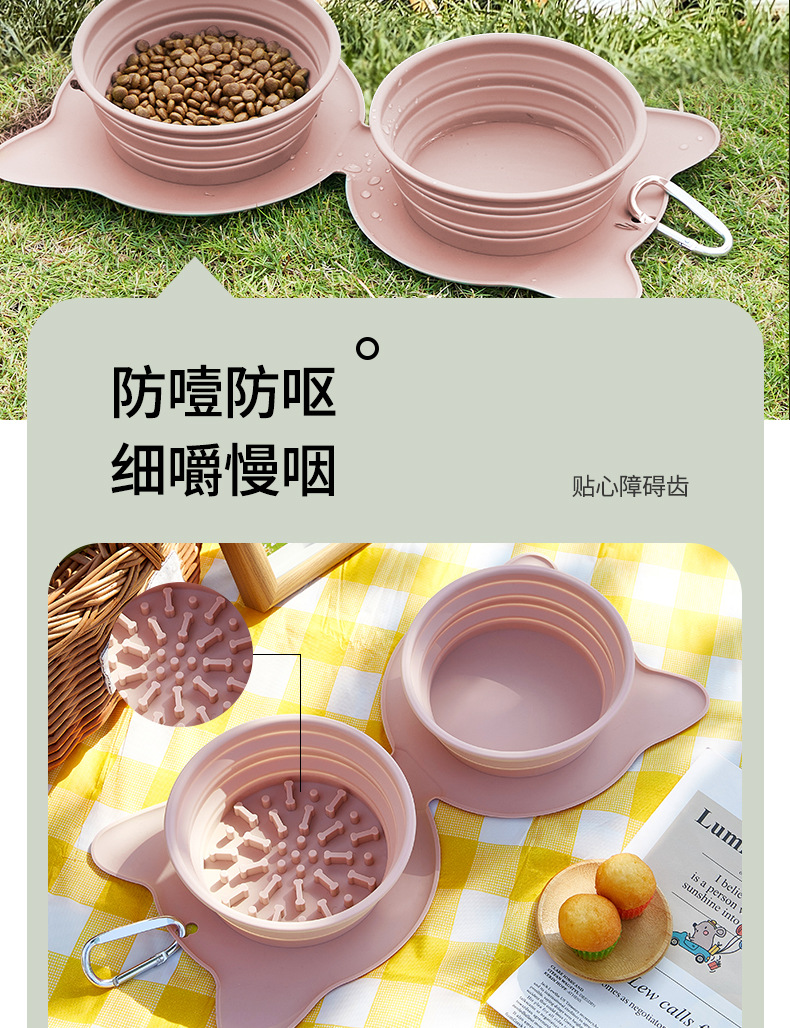 애완 동물 접이식 그릇, 더블 그릇, 야외 휴대용 강아지 그릇, 강아지 슬로우 피더, 고양이 및 강아지용 실리콘 물통 도매스토어 가기
