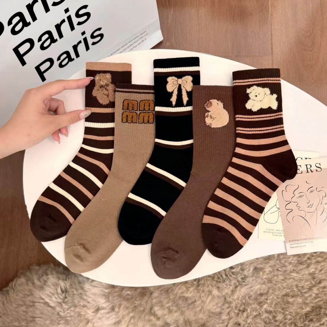 깃털 원사 양말 여성 양말 가을 겨울 한국 스타일 패션 디자인 센스 하이인 마일라드 스트라이프 따뜻한