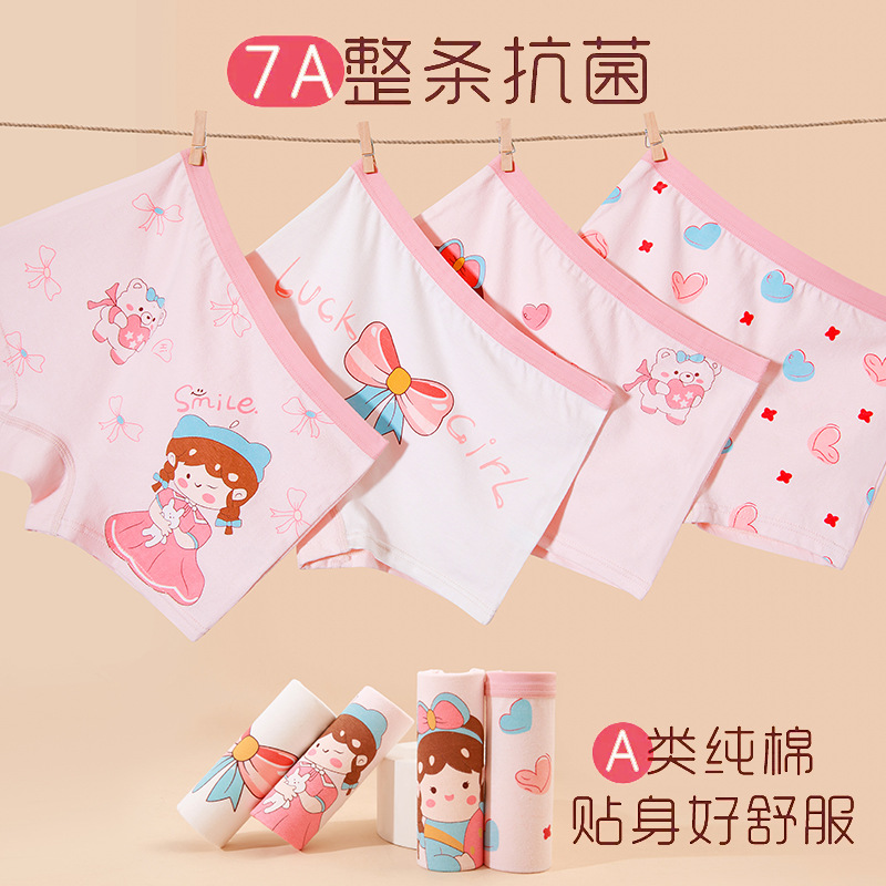 여아 속옷, 사각팬티, 순면반바지, 아동용 사각팬티, 여아, 어린 소녀, 엉덩이를 꼬집지 않고 야외에서 착용 가능