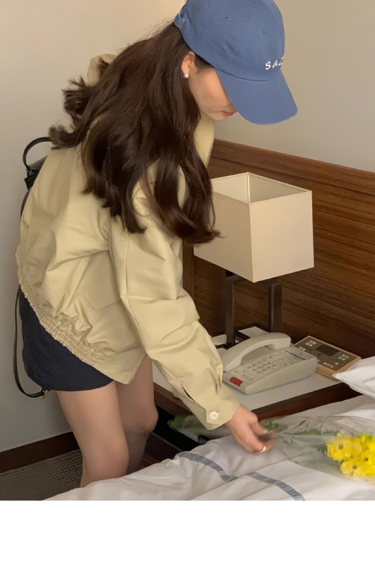 여성용 짧은 작업 재킷 2025 봄, 가을 새로운 스타일 작은 캐주얼 루즈 라펠 야구 재킷 탑스토어 가기
