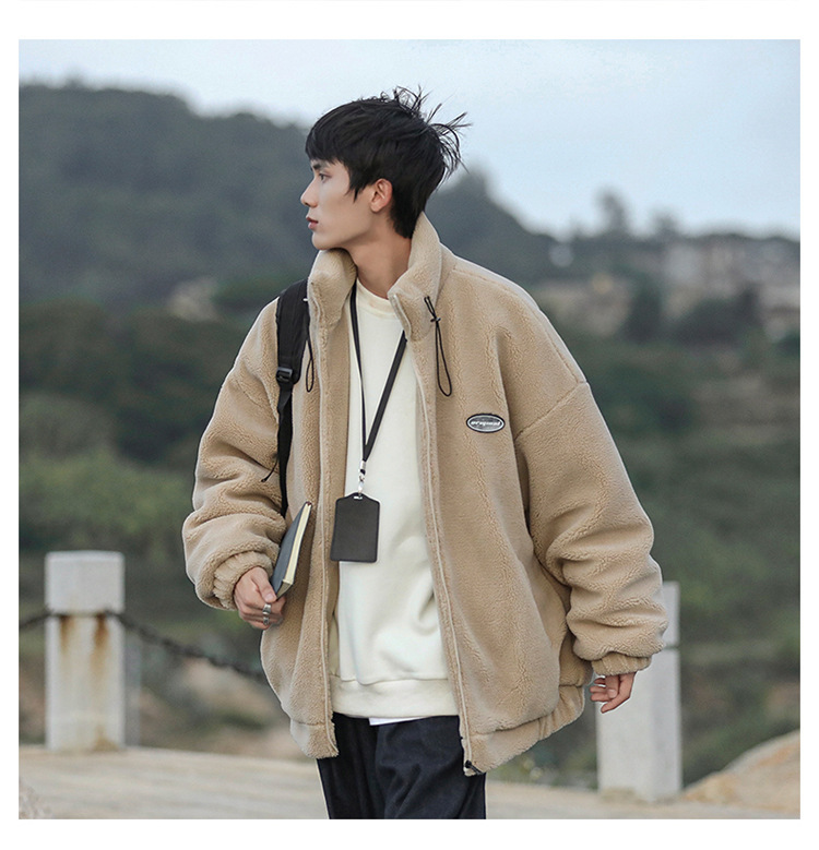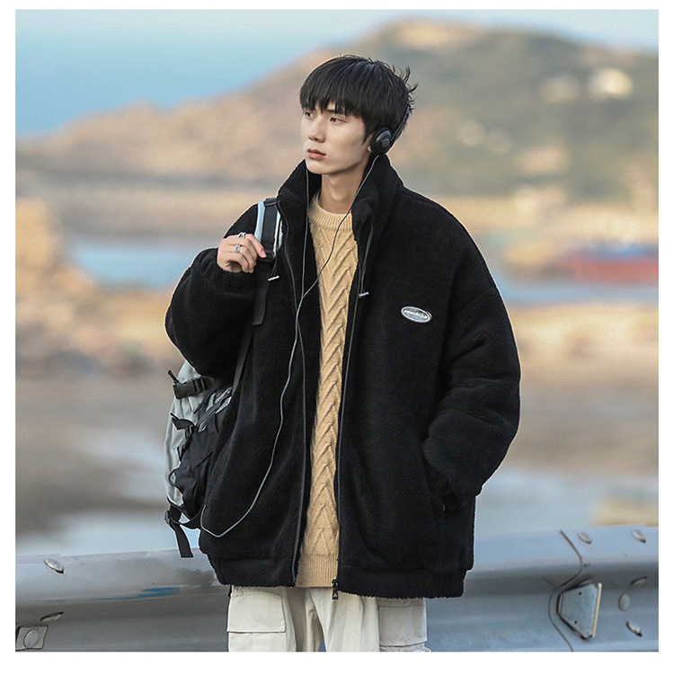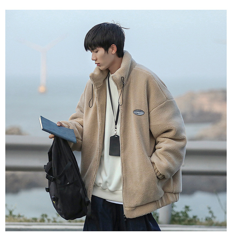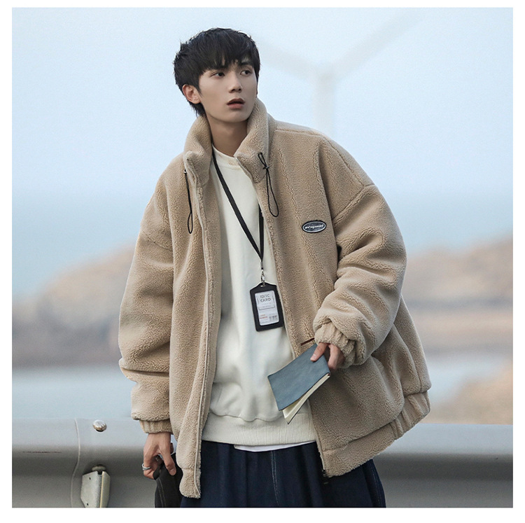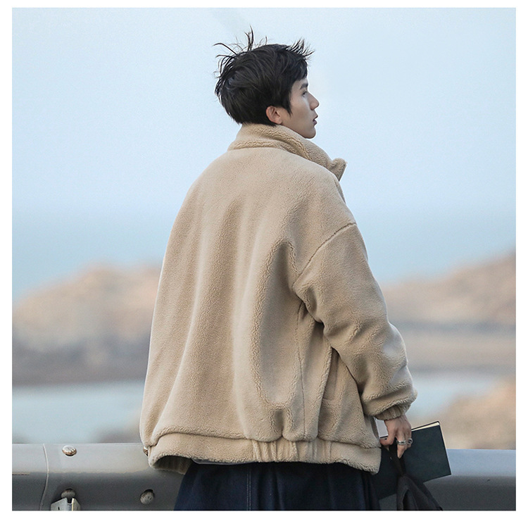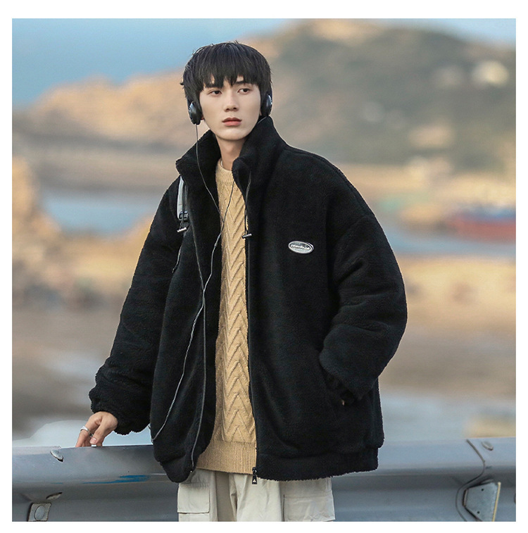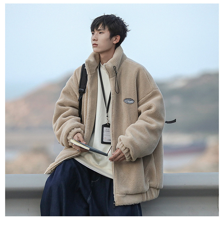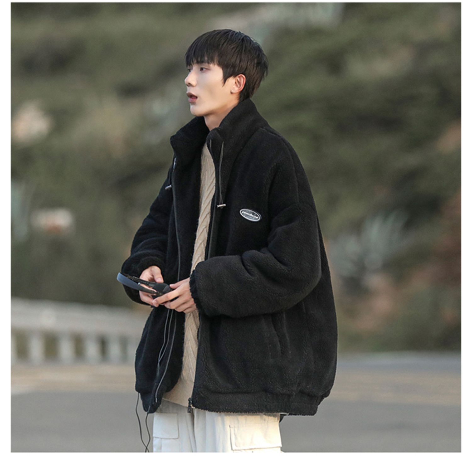 일본식 cityboy Cotton-padded Coat 남자 겨울 기모 두꺼운 한국식 양가죽 코트 느슨한 유행 칼라 코튼 패딩 코트스토어 가기