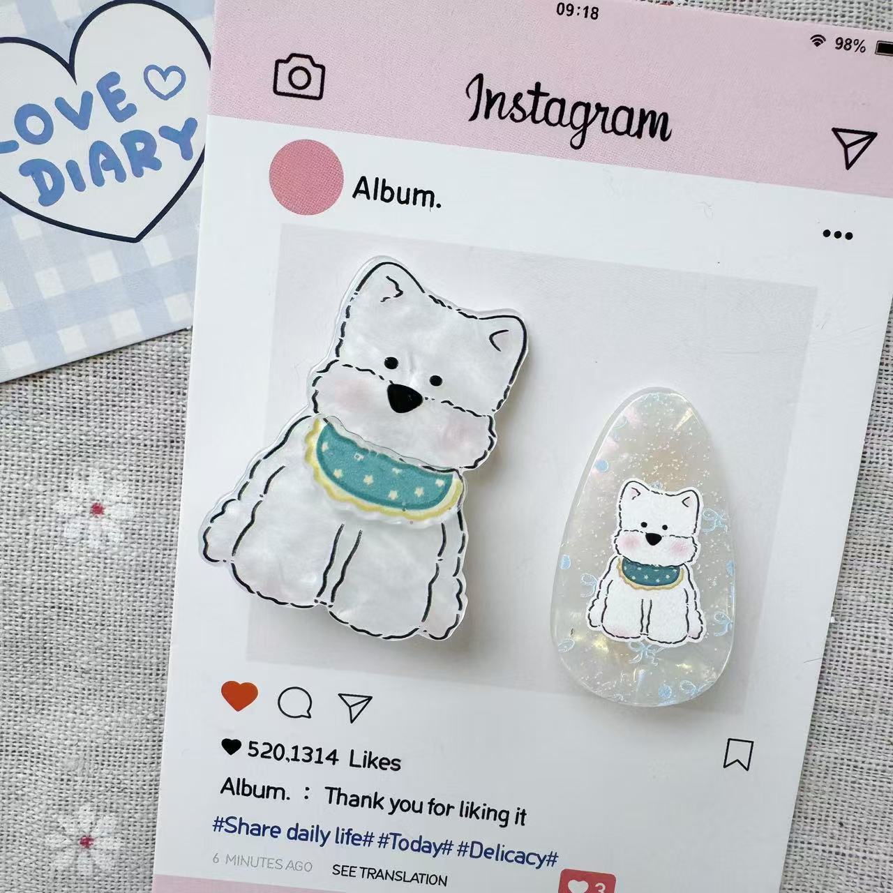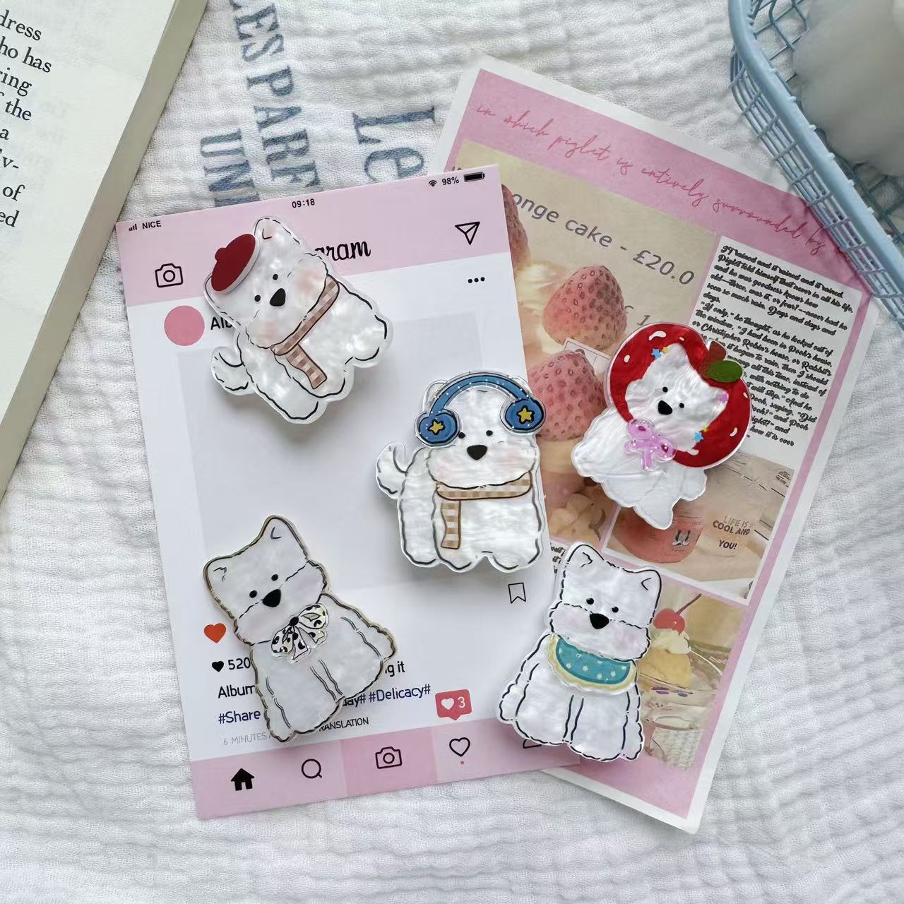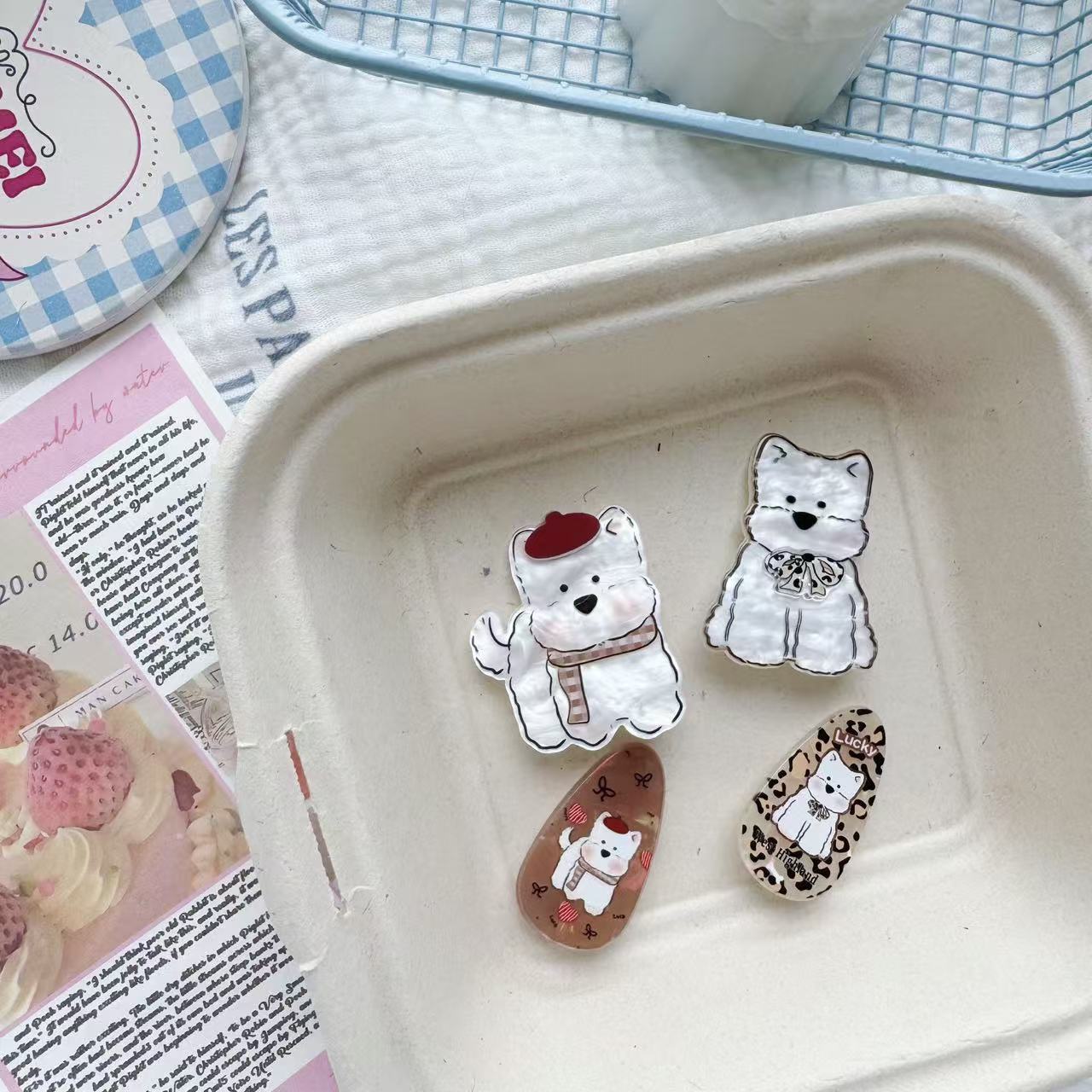 귀여운 만화 웨스트 하이랜드 강아지 아크릴 헤어핀 달콤한 소녀 하트 뱅 클립 클립 어린이 헤어핀 헤어 액세서리스토어 가기