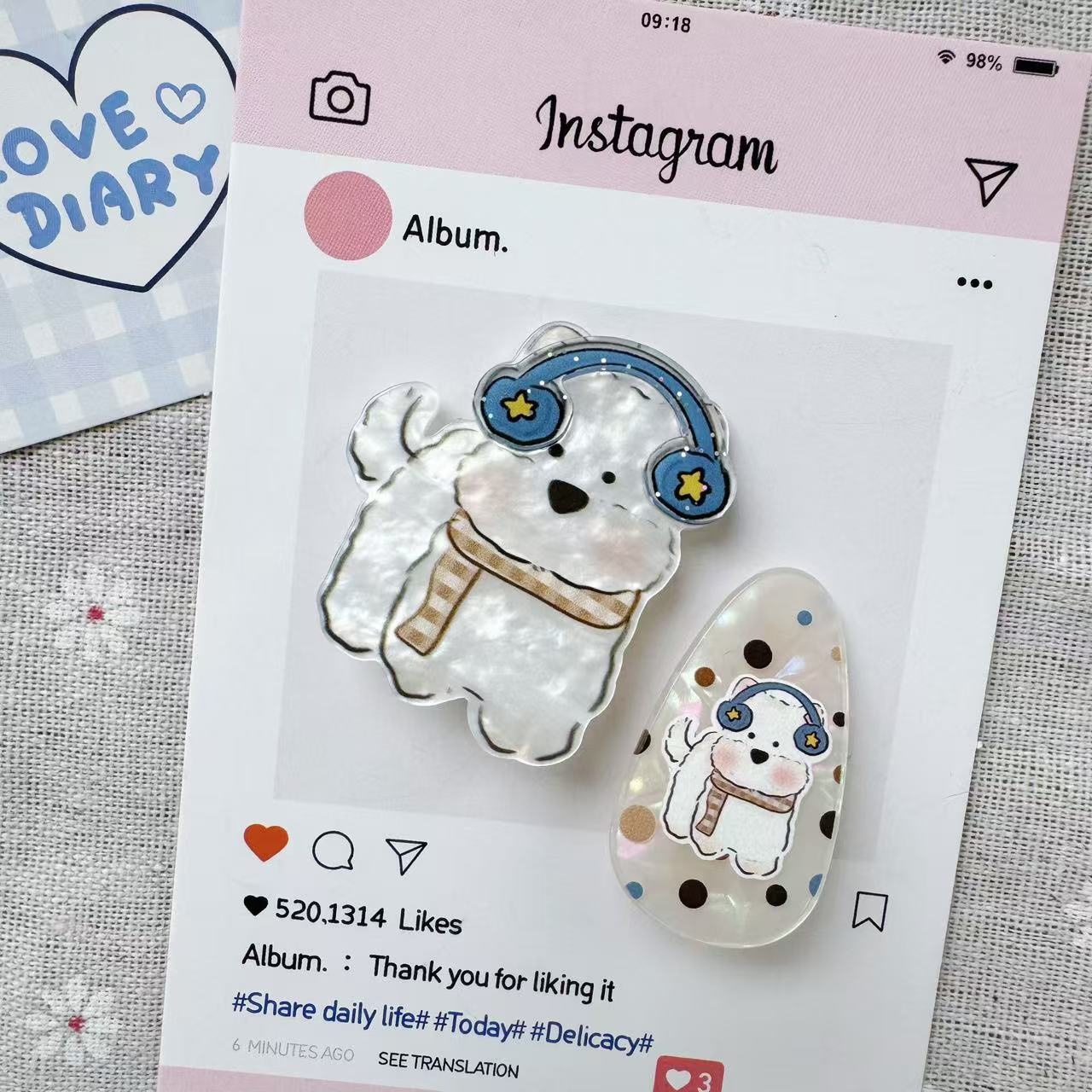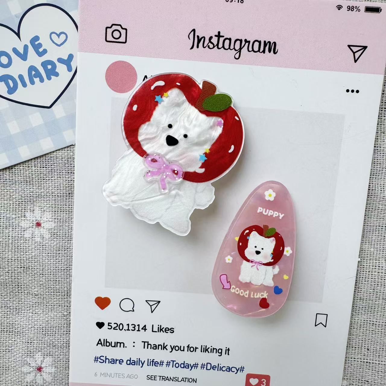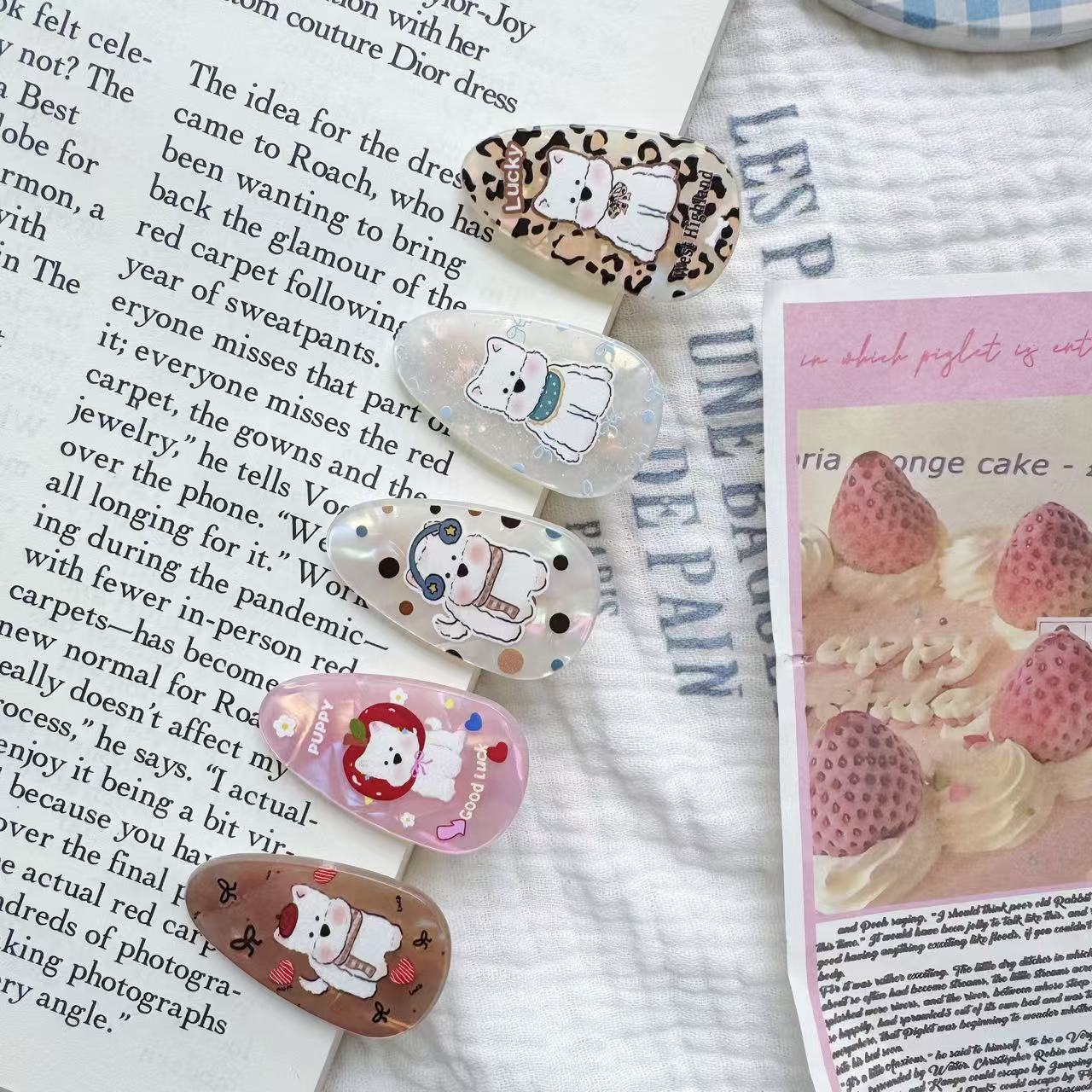귀여운 만화 웨스트 하이랜드 강아지 아크릴 헤어핀 달콤한 소녀 하트 뱅 클립 클립 어린이 헤어핀 헤어 액세서리스토어 가기