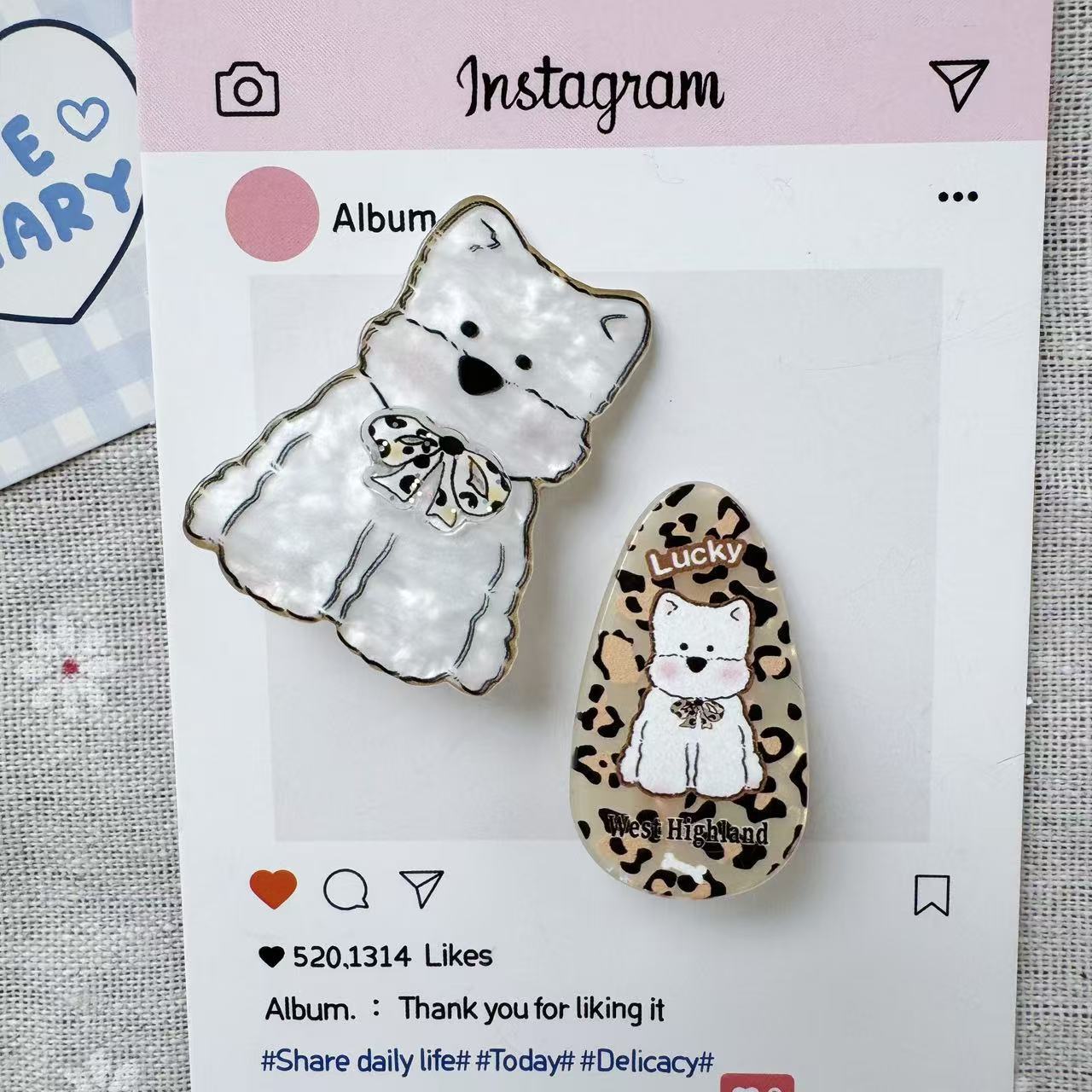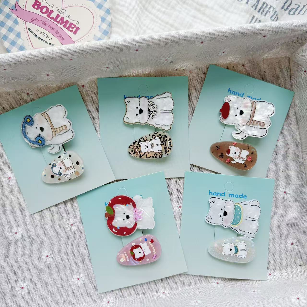 귀여운 만화 웨스트 하이랜드 강아지 아크릴 헤어핀 달콤한 소녀 하트 뱅 클립 클립 어린이 헤어핀 헤어 액세서리