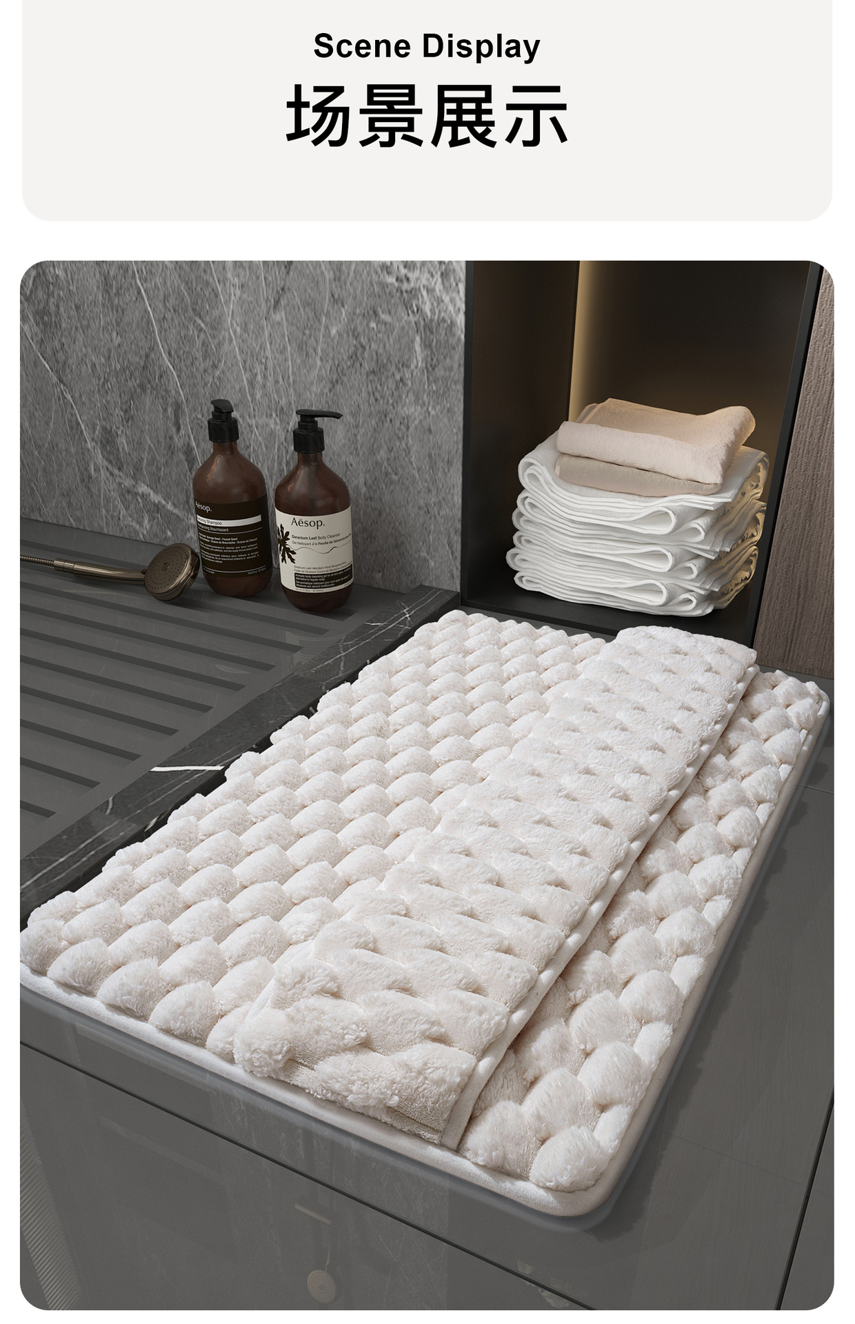 • 아이스크림 벨벳 욕실 매트 - 등받이가 있는 업그레이드된 미니멀리스트 쌀