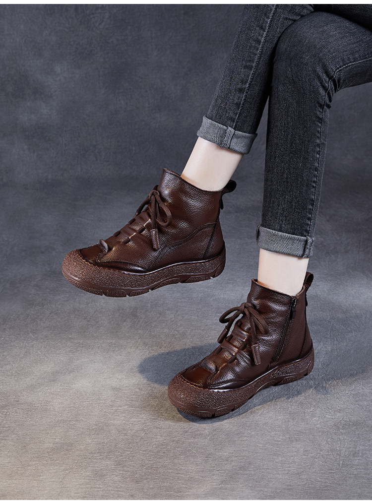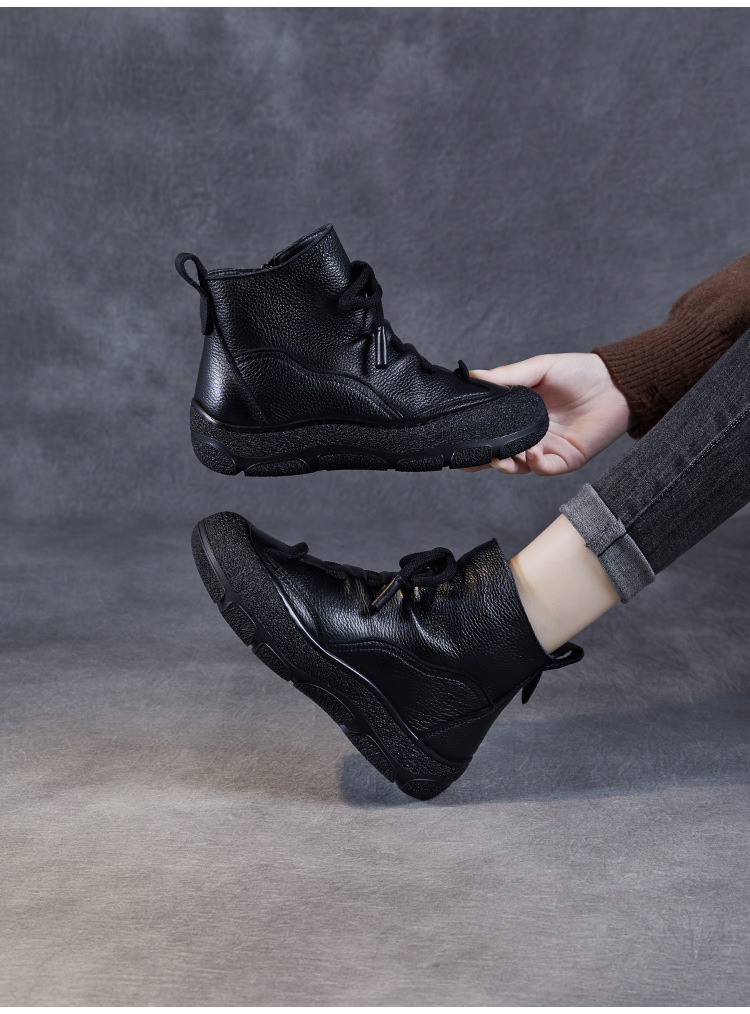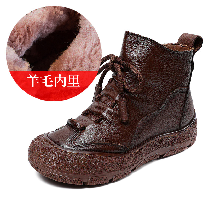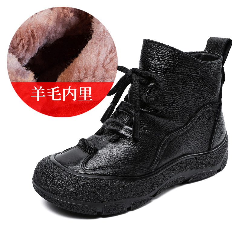 울 여성 신발 정품 가죽 마틴 2024 겨울 새로운 복고풍 부드러운 밑창 캐주얼 발목 부츠 스포츠 하이 탑 두꺼운 양모 부츠