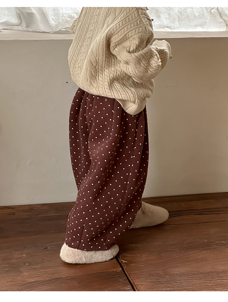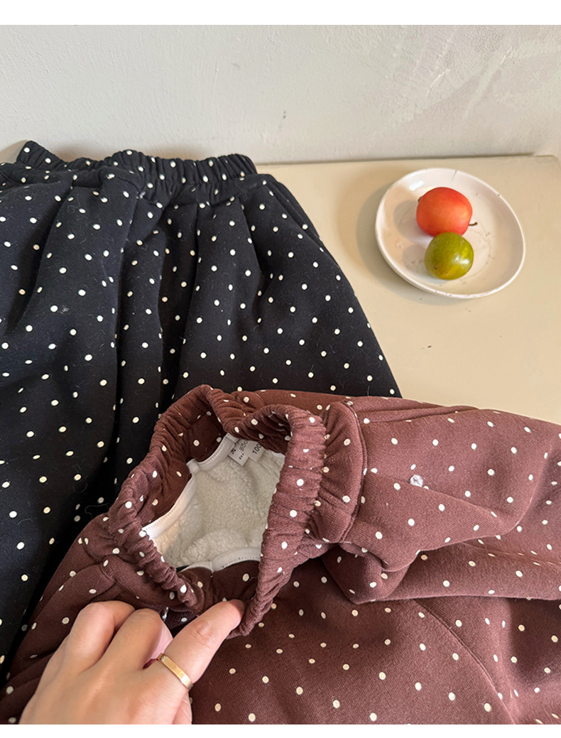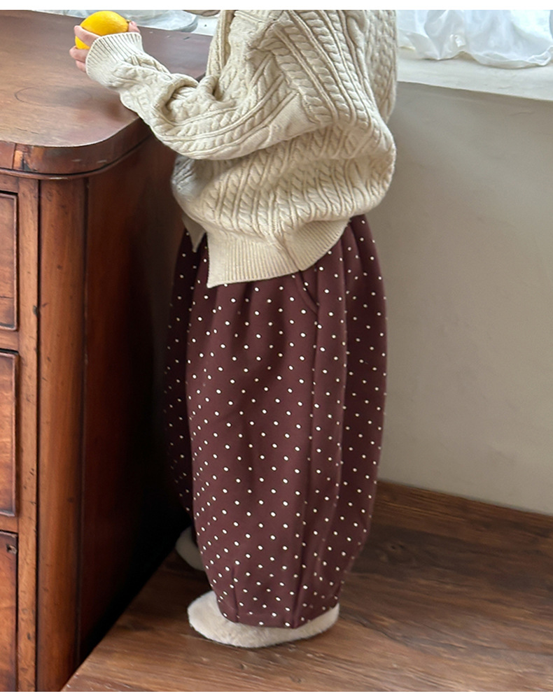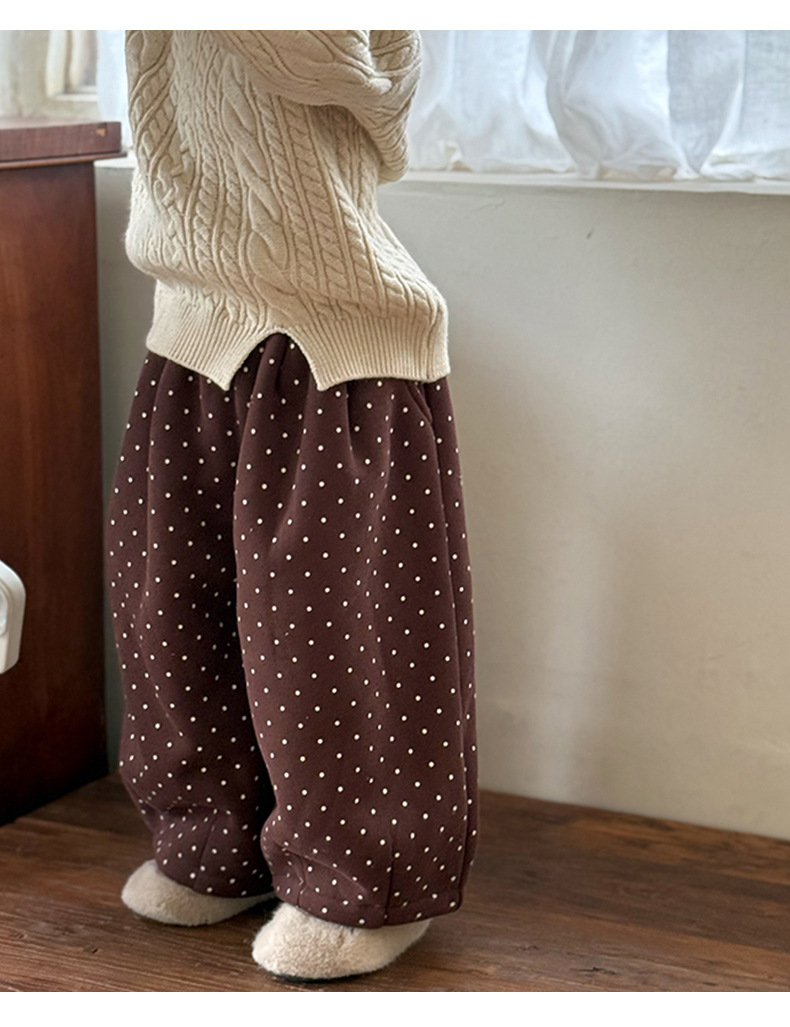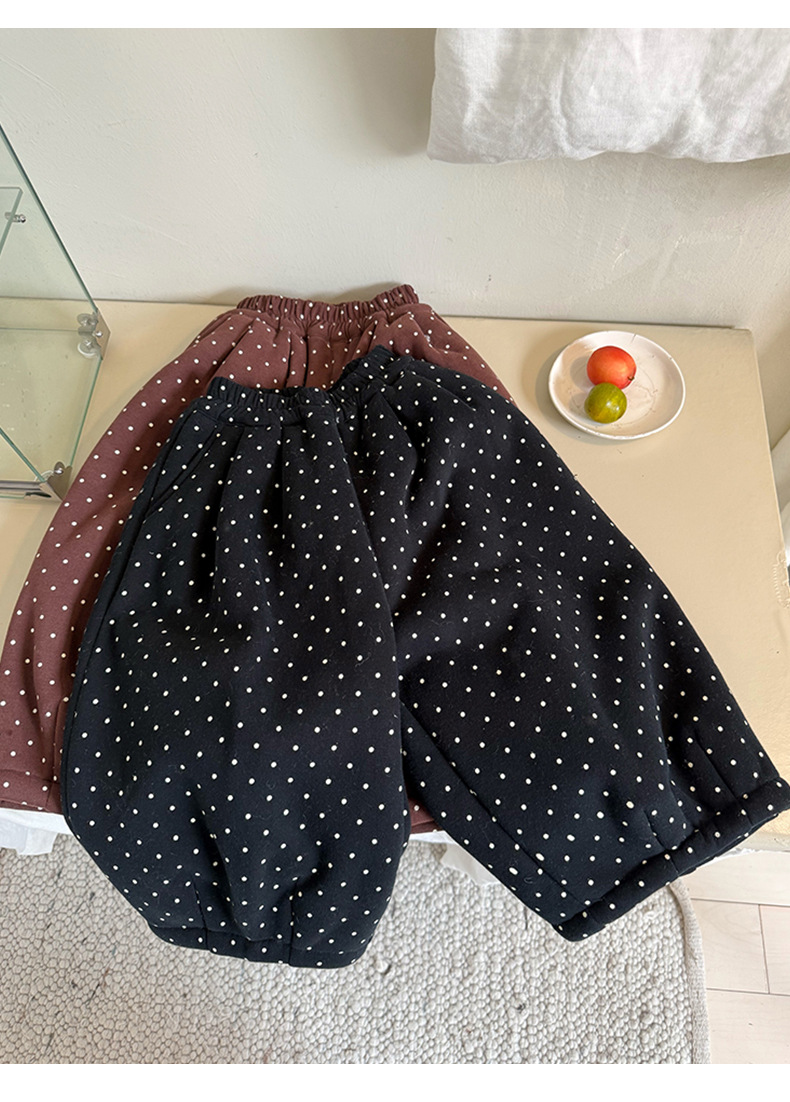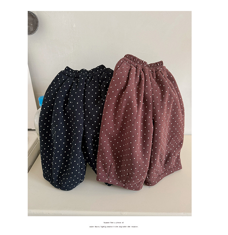 어린이 물방울무늬 플리스 당근바지 2025 겨울 신상 남녀공용 니트 랜턴바지 9부 바지스토어 가기