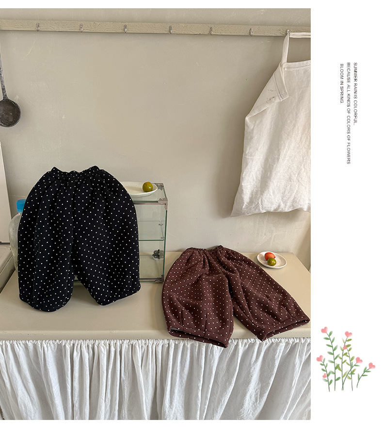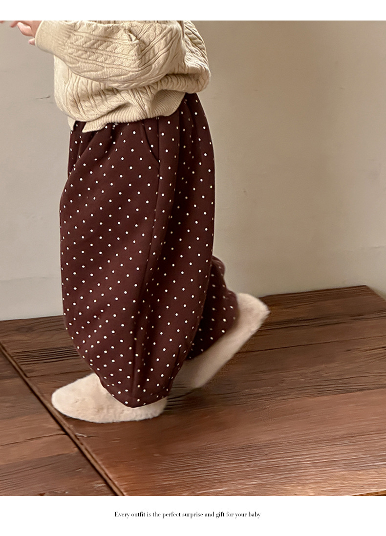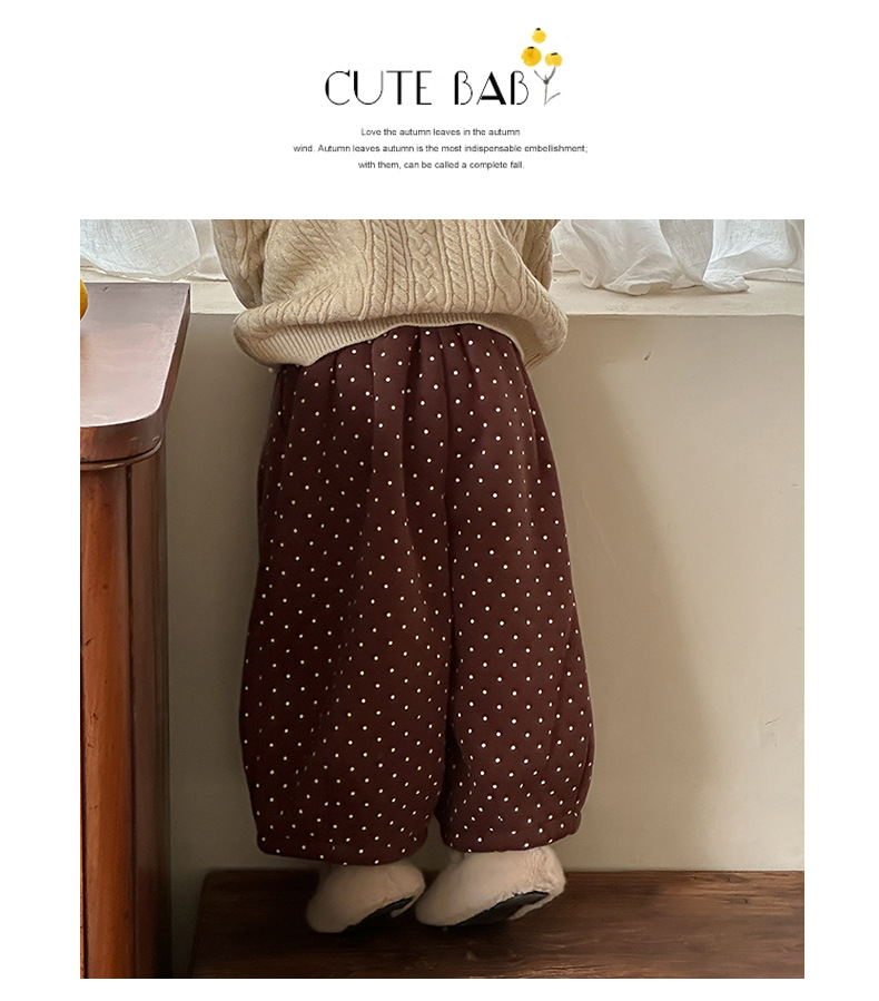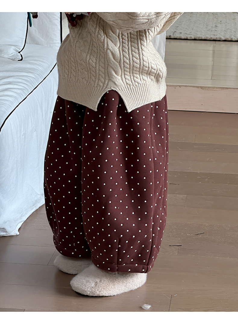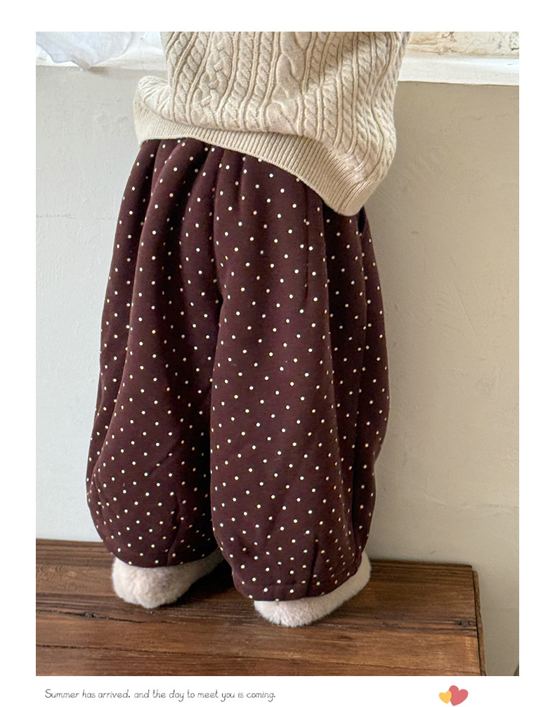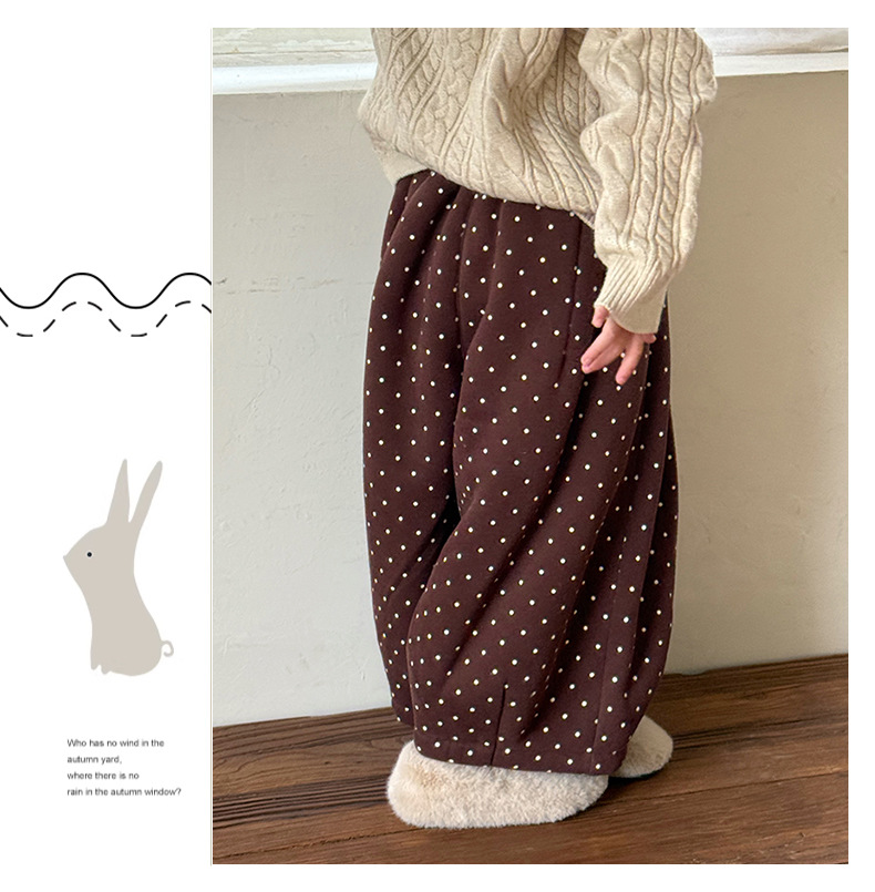 어린이 물방울무늬 플리스 당근바지 2025 겨울 신상 남녀공용 니트 랜턴바지 9부 바지스토어 가기