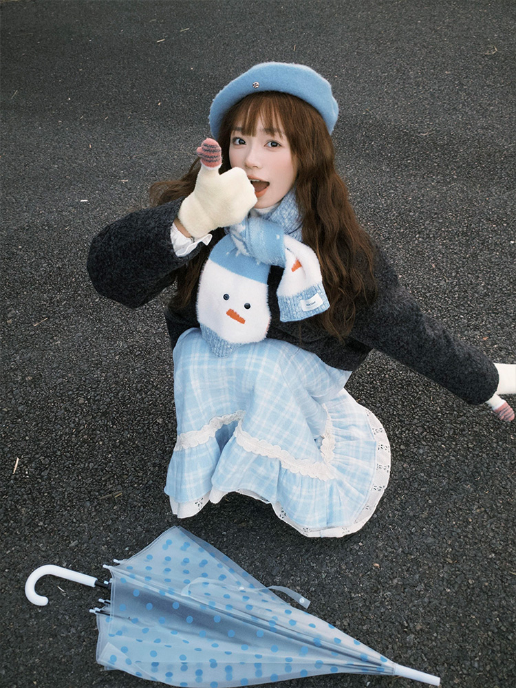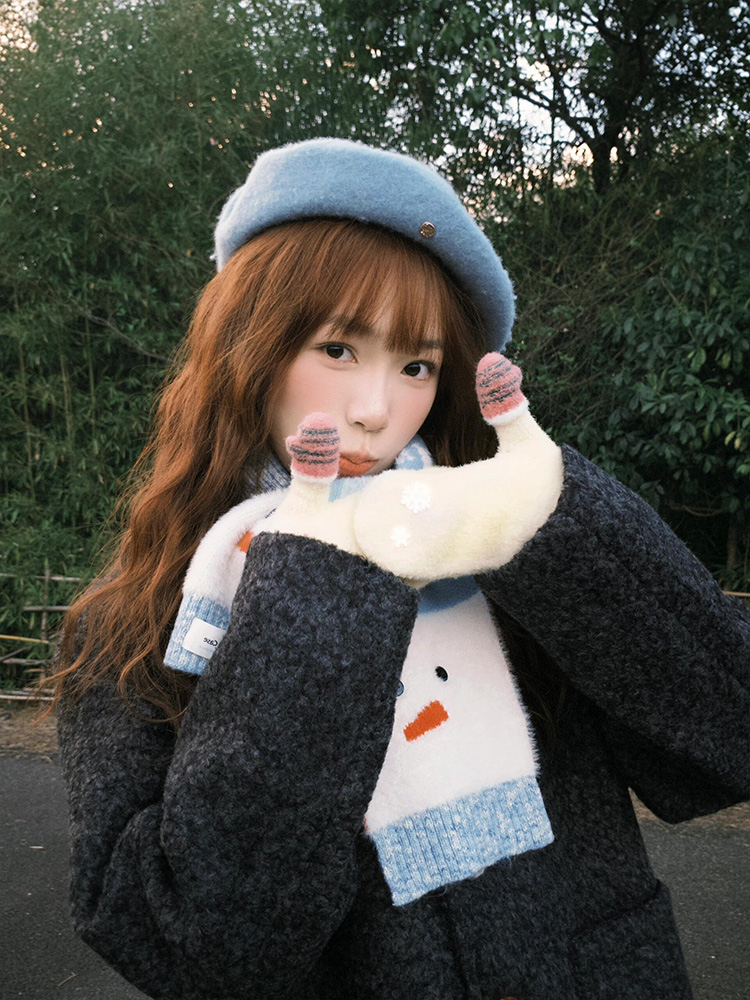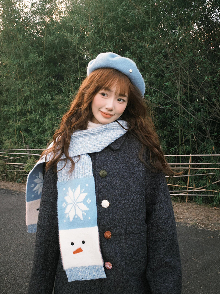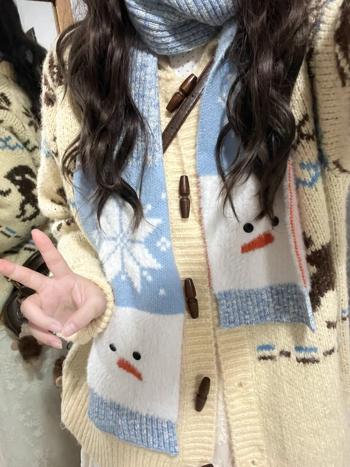 "아이슬란드 눈사람" 분위기의 올바른 버전 귀여운 눈사람 스카프 가을과 겨울 따뜻한 니트 스카프스토어 가기