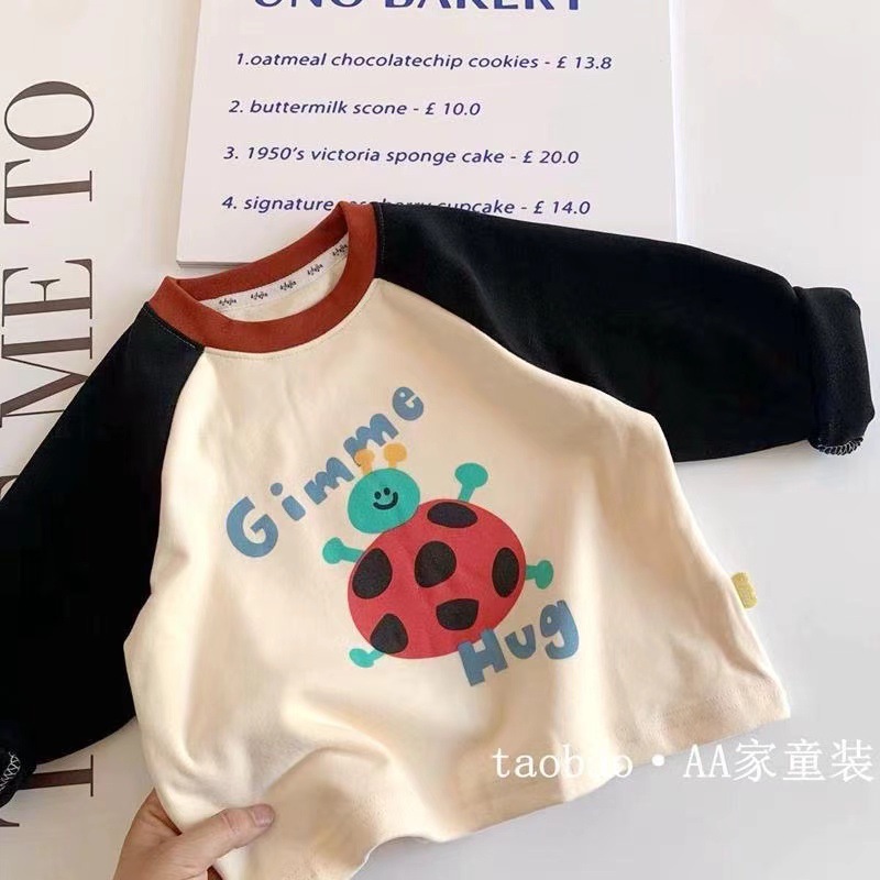 100 면 어린이 긴팔 라슬란 티셔츠 봄 · 가을 탑 유니섹스 아동복 한국 명암 베이비베이스 셔츠스토어 가기