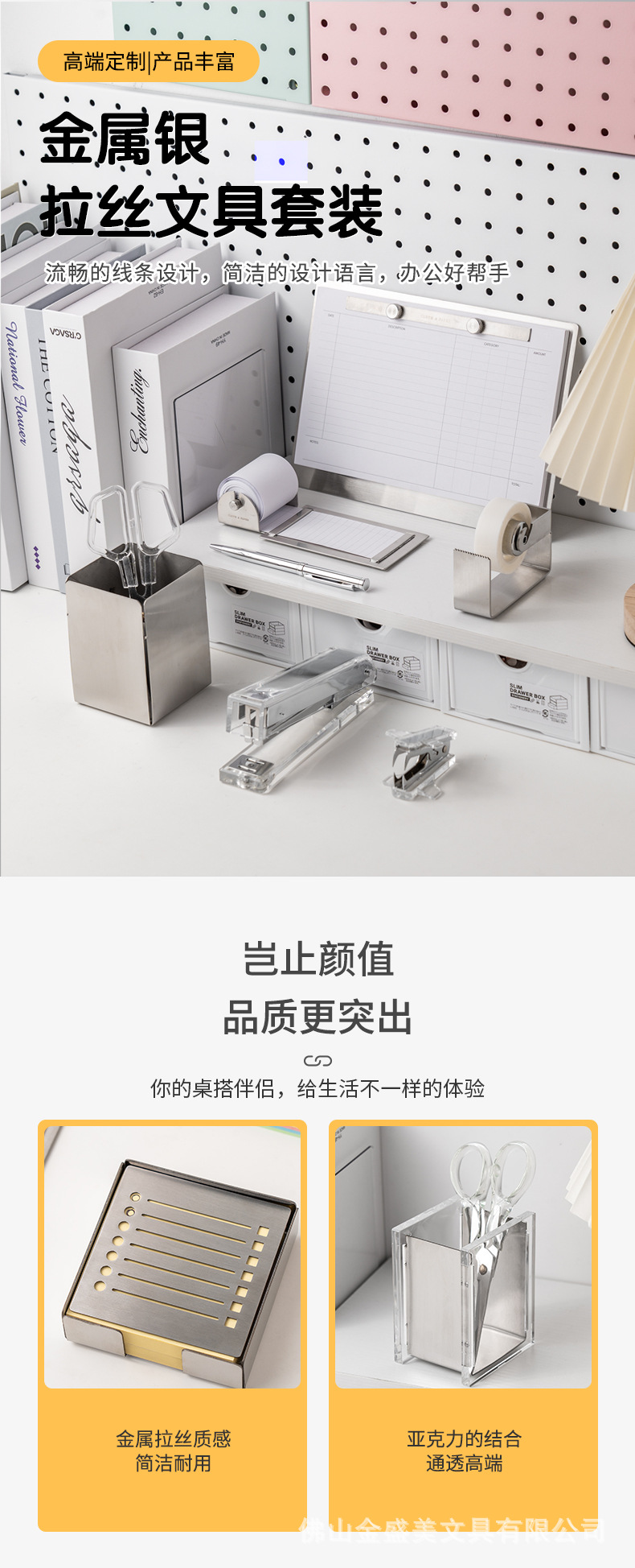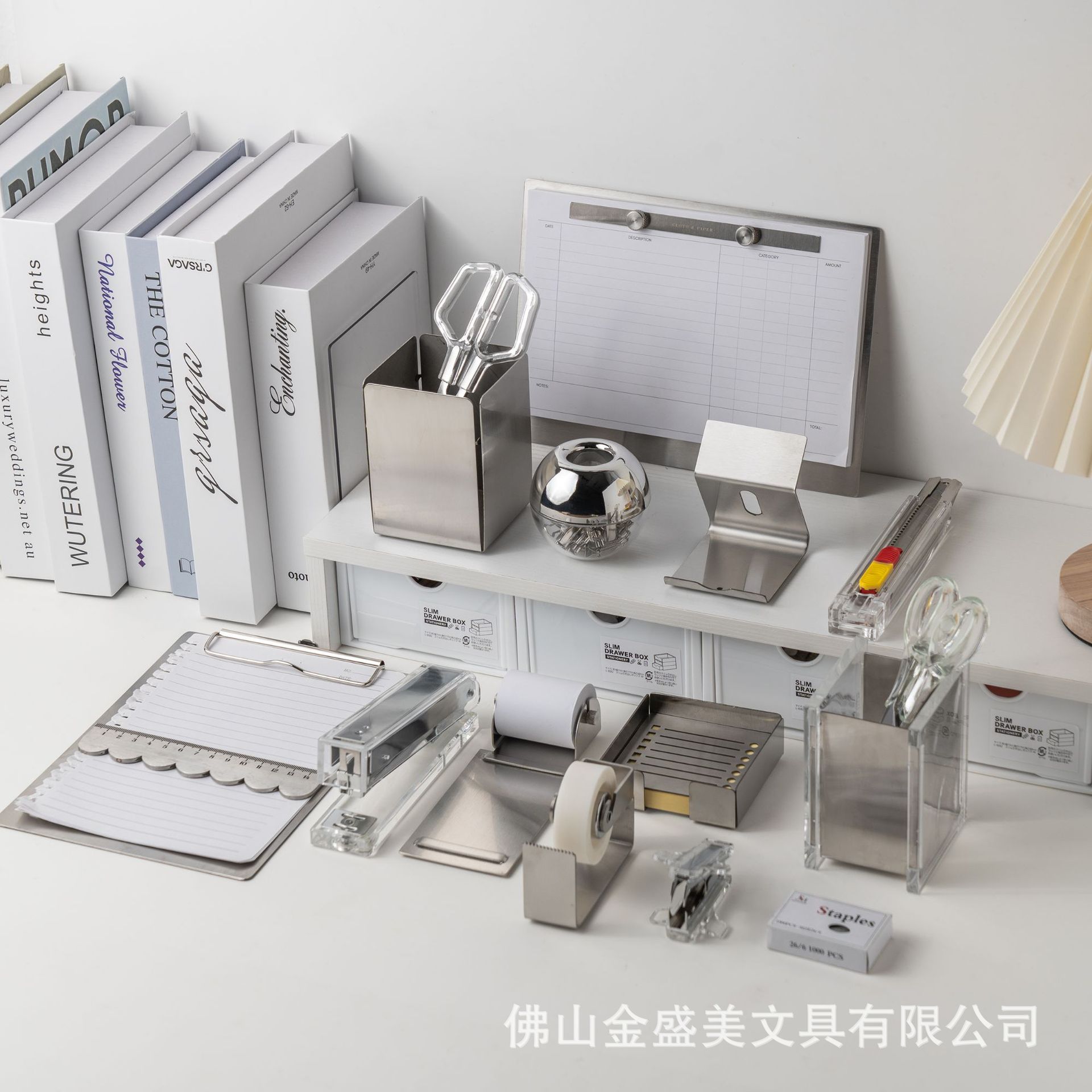 제조업체 도매 투명 실버 아크릴 스테이플러 테이프 디스펜서 크로스보더 아크릴 문구 세트