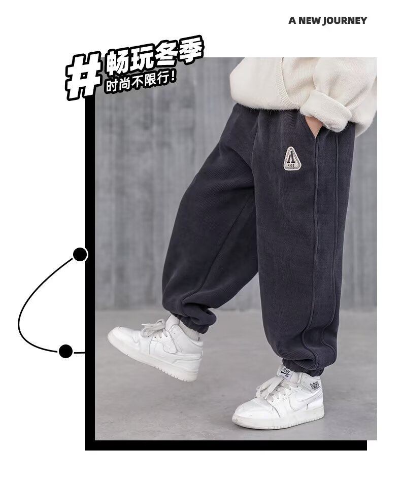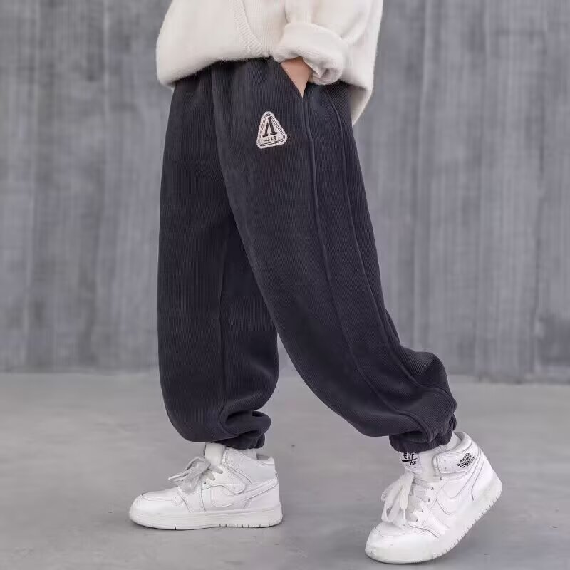 트렌디 한 소년의 봄과 가을 새 바지 2024 새로운 CUHK 어린이 가을 트렌디 남성용 따뜻한 원피스 풋 가드 바지