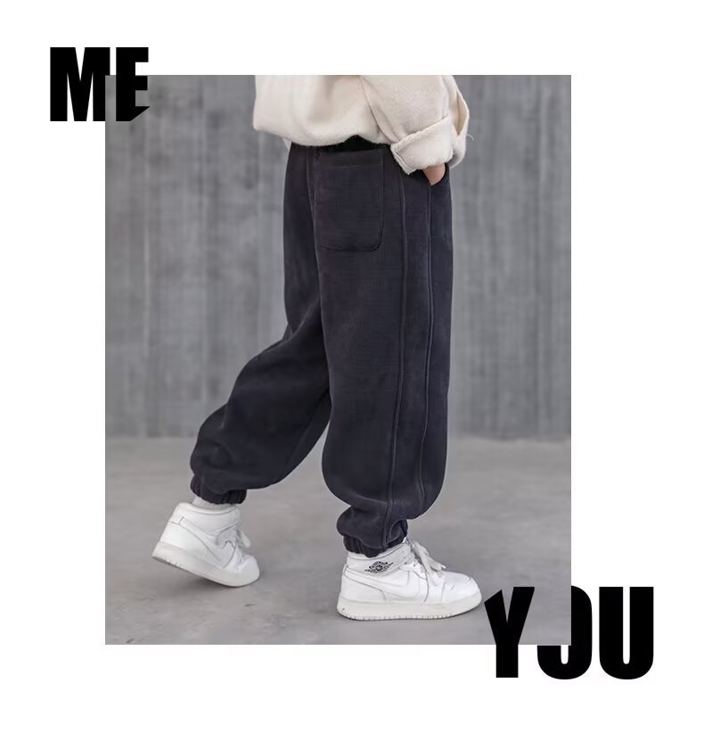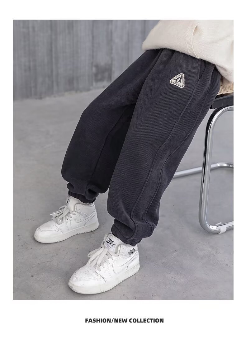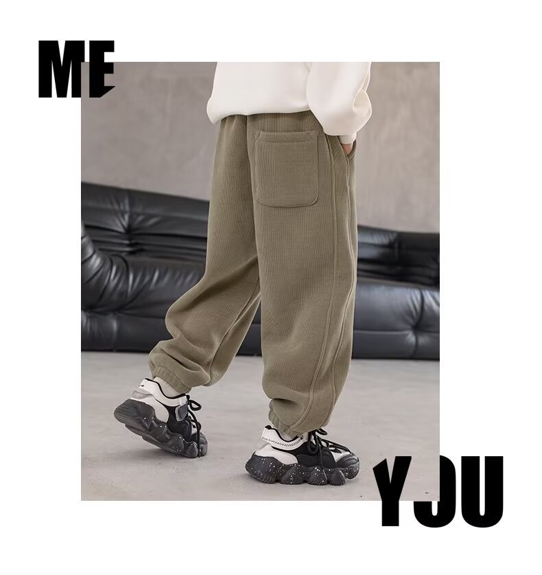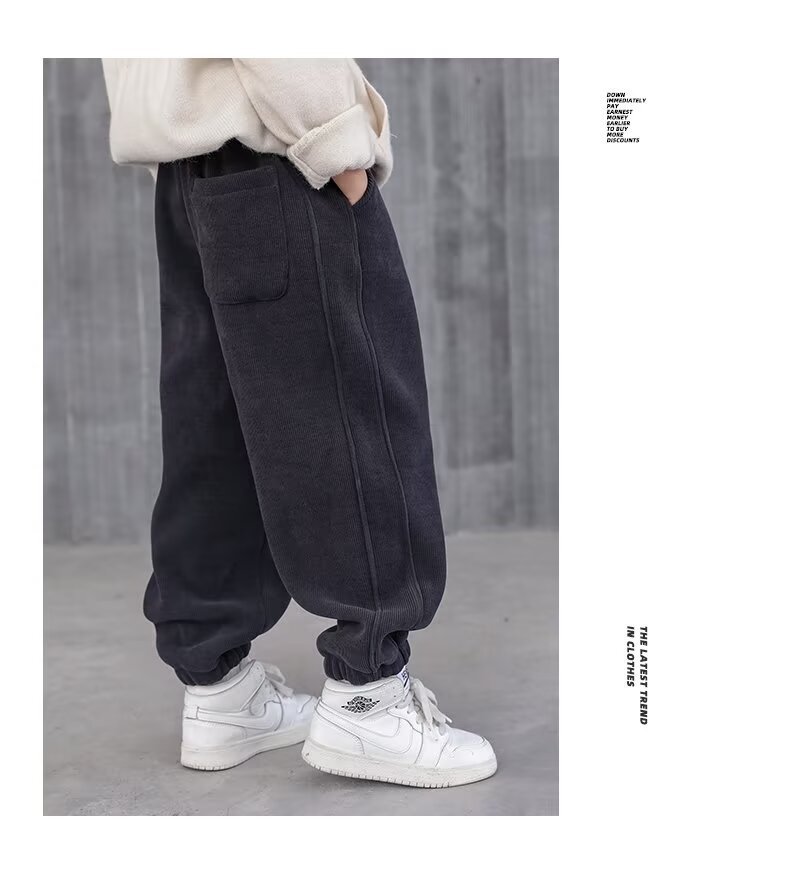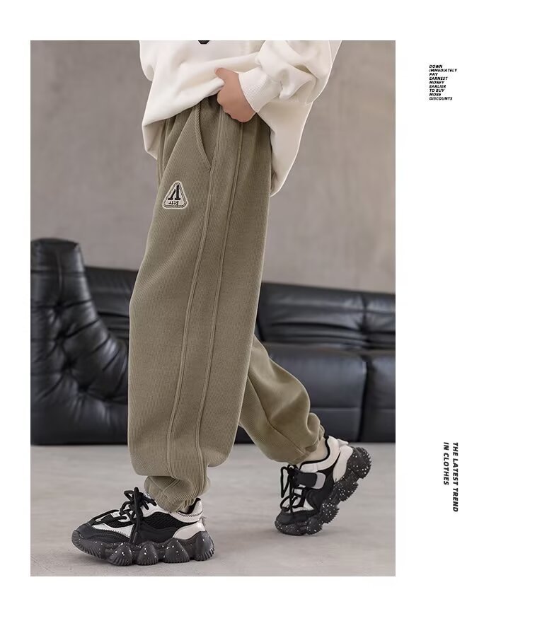트렌디 한 소년의 봄과 가을 새 바지 2024 새로운 CUHK 어린이 가을 트렌디 남성용 따뜻한 원피스 풋 가드 바지스토어 가기
