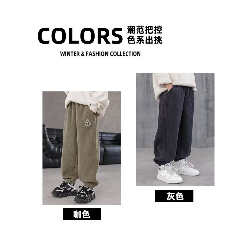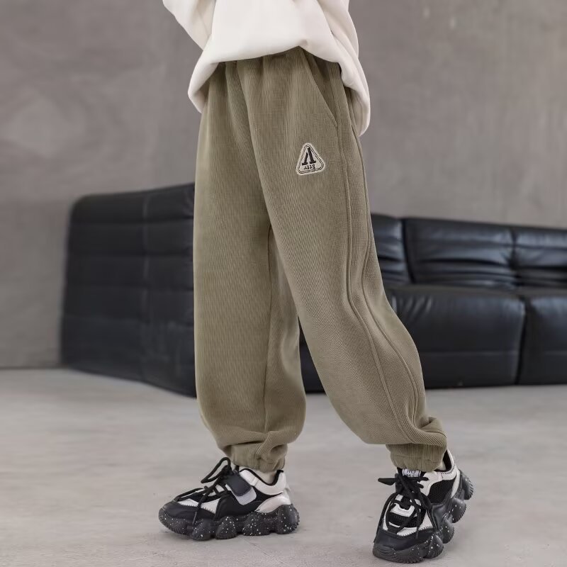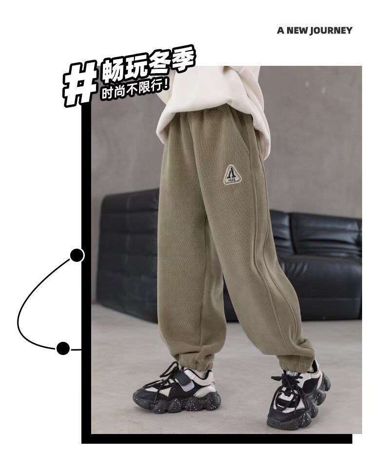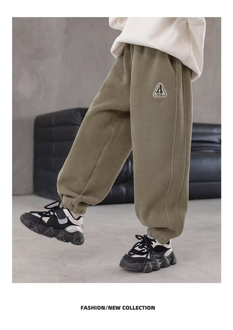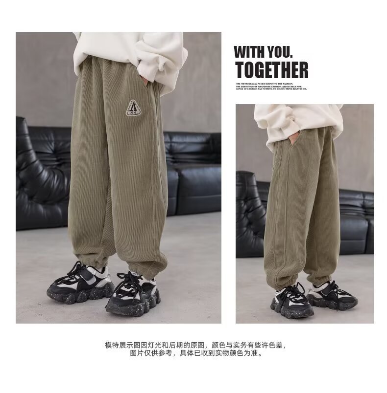 트렌디 한 소년의 봄과 가을 새 바지 2024 새로운 CUHK 어린이 가을 트렌디 남성용 따뜻한 원피스 풋 가드 바지스토어 가기