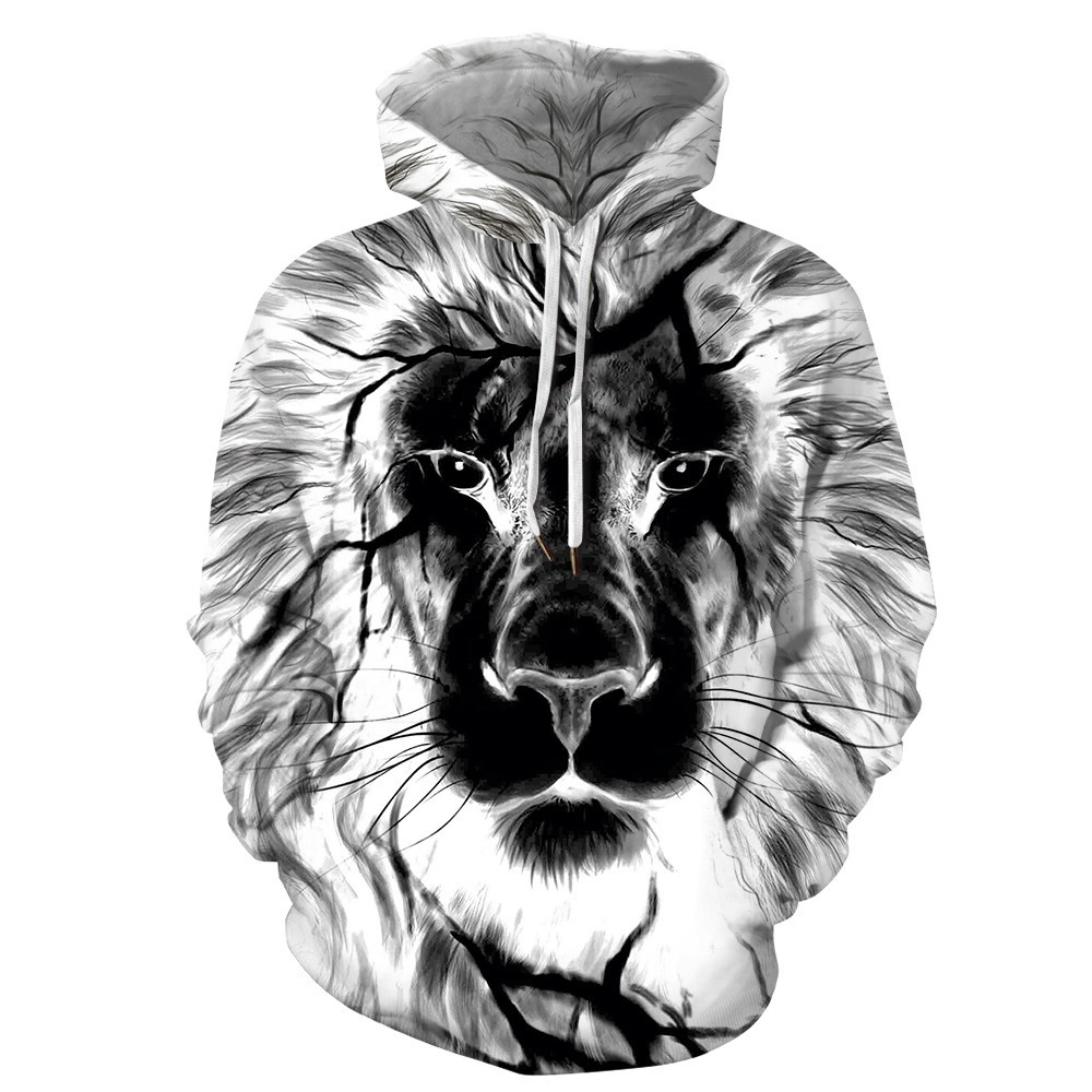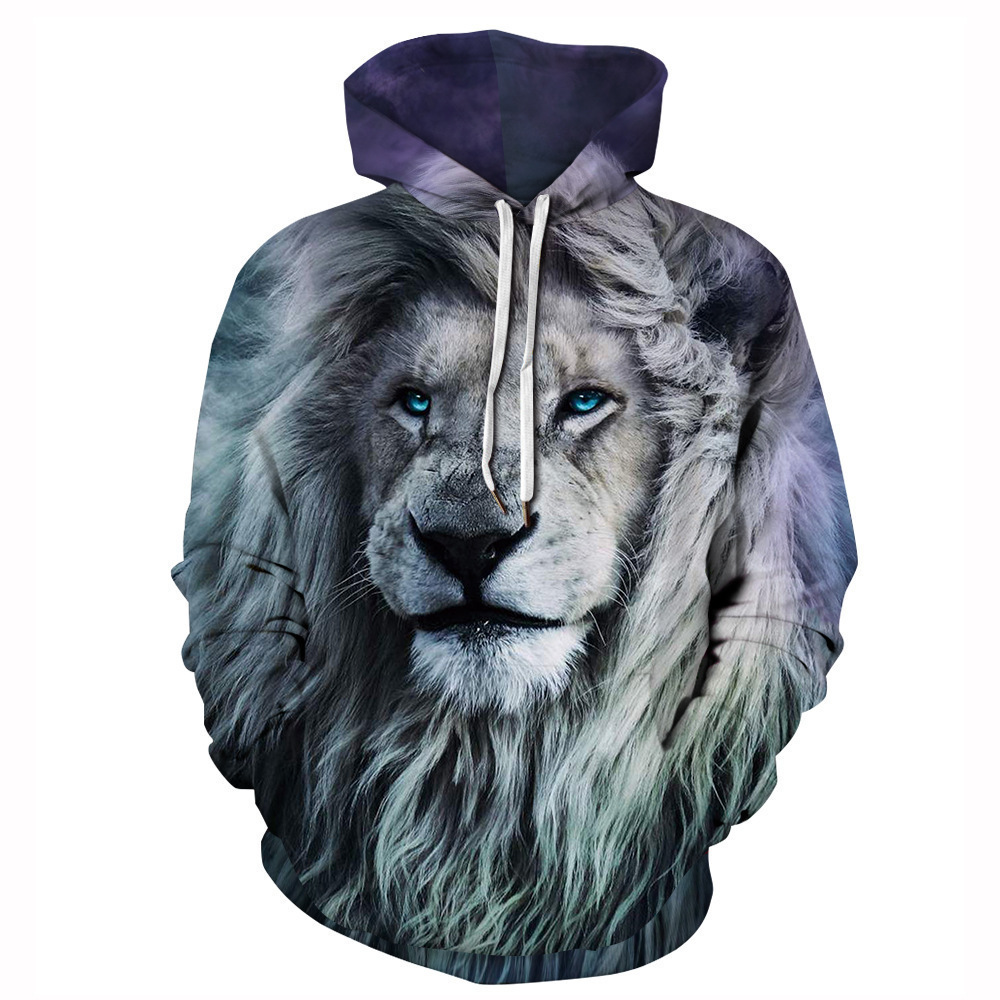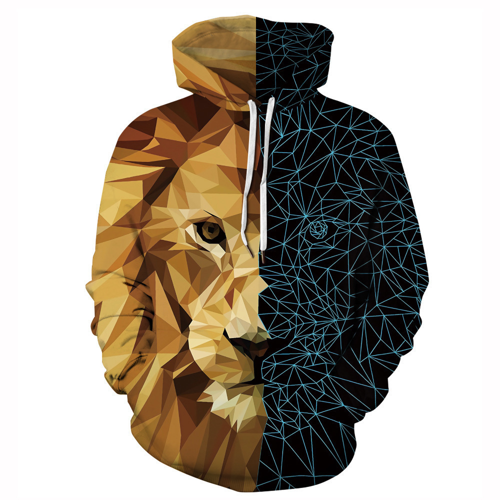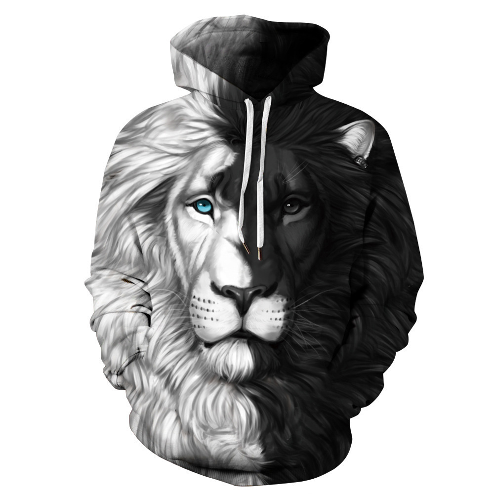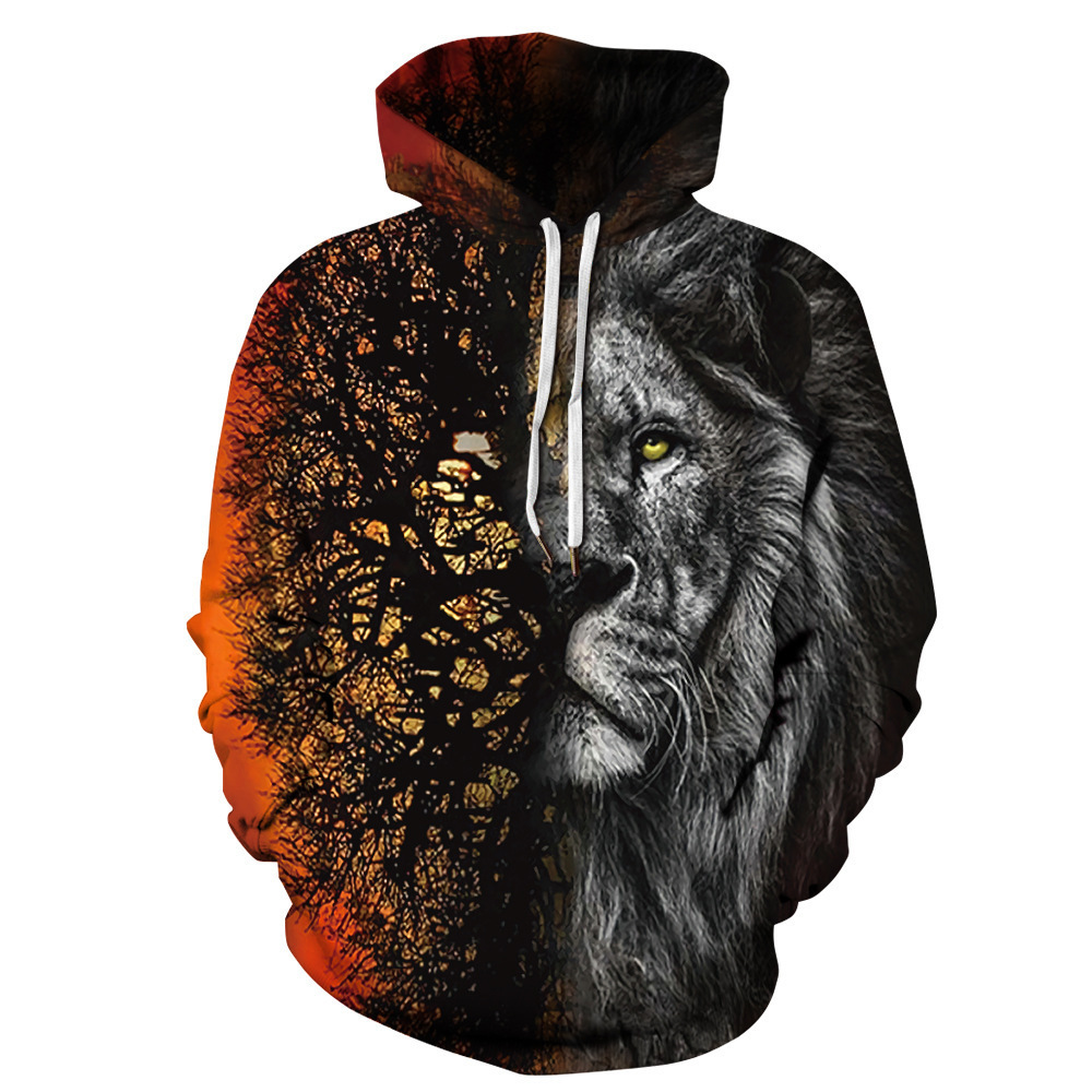 크로스보더 위시 아마존 가을 신상 캐주얼 남성 후드티 사자 3D 디지털 프린팅 후드 스웨트셔츠스토어 가기