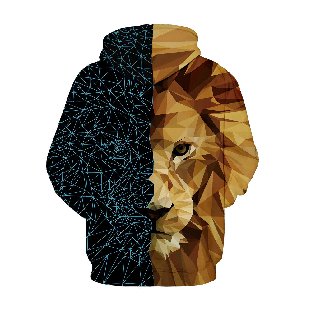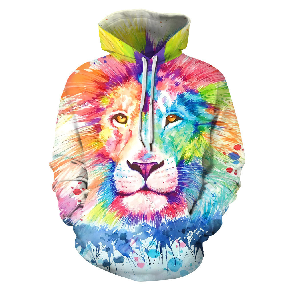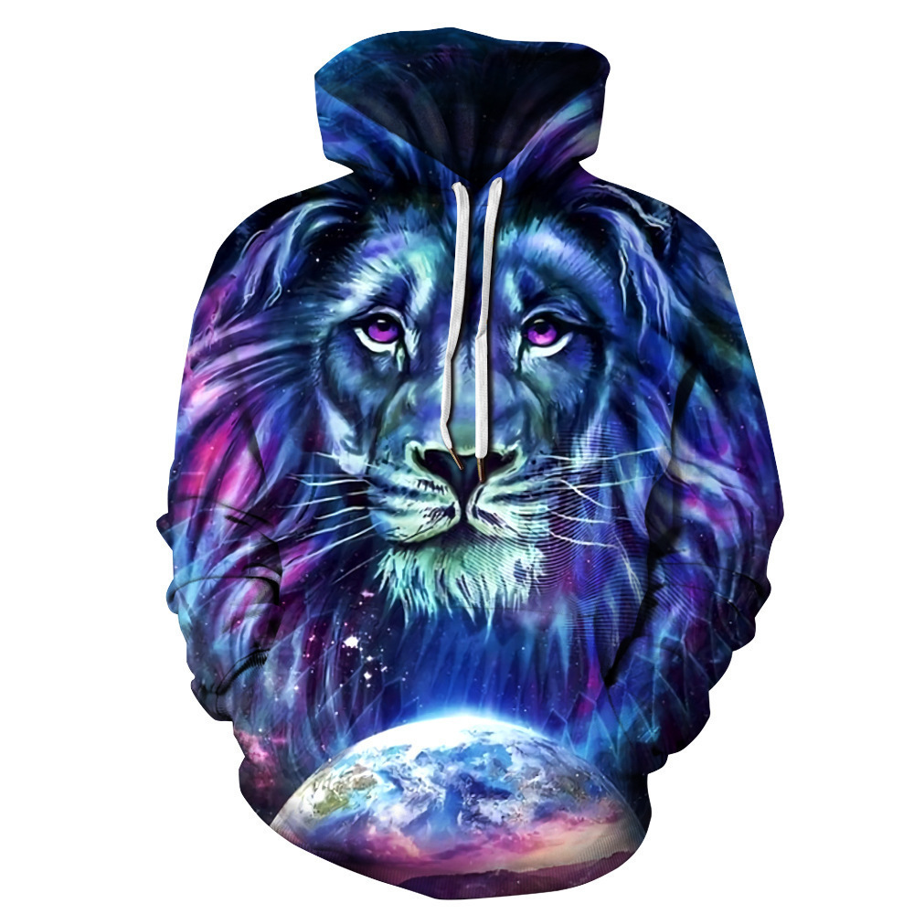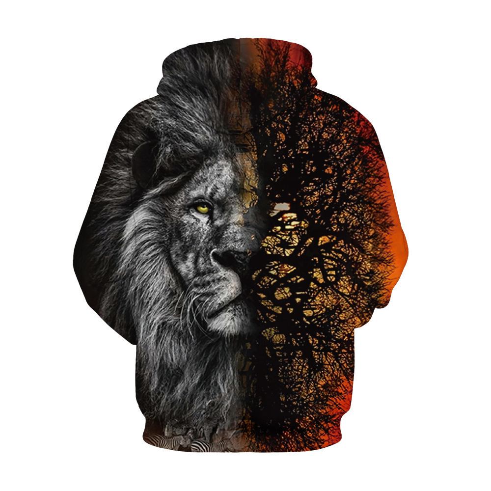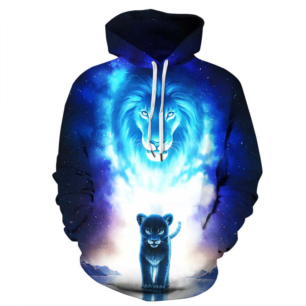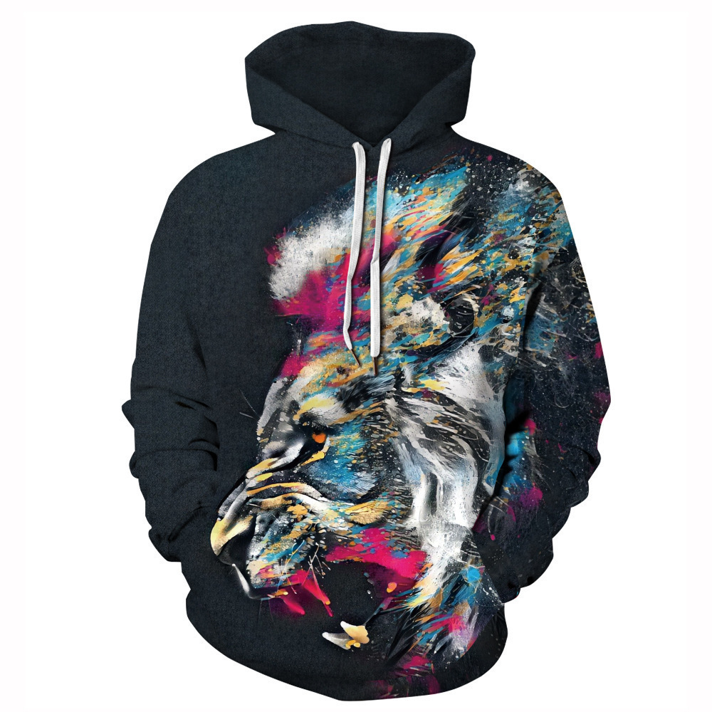 크로스보더 위시 아마존 가을 신상 캐주얼 남성 후드티 사자 3D 디지털 프린팅 후드 스웨트셔츠스토어 가기
