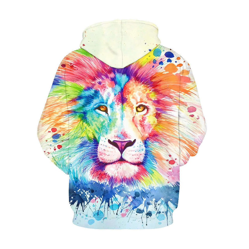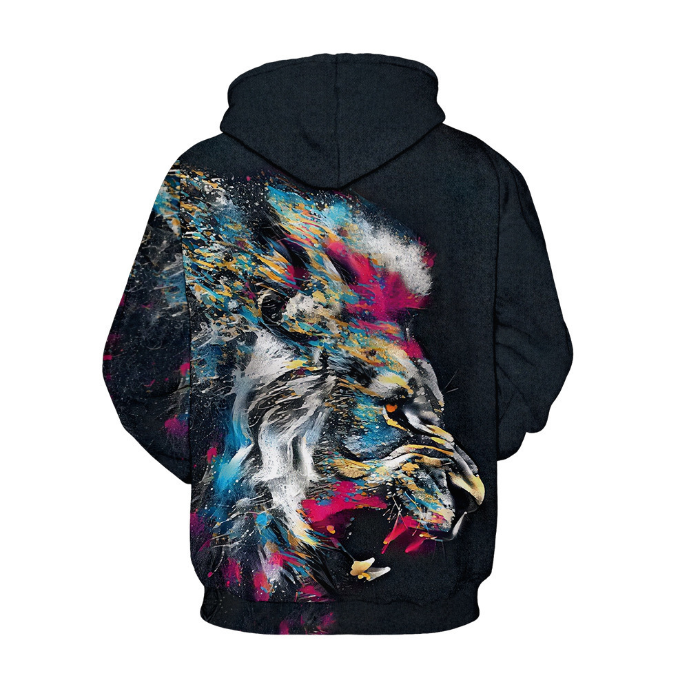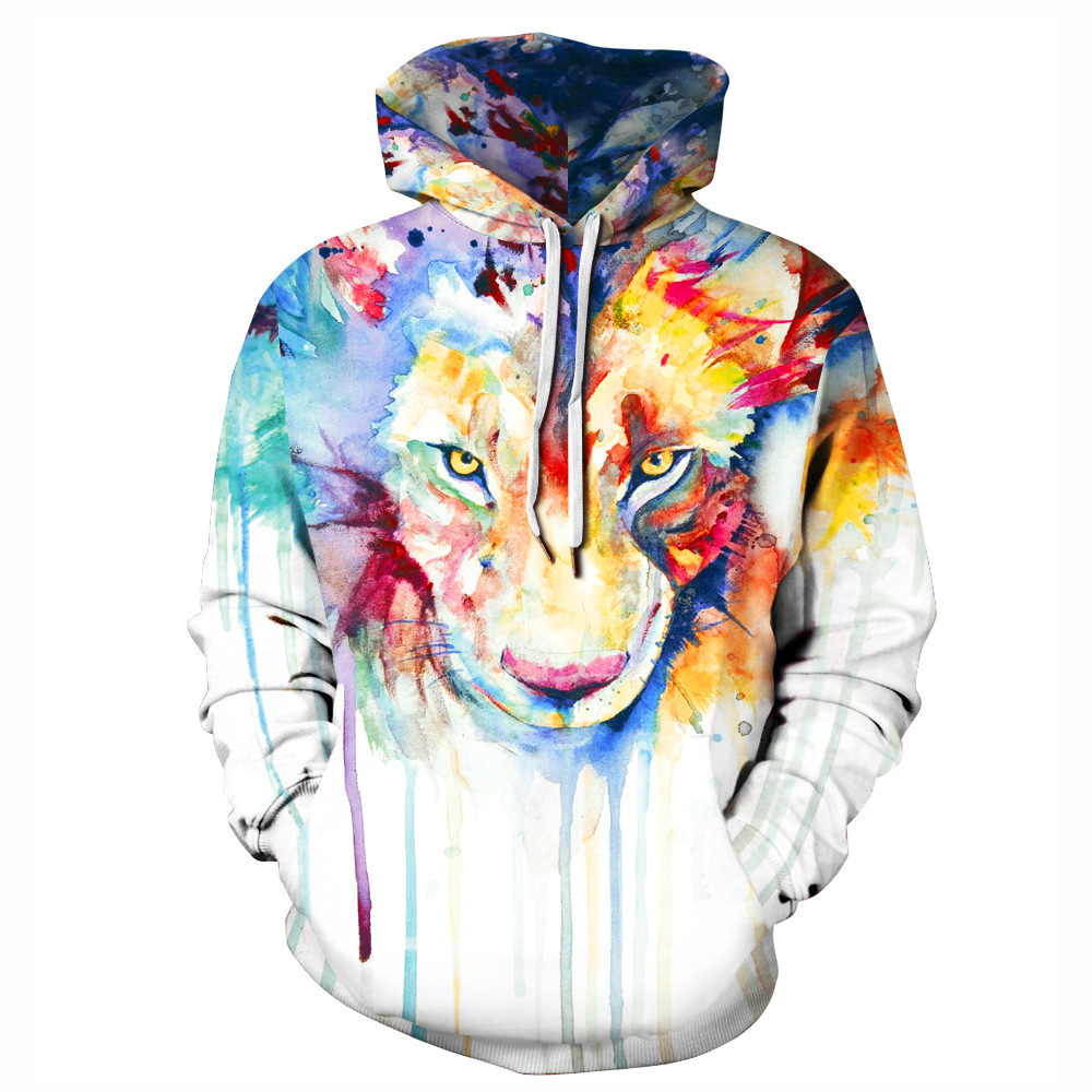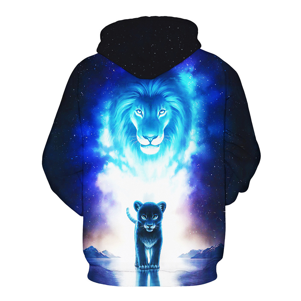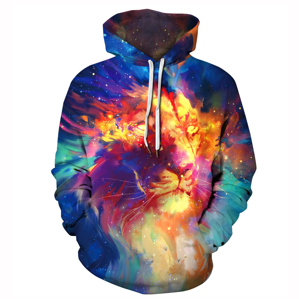 크로스보더 위시 아마존 가을 신상 캐주얼 남성 후드티 사자 3D 디지털 프린팅 후드 스웨트셔츠스토어 가기