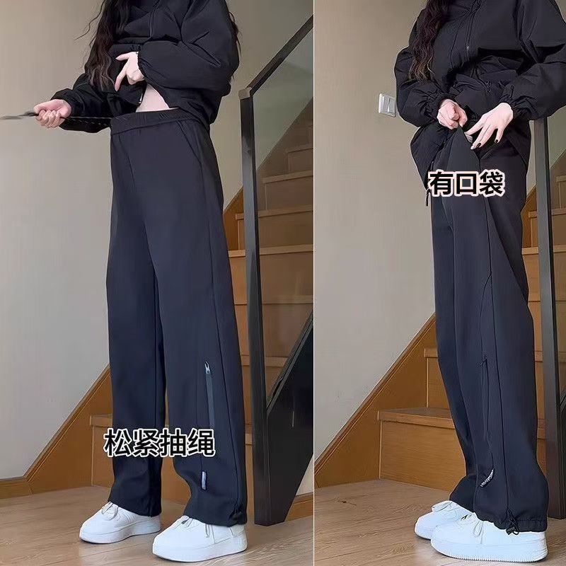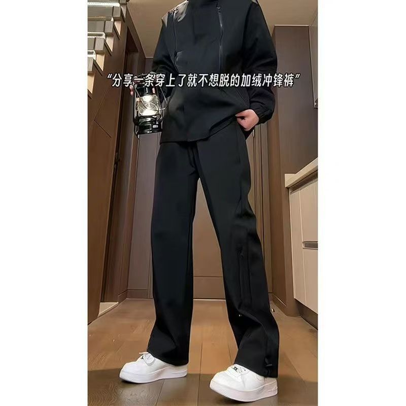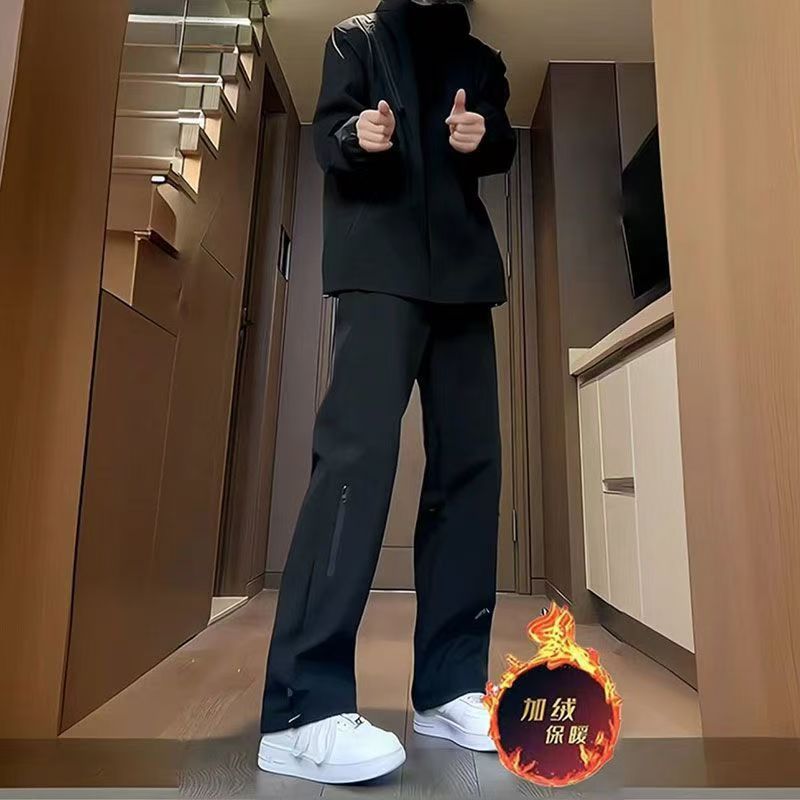 야외 등산 바지 남자의 가을과 겨울 새로운 방풍 기모 느슨한 스트레이트 스포츠 캐주얼 긴 바지